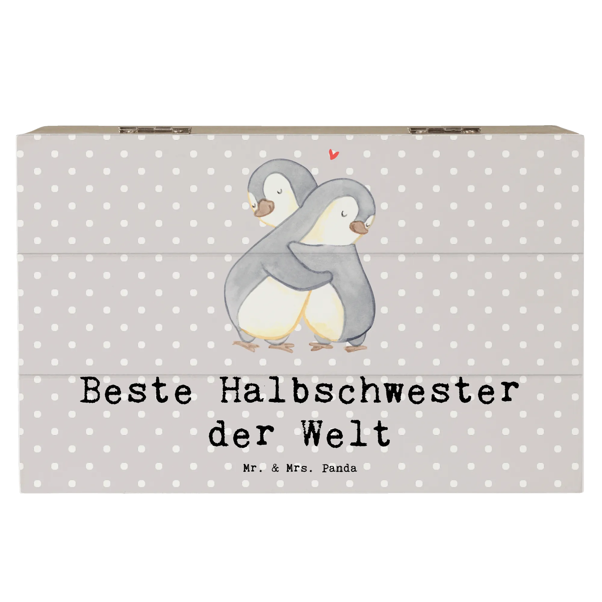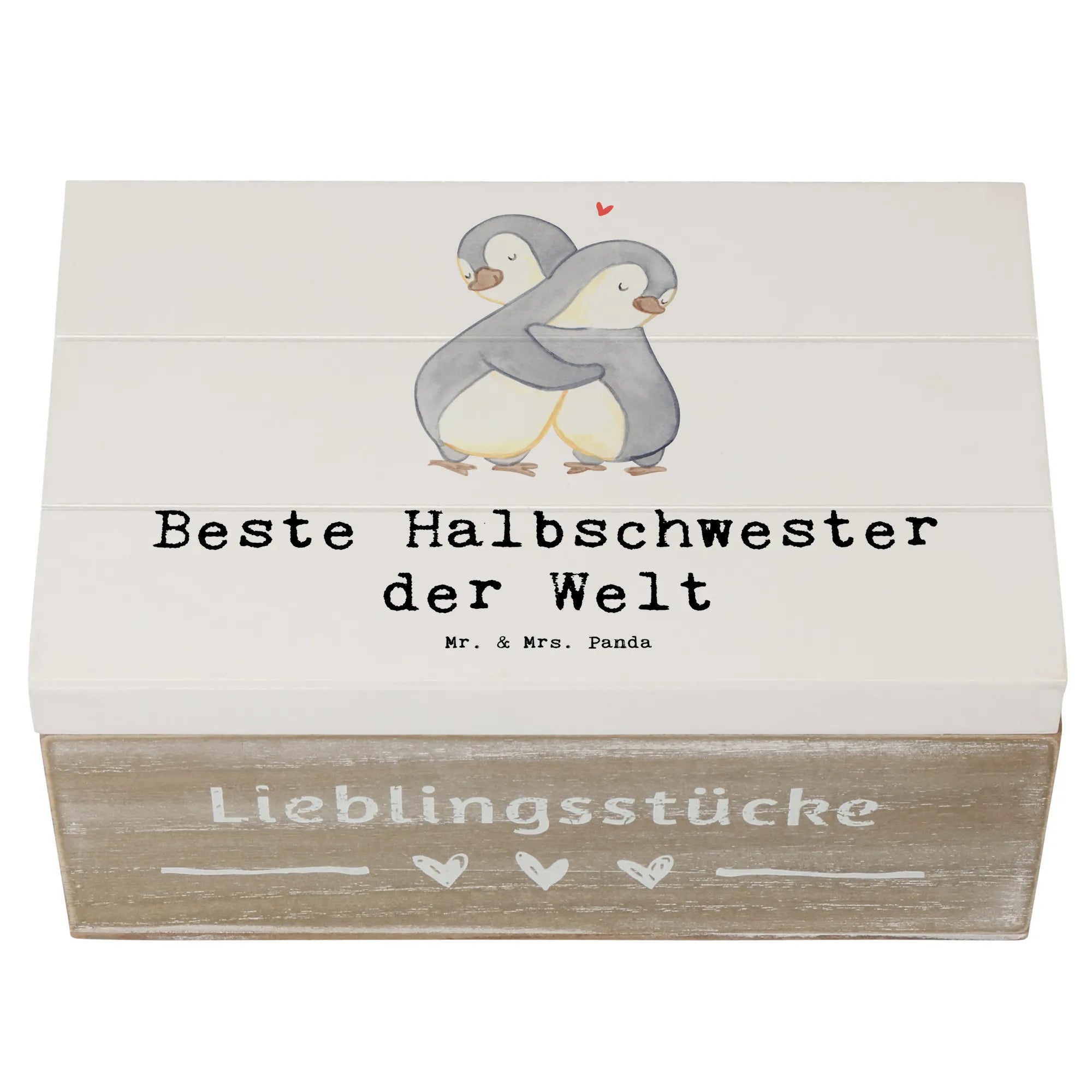 Entdecke die wundervolle Holzkiste mit dem tollen Motiv "Beste Halbschwester der Welt" von Mr. & Mrs. Panda!