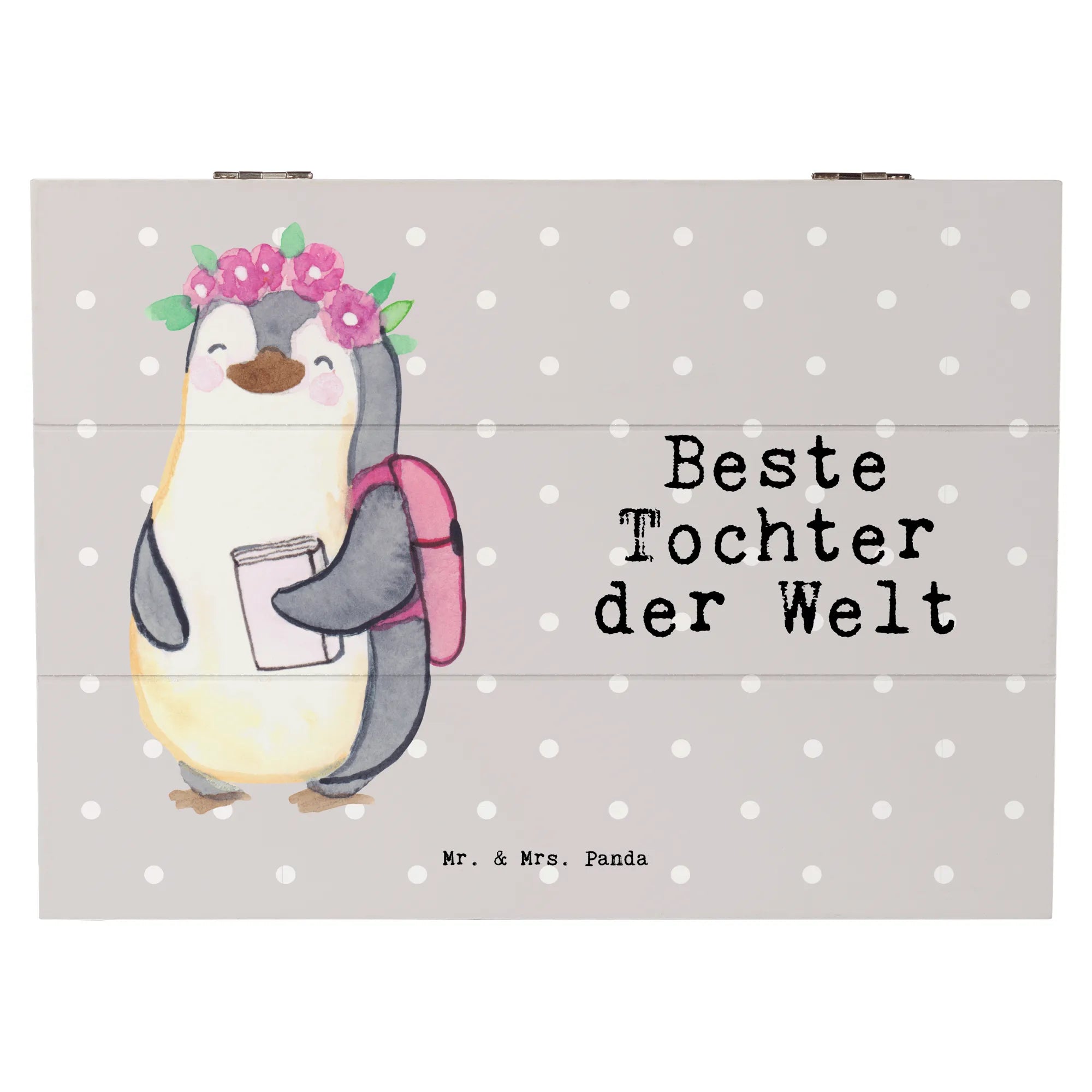 Die Holzkiste "Beste Tochter der Welt" von Mr. & Mrs. Panda ist das perfekte Geschenk für alle Anlässe, die Deine Tochter verdienen. Egal ob Geburtstag, Taufe oder einfach als liebevolles Dankeschön – diese wunderschöne Kiste ist mit einem niedlichen Pinguin-Motiv und dem Schriftzug "Beste Tochter der Welt" bedruckt.