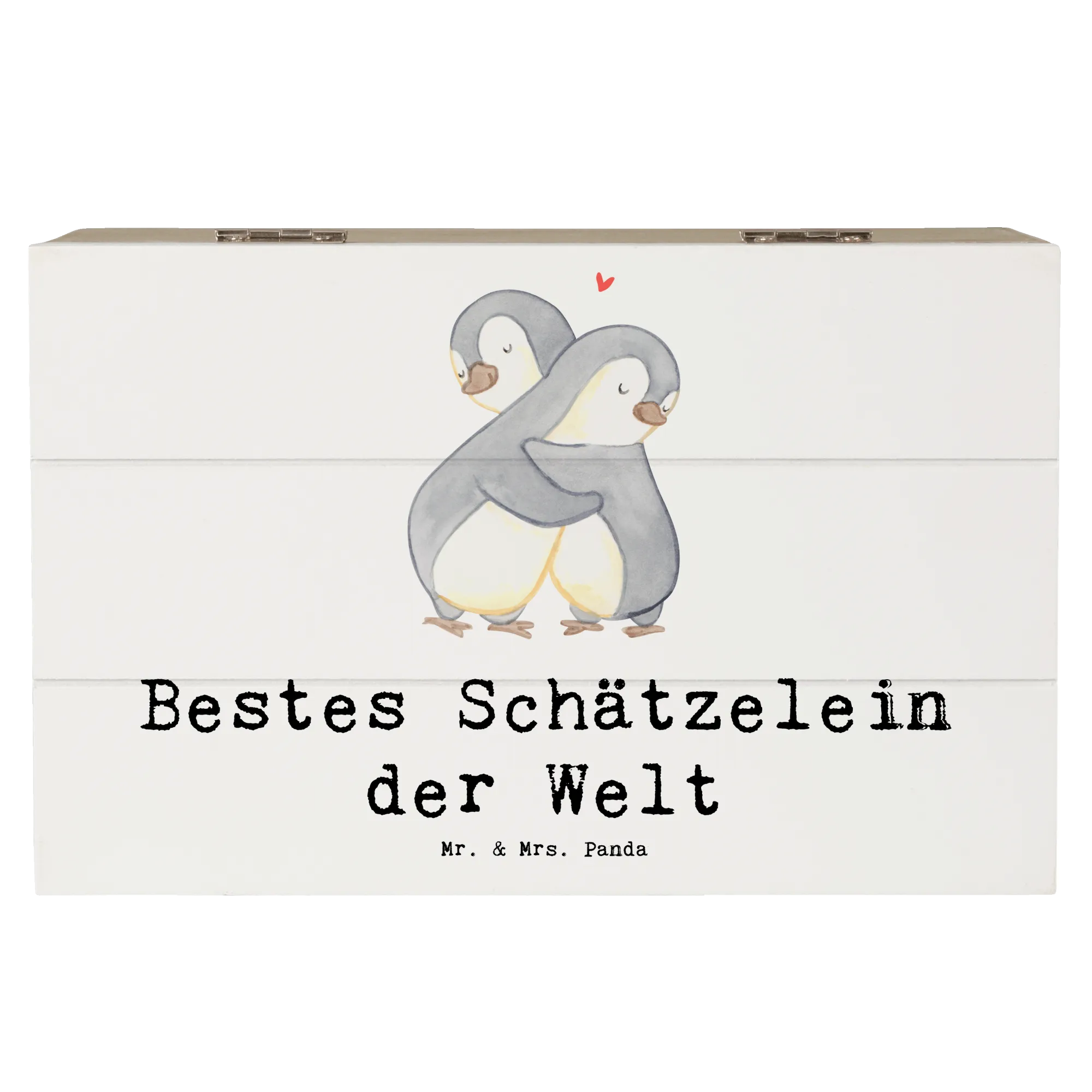 Holzkiste Pinguin Bestes Schätzelein der Welt - 22 x 15 cm - Weiß