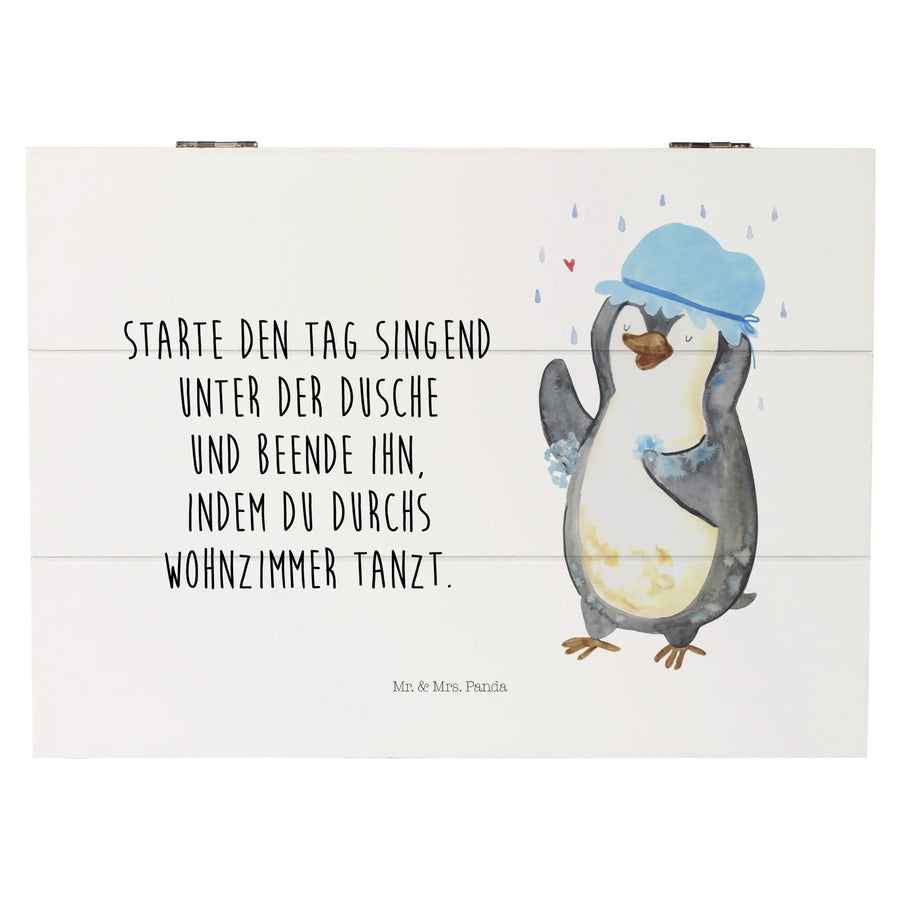 Die Holzkiste "Pinguin duscht" von Mr. & Mrs. Panda ist das perfekte Geschenk für alle, die Freude und ein bisschen Spaß in ihr Leben bringen möchten. Mit einem wunderschönen Design, das einen fröhlichen Pinguin zeigt, der unter einem Duschfall steht, bringt diese Kiste jedem ein Lächeln ins Gesicht. Die robusten Maße von 220 mm x 150 mm x 120 mm bieten genügend Platz für Schätze aller Art.