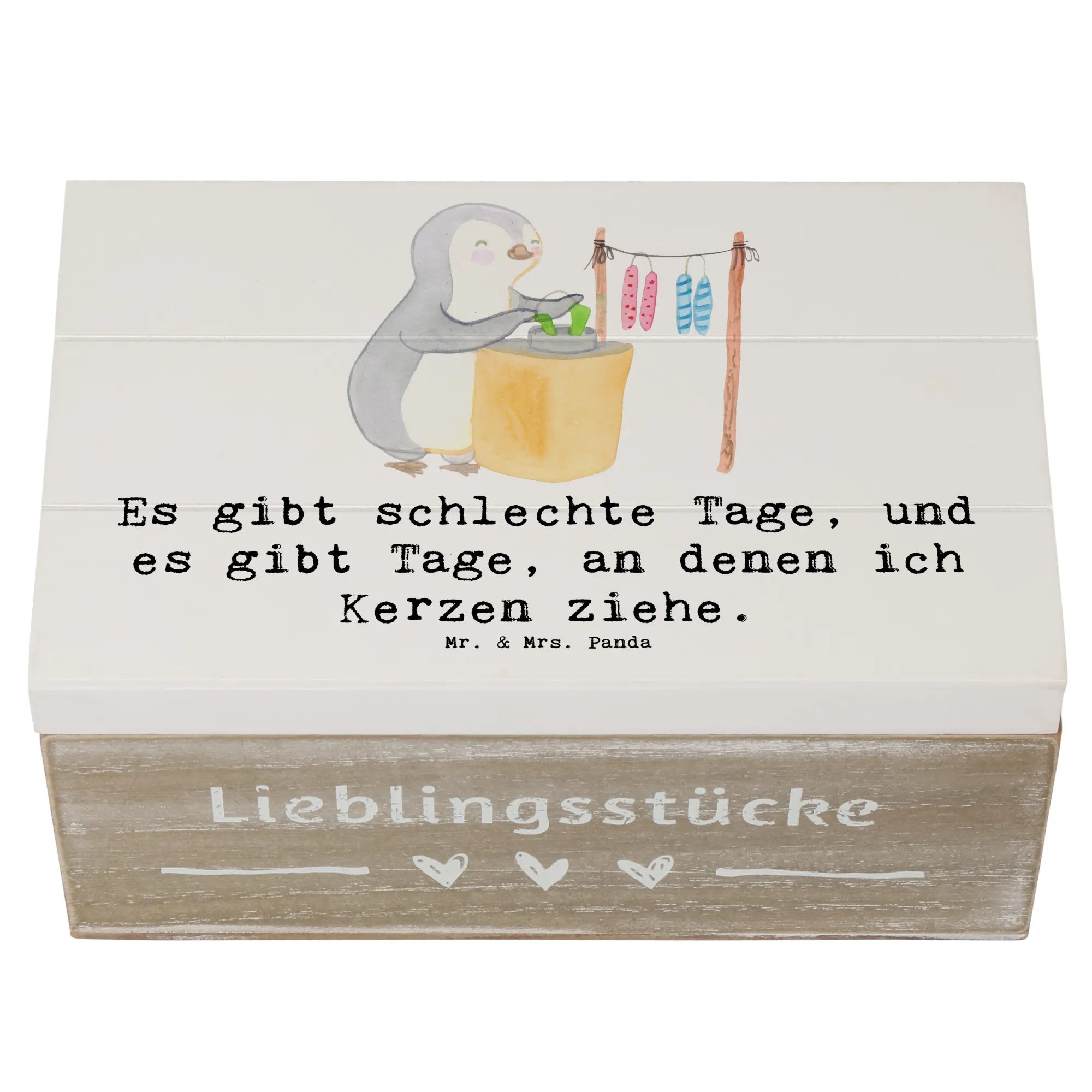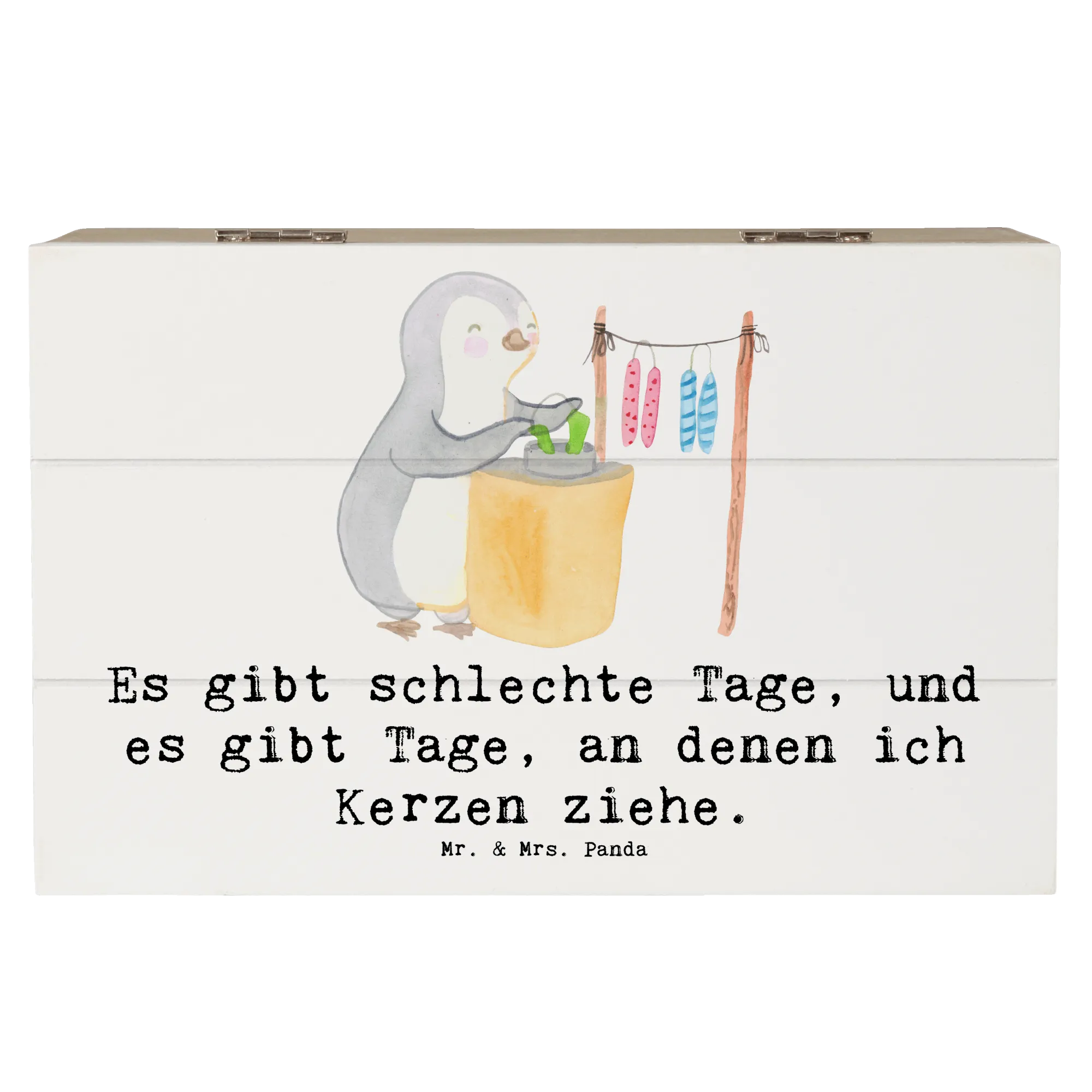 Die wunderschöne Holzkiste von Mr. & Mrs. Panda mit dem süßen Pinguin-Motiv "Kerzenziehen Tage" ist das perfekte Geschenk für alle, die das Basteln lieben.