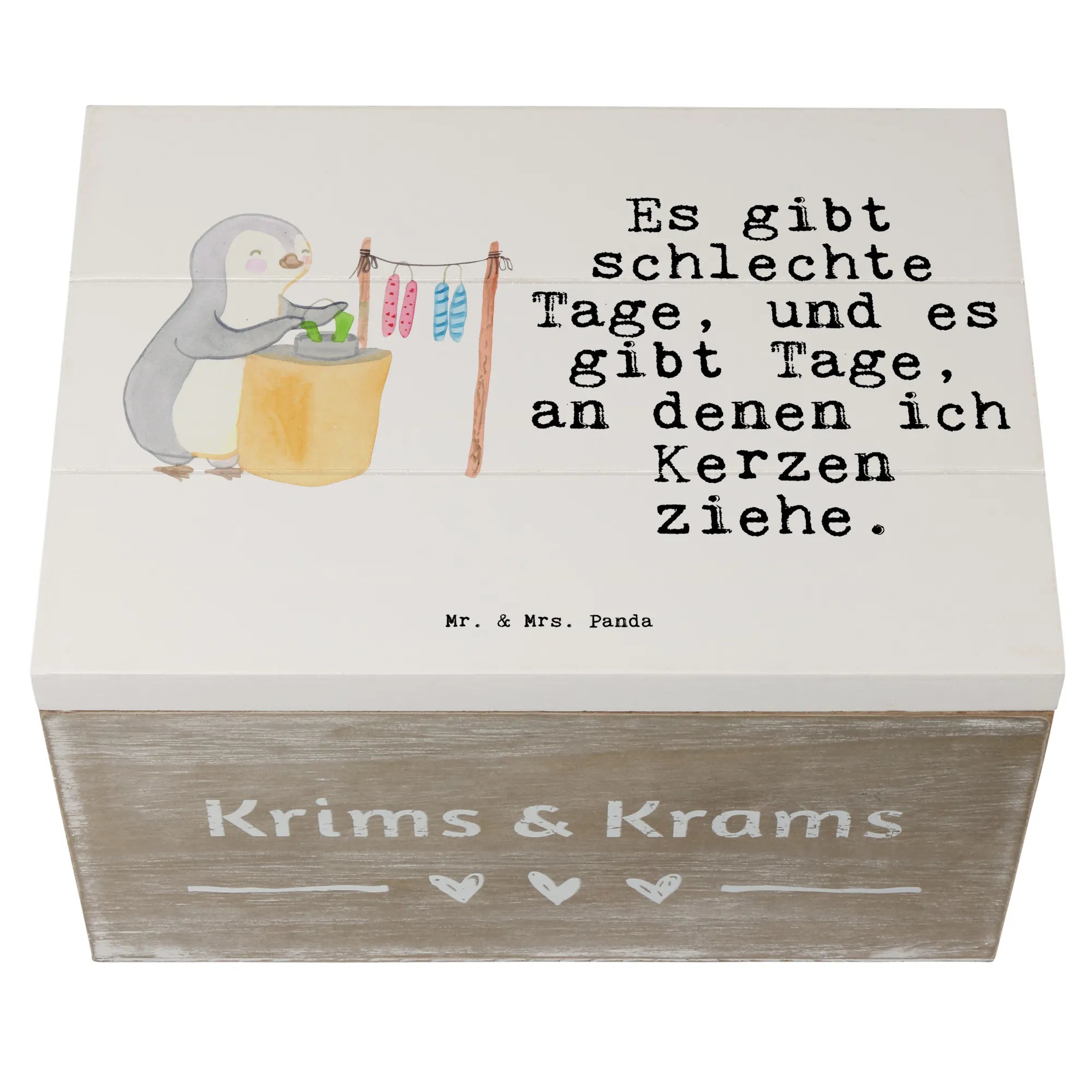 Du suchst das perfekte Geschenk für jemanden, der das Kerzenziehen liebt? Diese wunderschöne Holzkiste von Mr. & Mrs. Panda ist die ideale Wahl! Mit ihrem bezaubernden Motiv eines süßen Pinguins, der aus heißem Wachs Kerzen zieht, und dem originellen Spruch "Es gibt schlechte Tage, und es gibt Tage, an denen ich Kerzen ziehe." bringt sie nicht nur Freude, sondern auch eine liebevolle Botschaft mit sich.