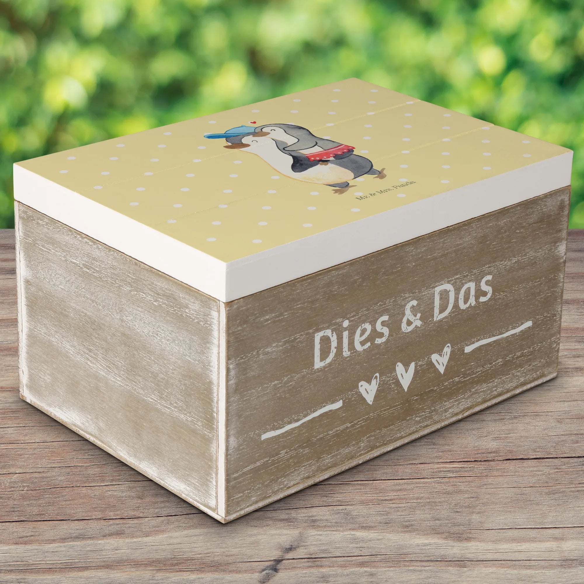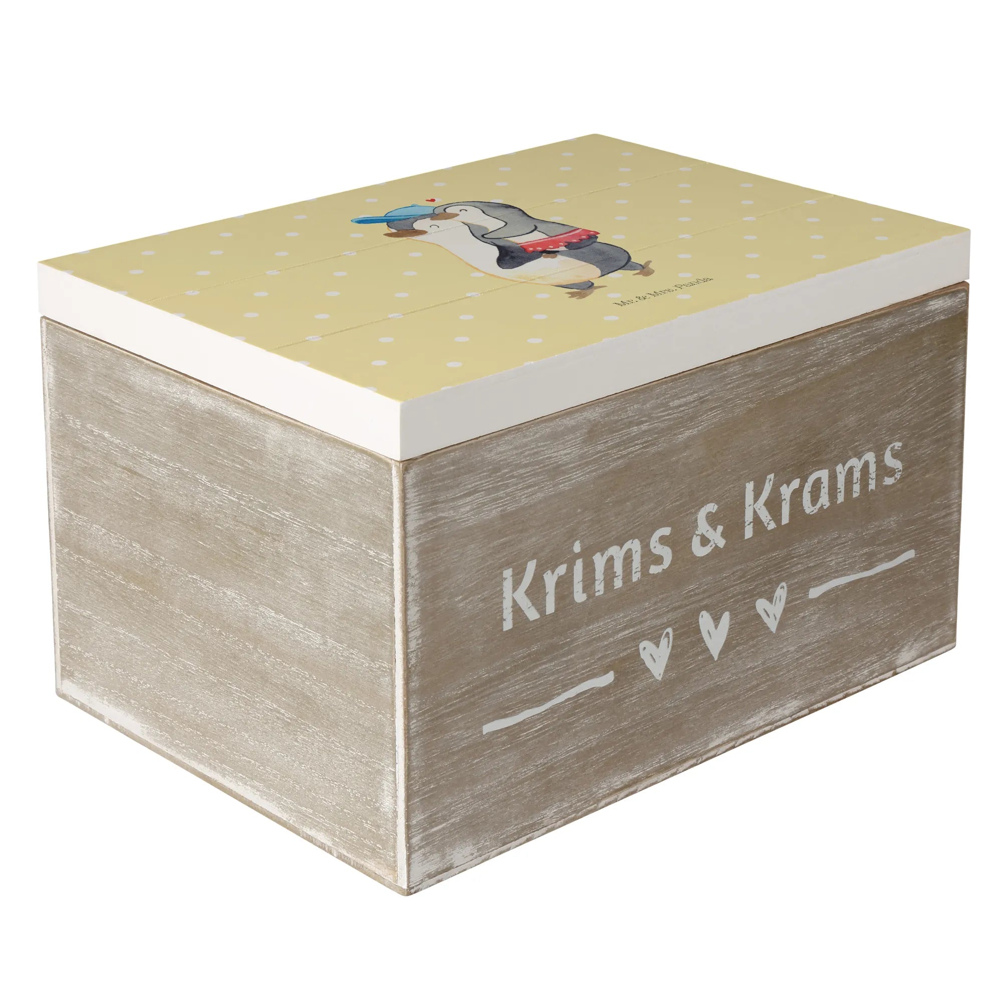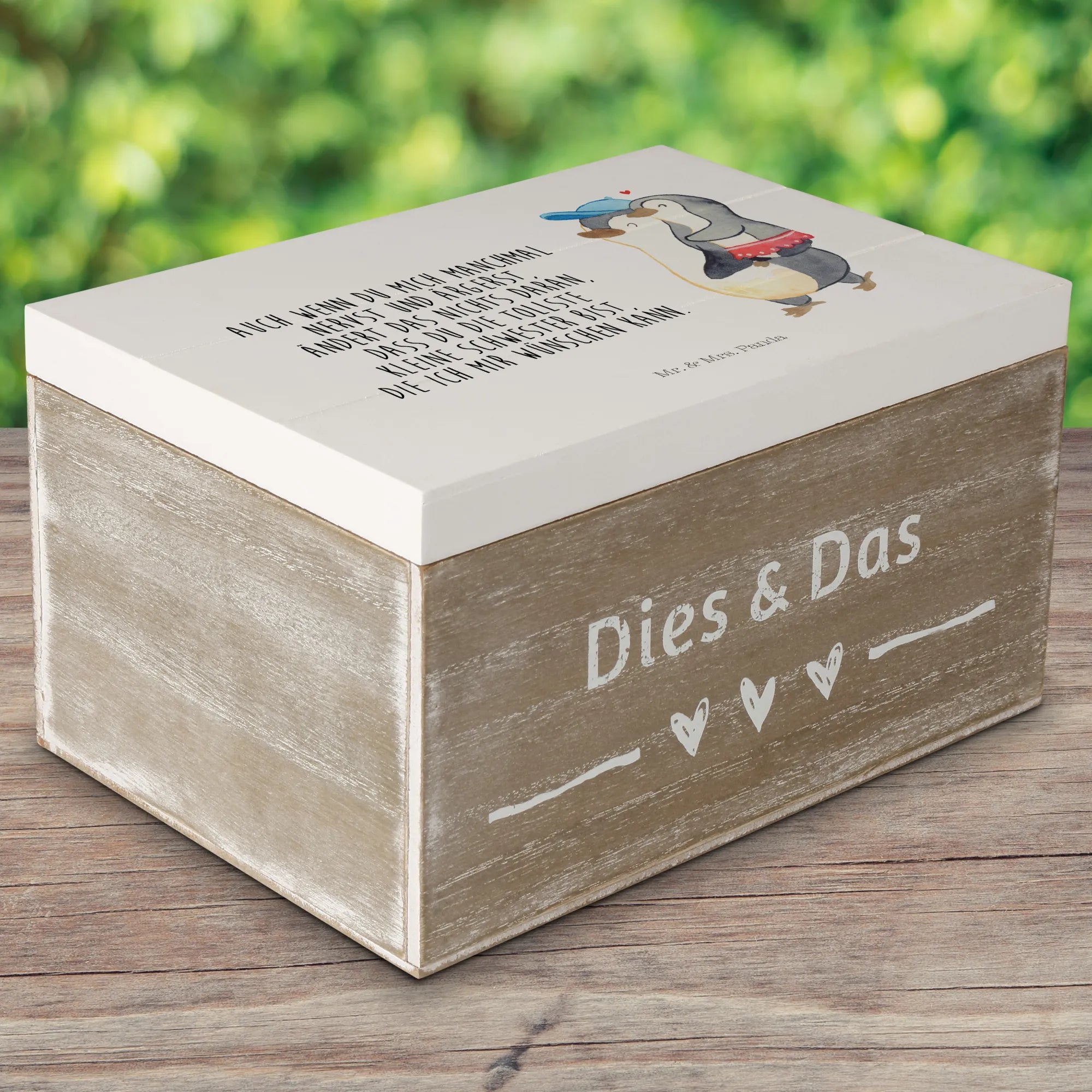 Die wunderschöne Holzkiste mit dem niedlichen Pinguin-Motiv "Kleine Schwester" von Mr. & Mrs. Panda ist das perfekte Geschenk für alle, die ihre kleinen Schwestern lieben! Mit ihren sanften Pastellfarben und dem liebevollen Design vermittelt diese Kiste Wärme und Geborgenheit.
