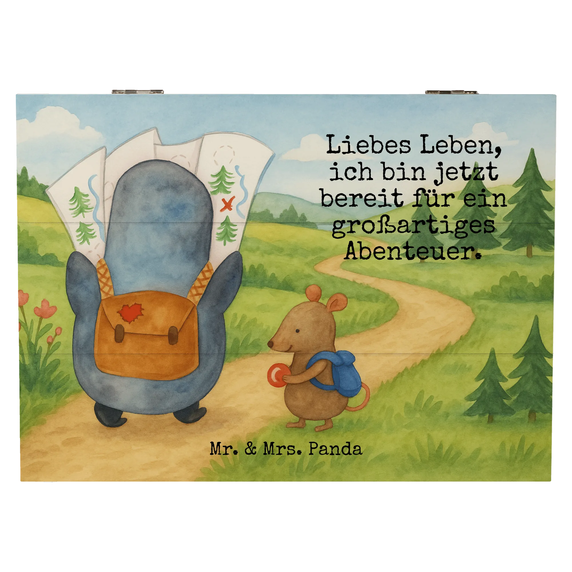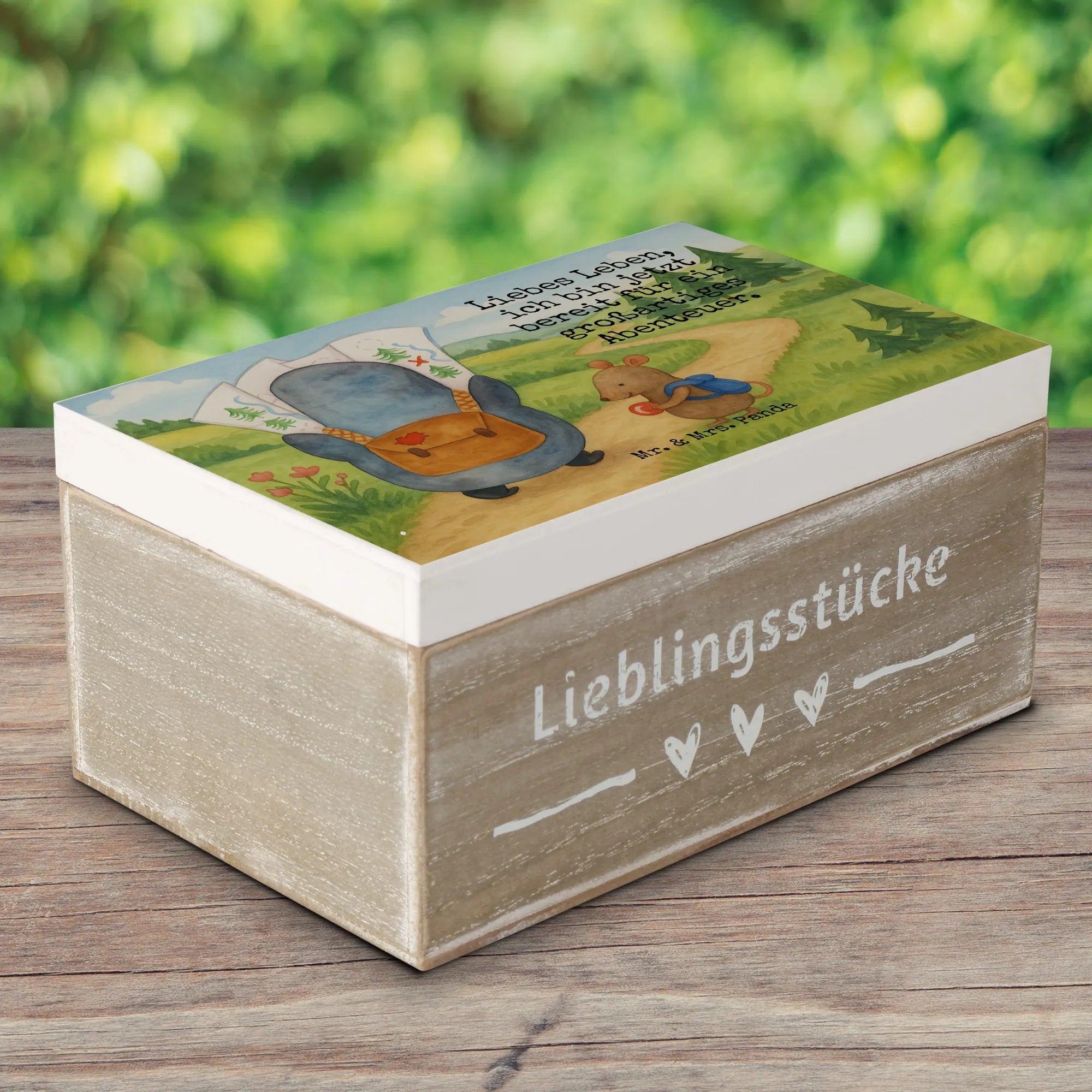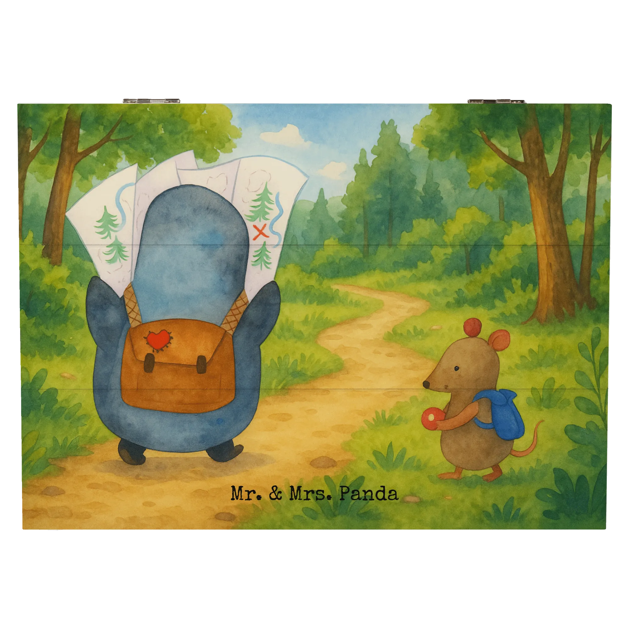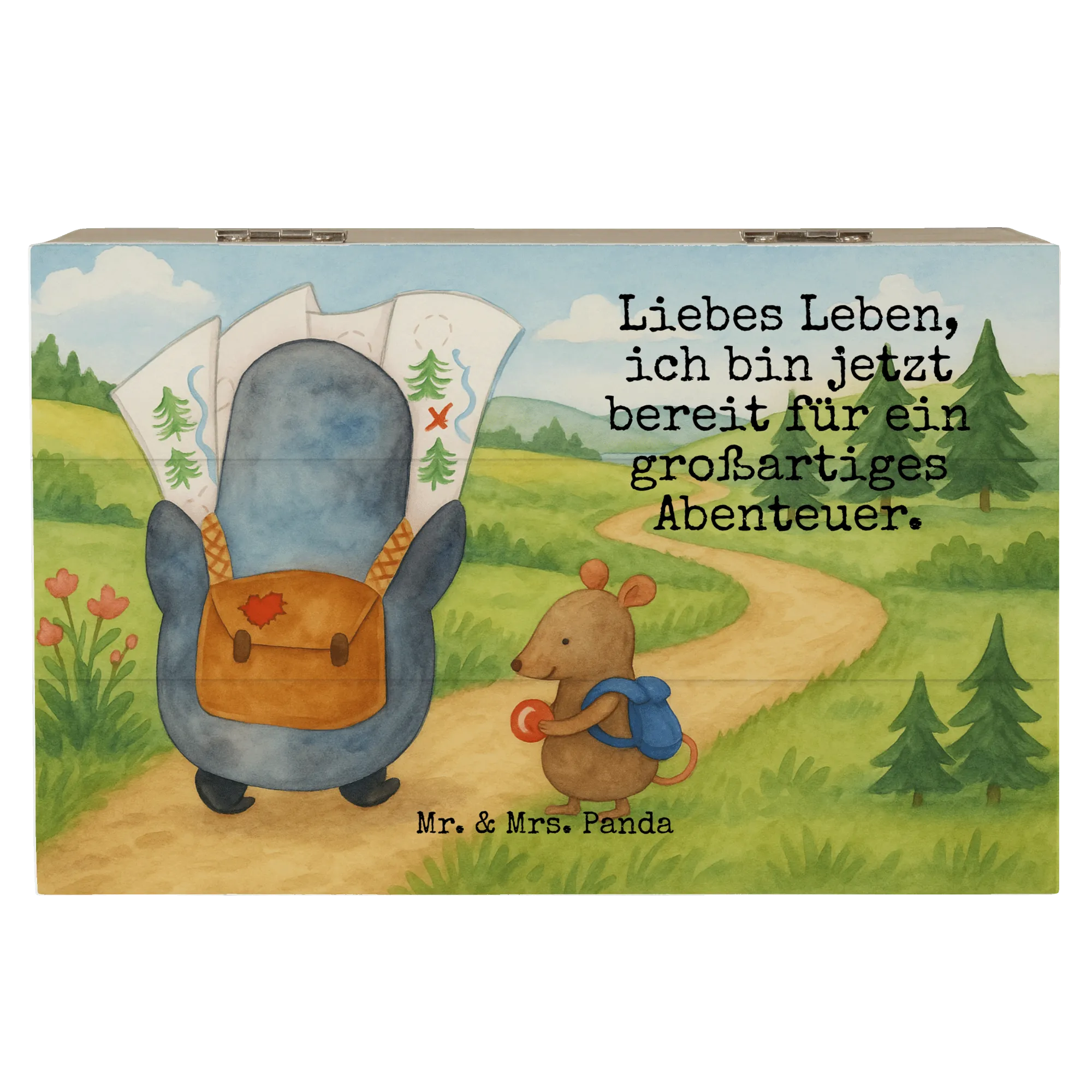 Holzkiste Pinguin & Maus Wanderer Design - 22 x 15 cm - mit Spruch