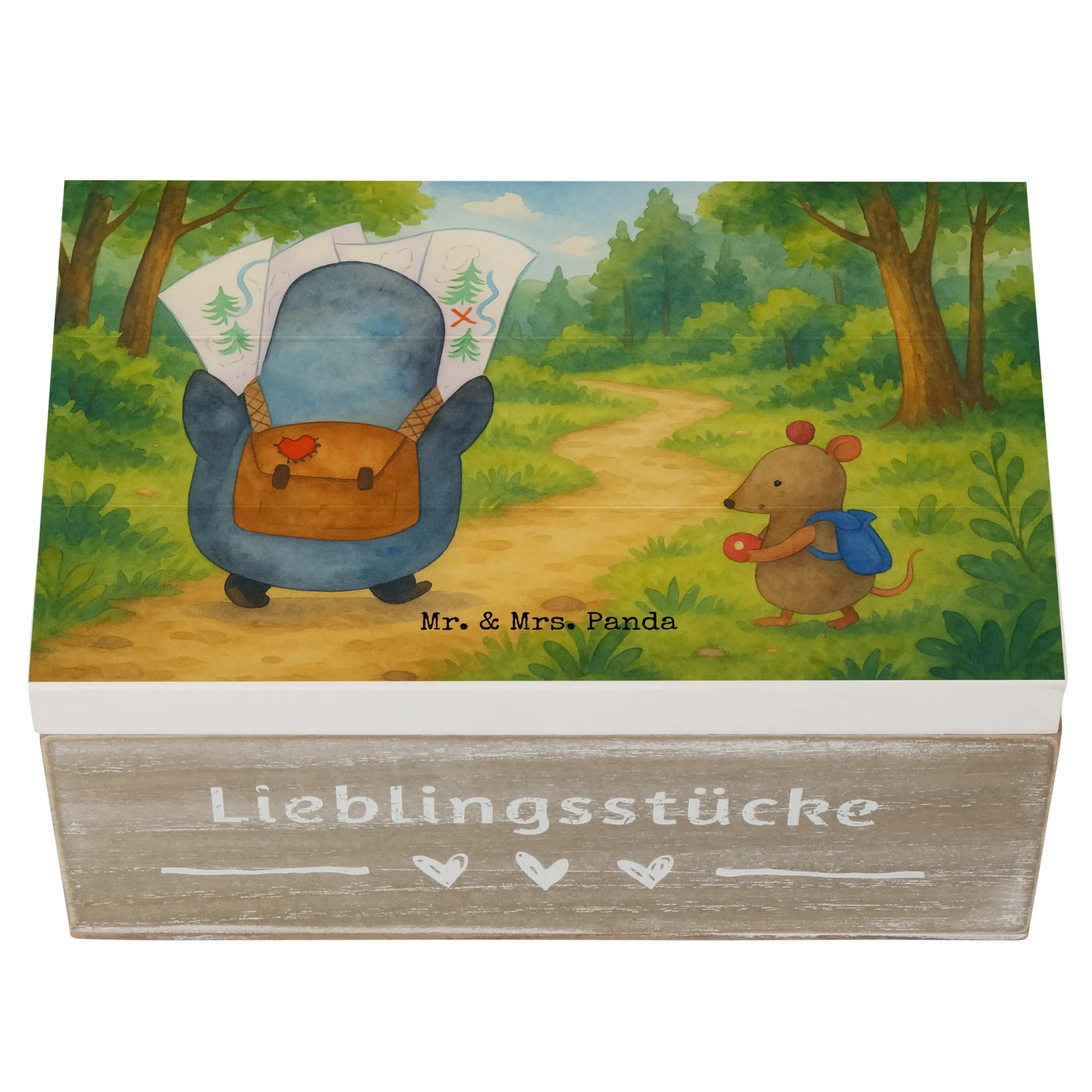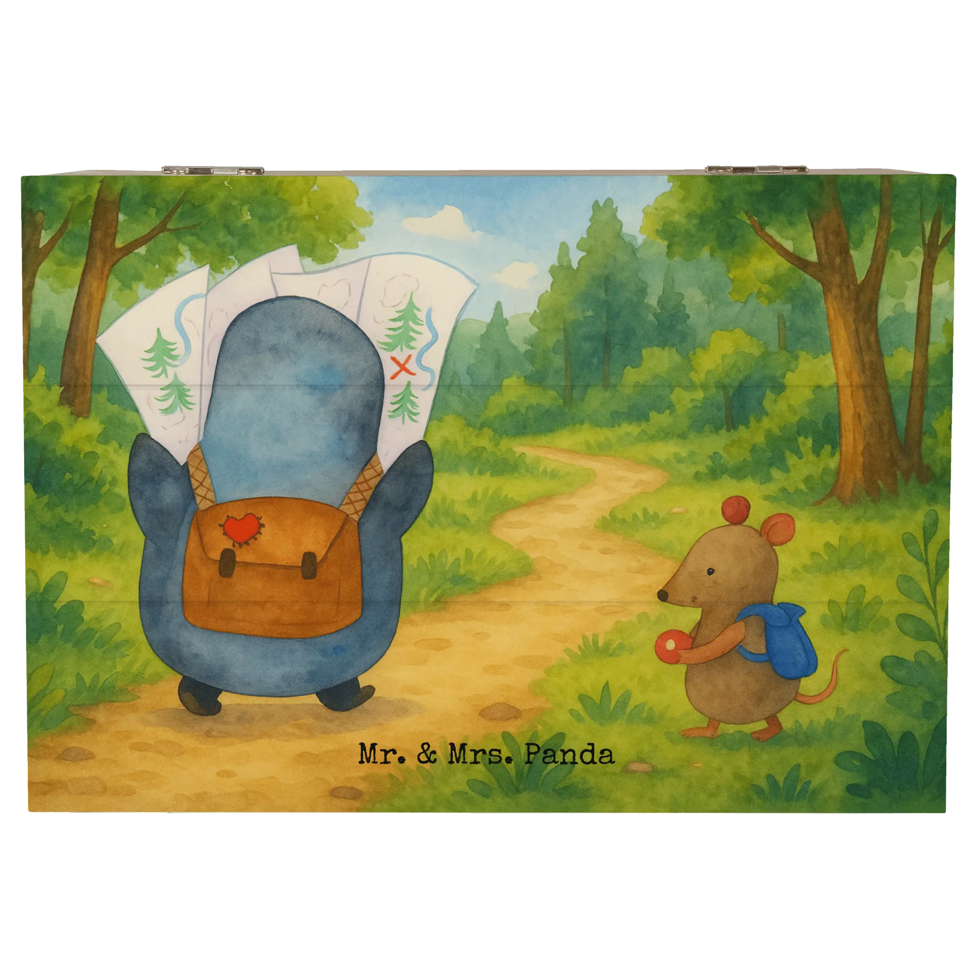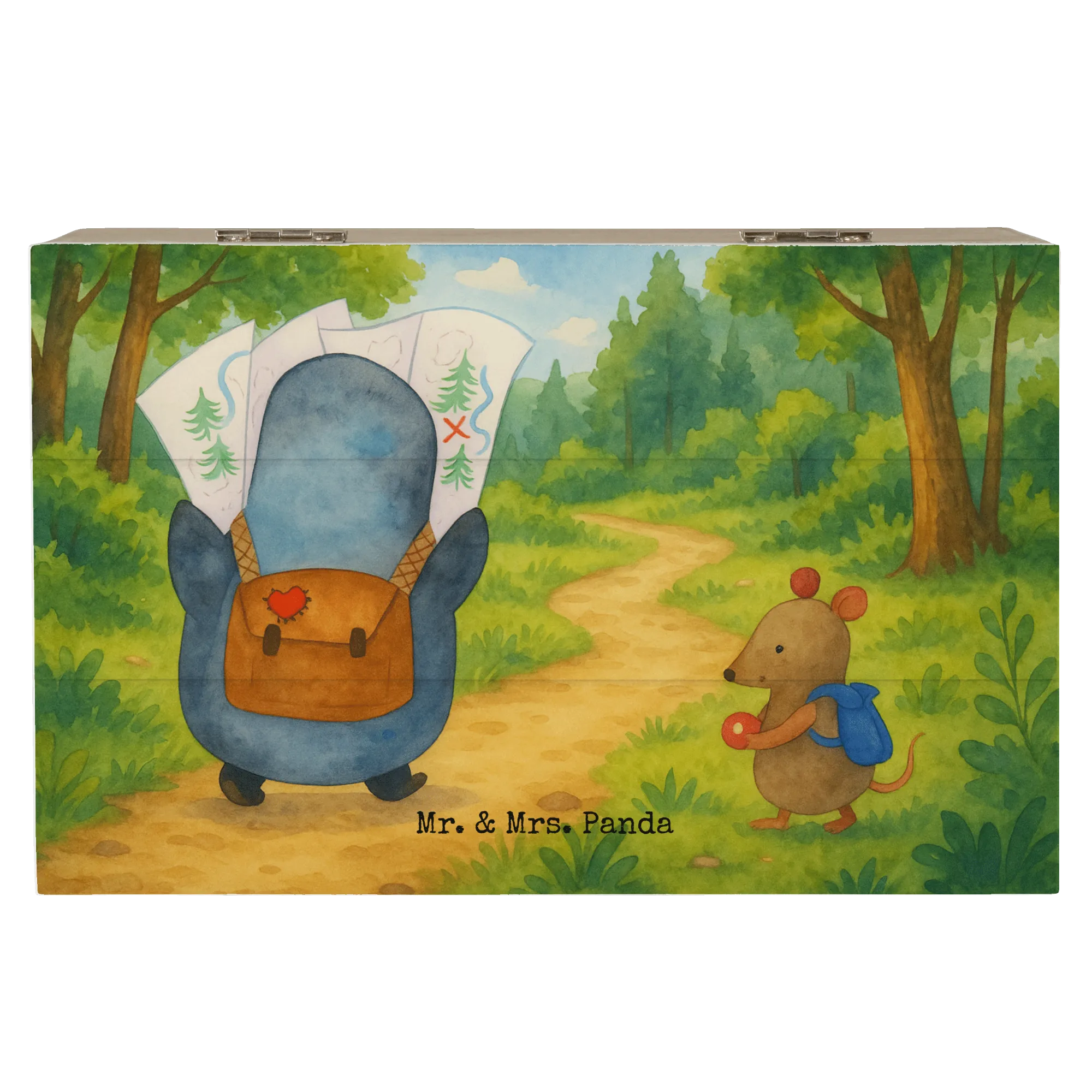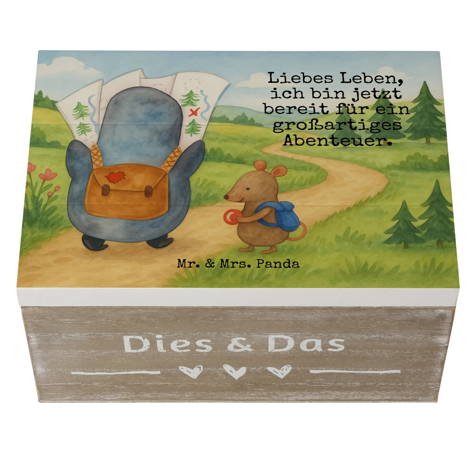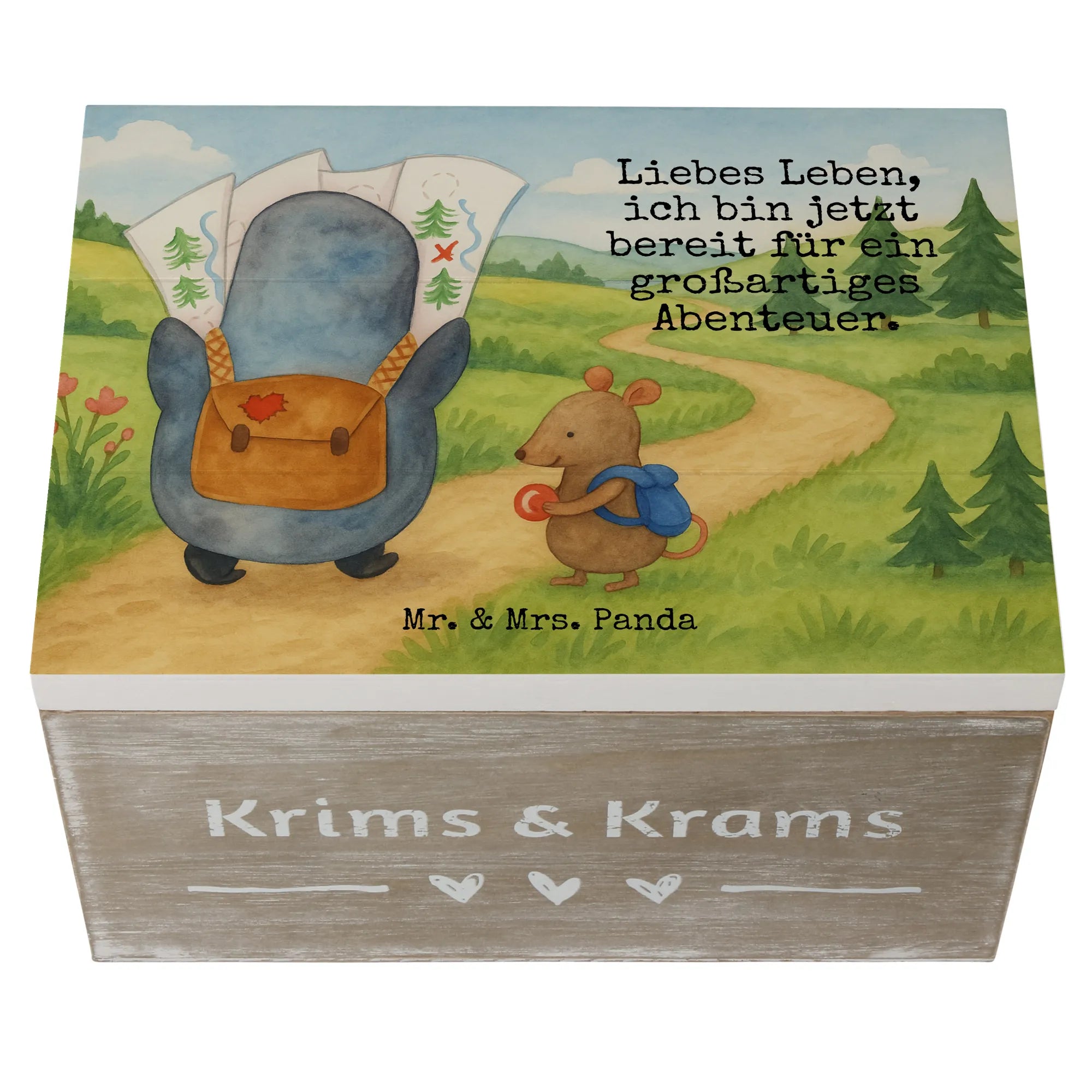 Holzkiste Pinguin & Maus Wanderer Design - 22 x 15 cm - mit Spruch