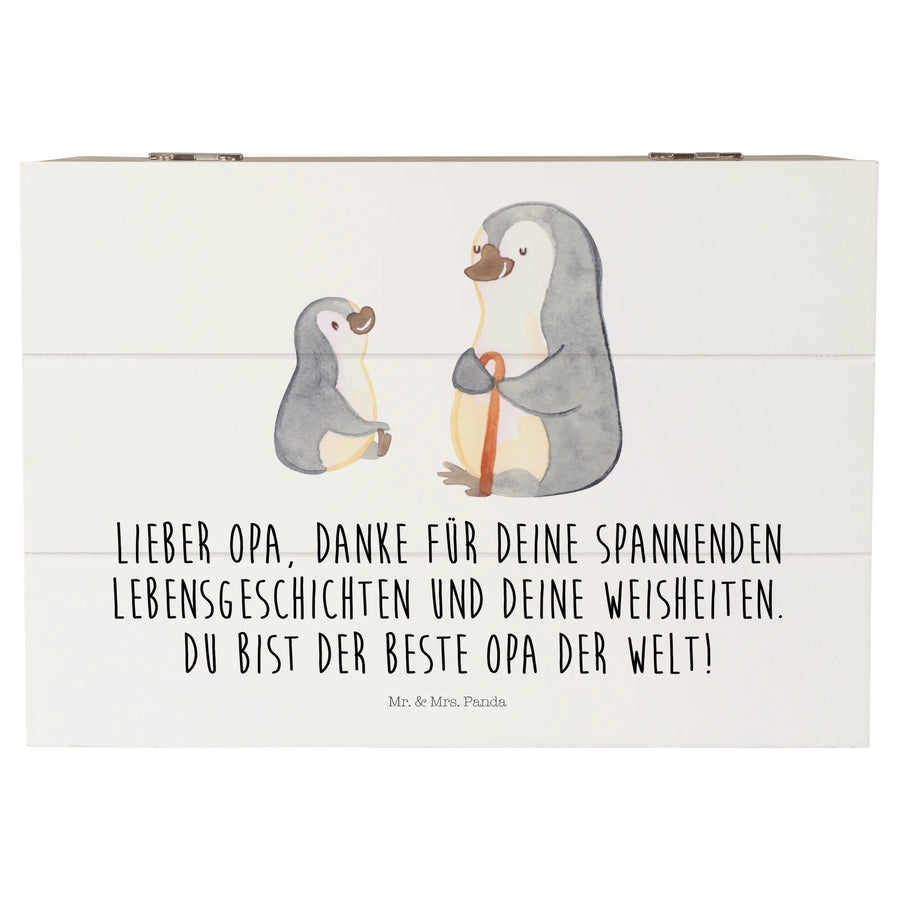 Die wunderschöne Holzkiste von Mr. & Mrs. Panda mit dem liebevollen Motiv des Pinguin Opa Enkel ist das perfekte Geschenk für alle, die ihren Opa schätzen. Mit dem aufgedruckten Text: 'Lieber Opa, danke für deine spannenden Lebensgeschichten und deine Weisheiten. Du bist der beste Opa der Welt!' ist diese Kiste nicht nur eine Aufbewahrungsmöglichkeit für schätzenswerte Erinnerungen, sondern auch ein emotionales Geschenk, das Herzen berührt.