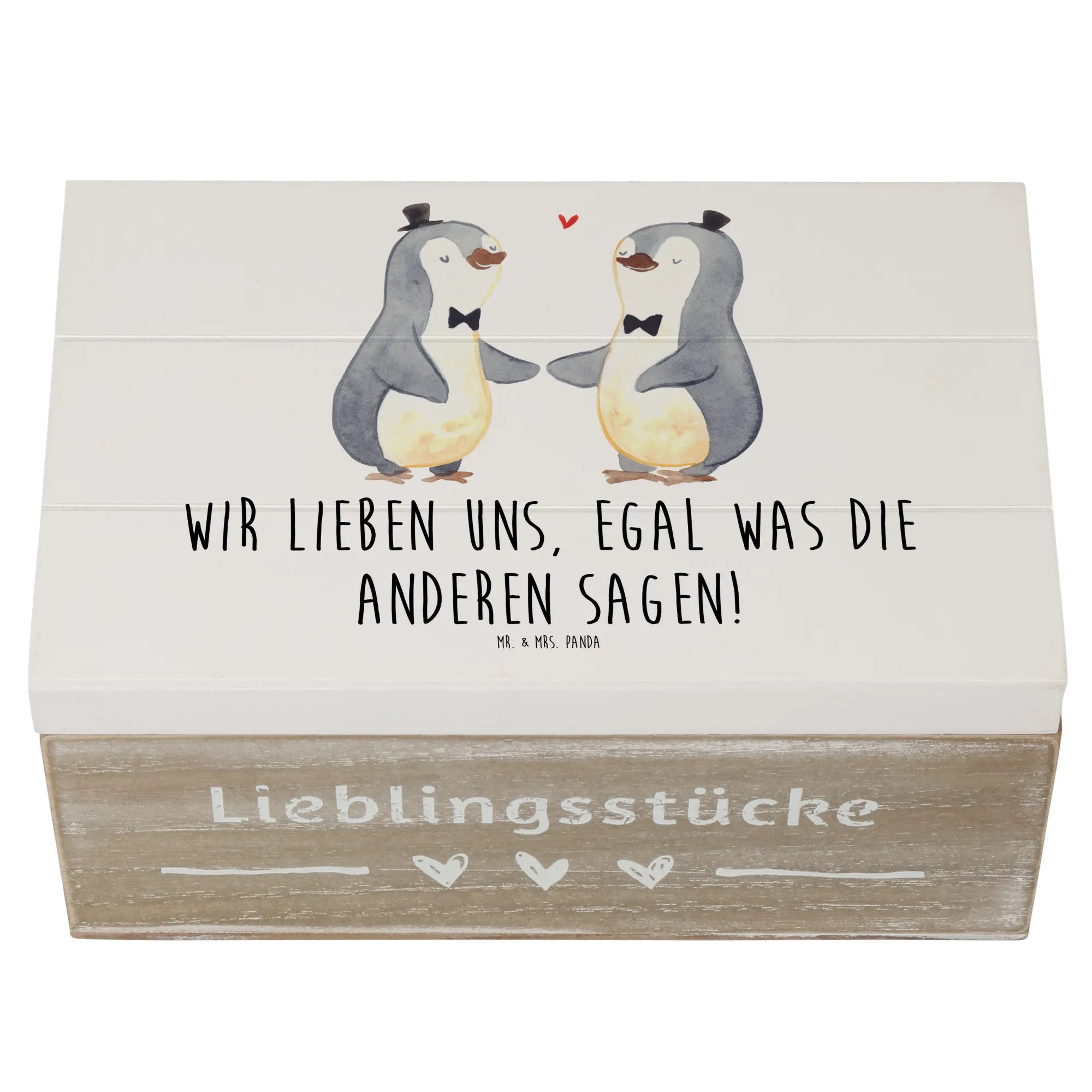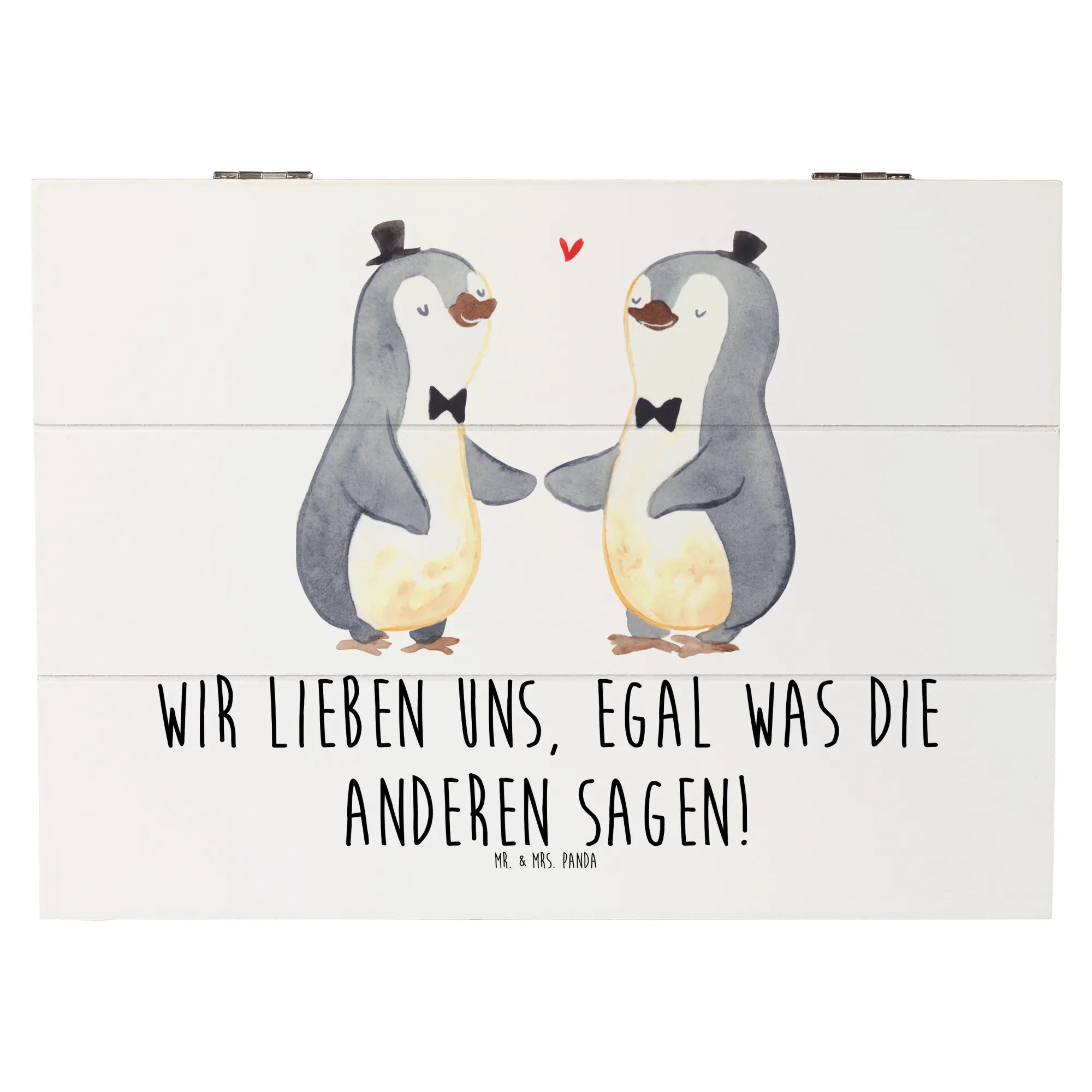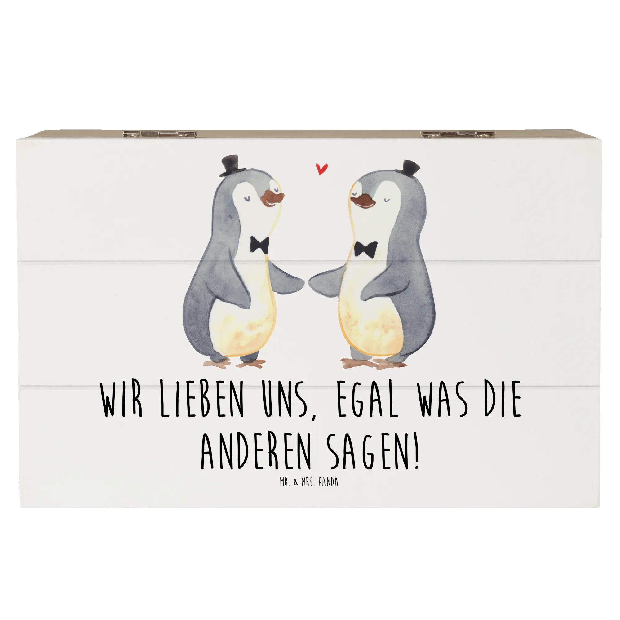 Mr. & Mrs. Panda Holzkiste „Pinguin Pärchen Gay Pride“