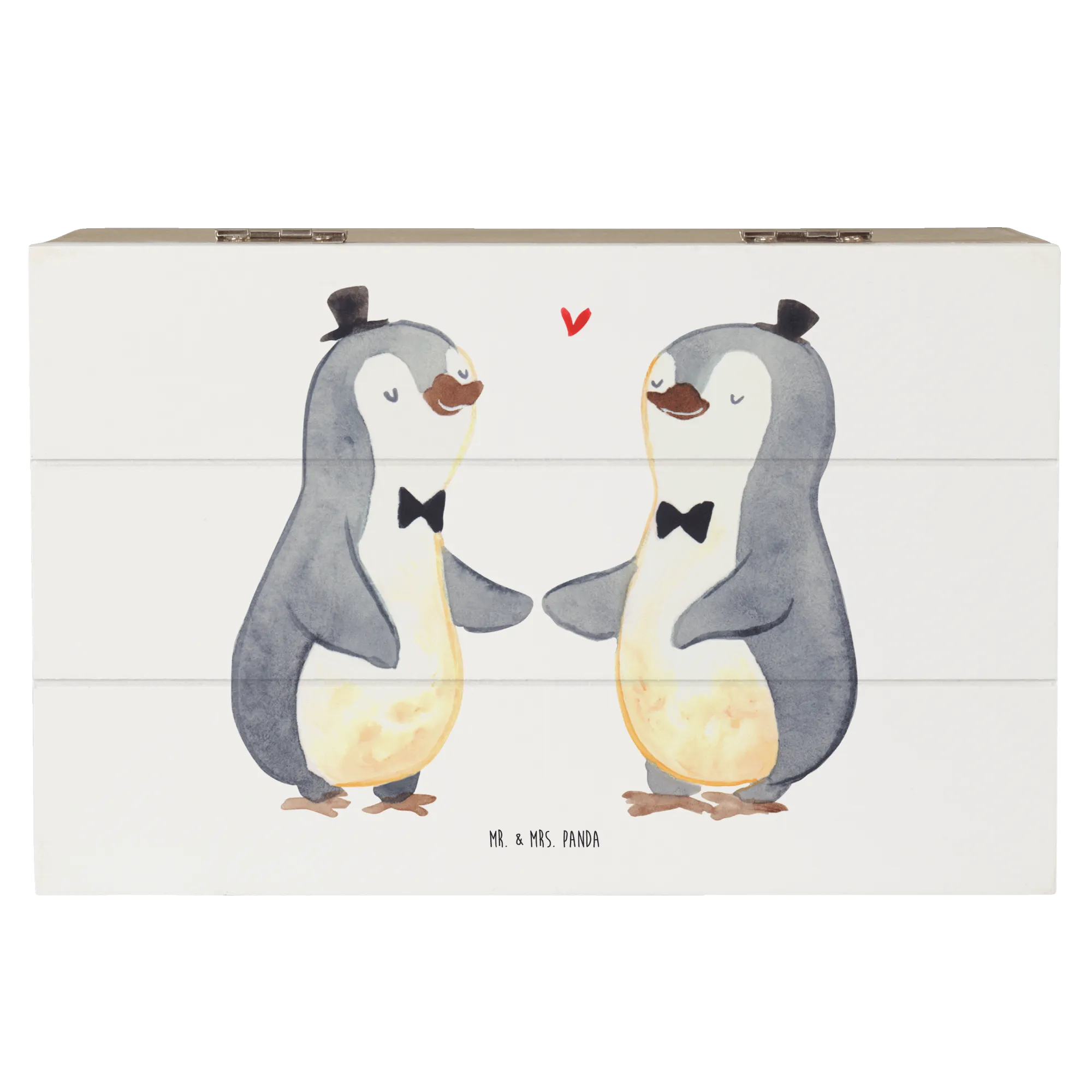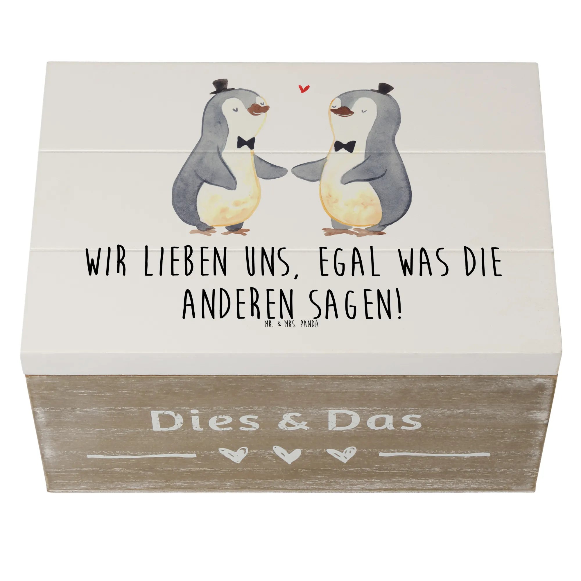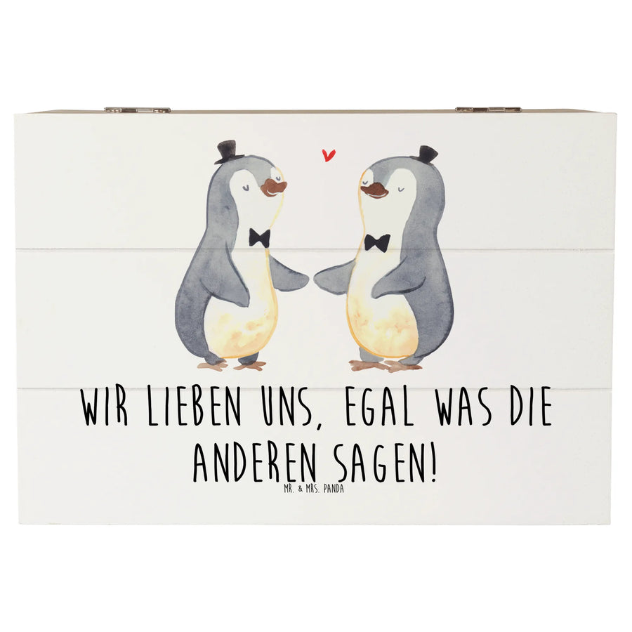 Mr. & Mrs. Panda Holzkiste „Pinguin Pärchen Gay Pride“