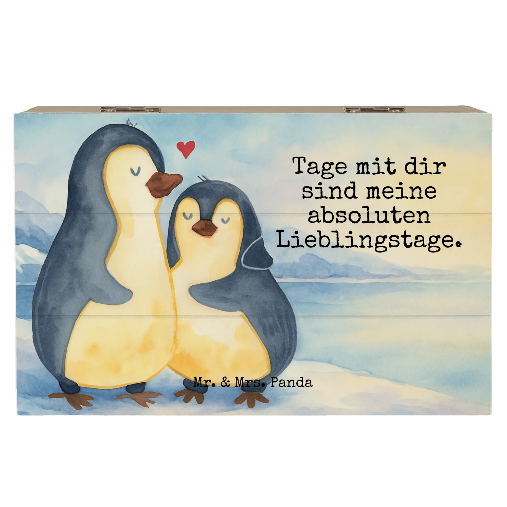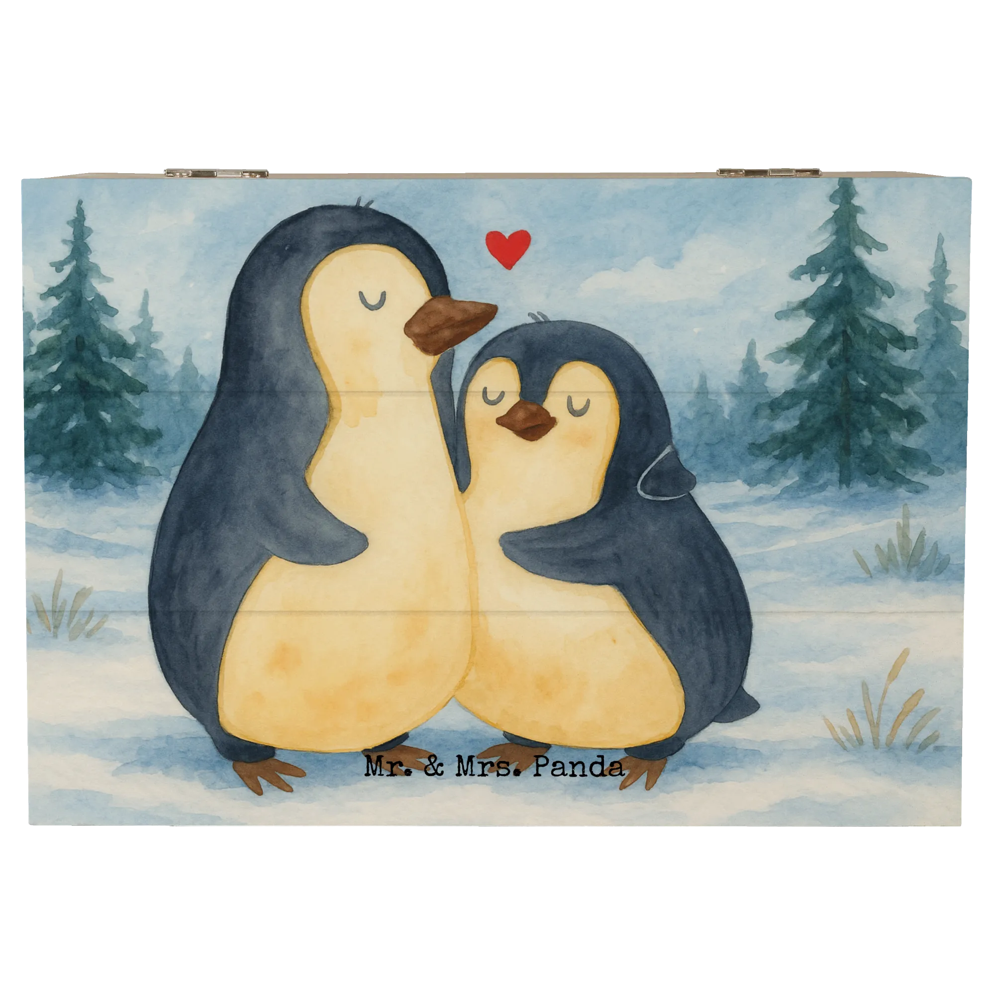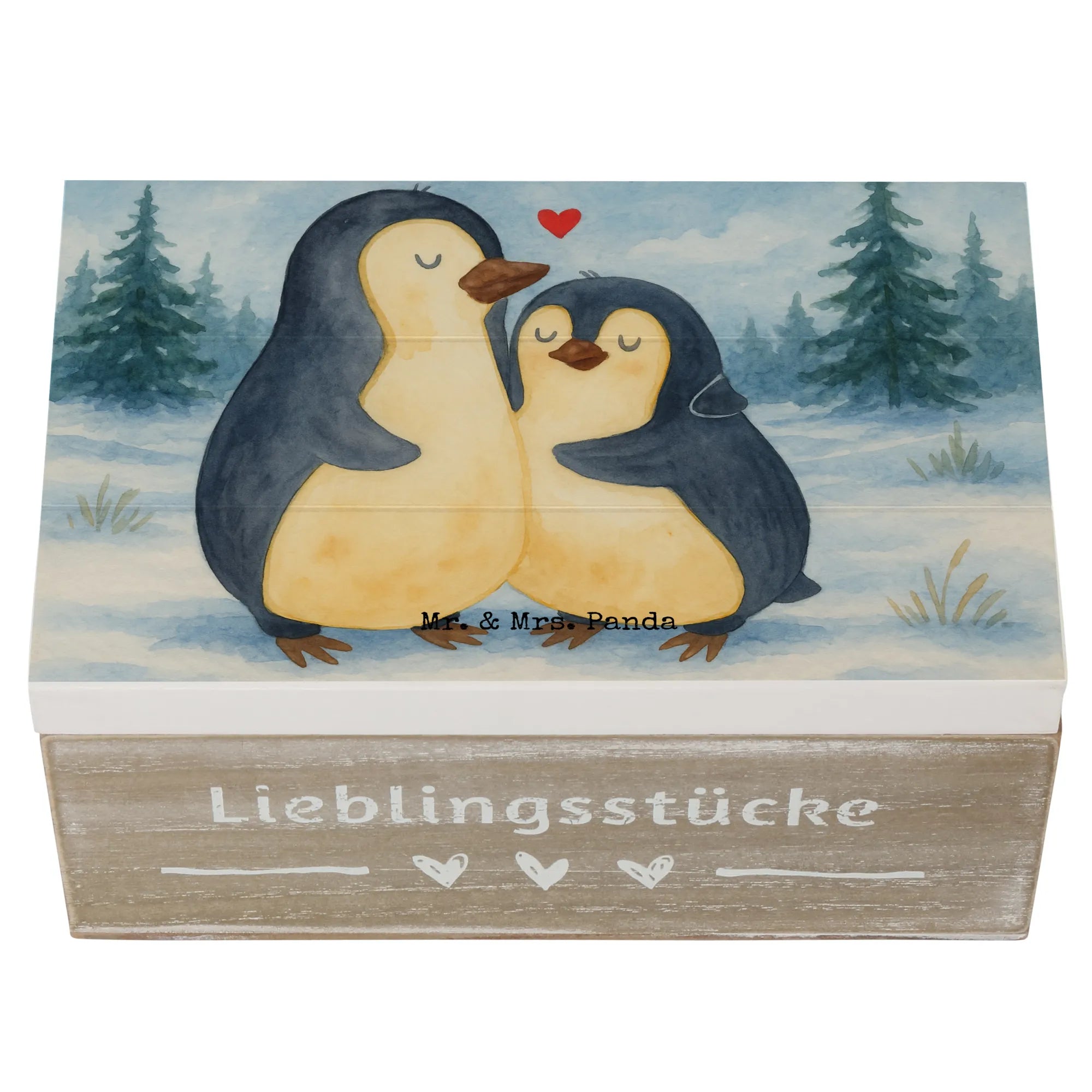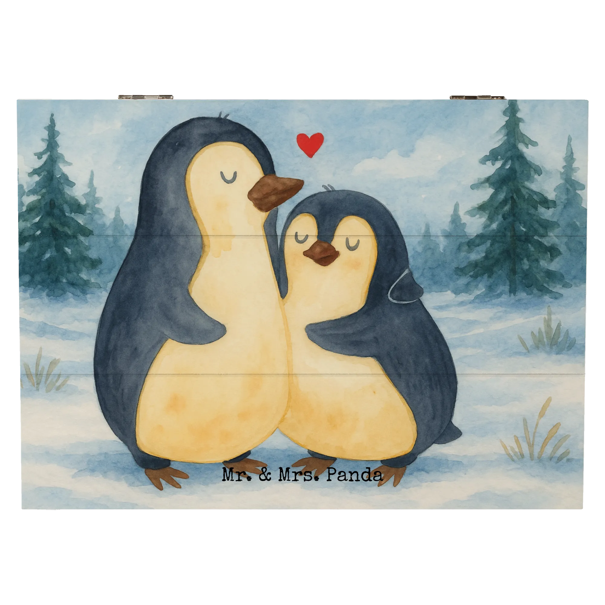 Holzkiste Pinguin umarmen Design - 22 x 15 cm - mit Spruch