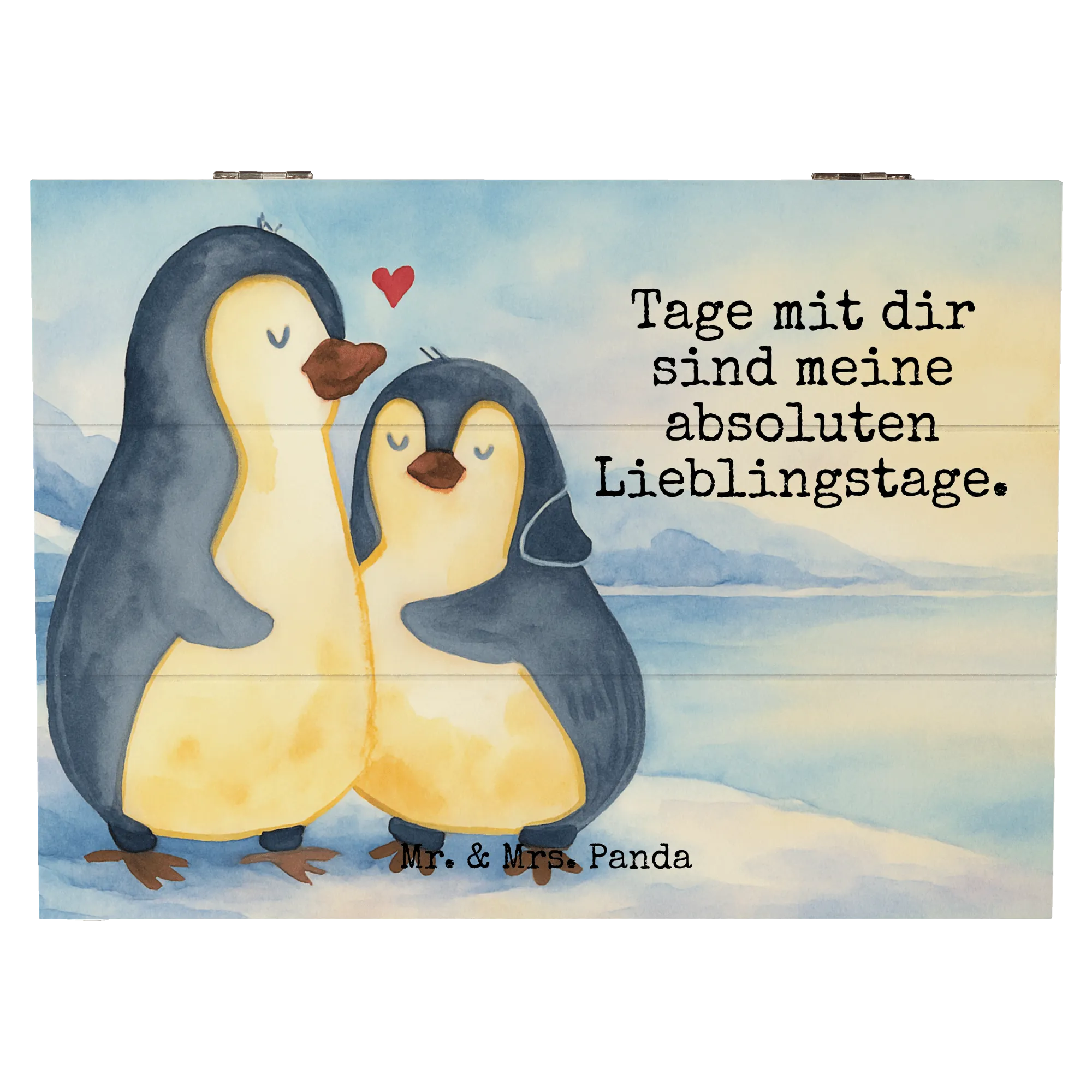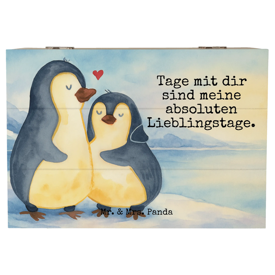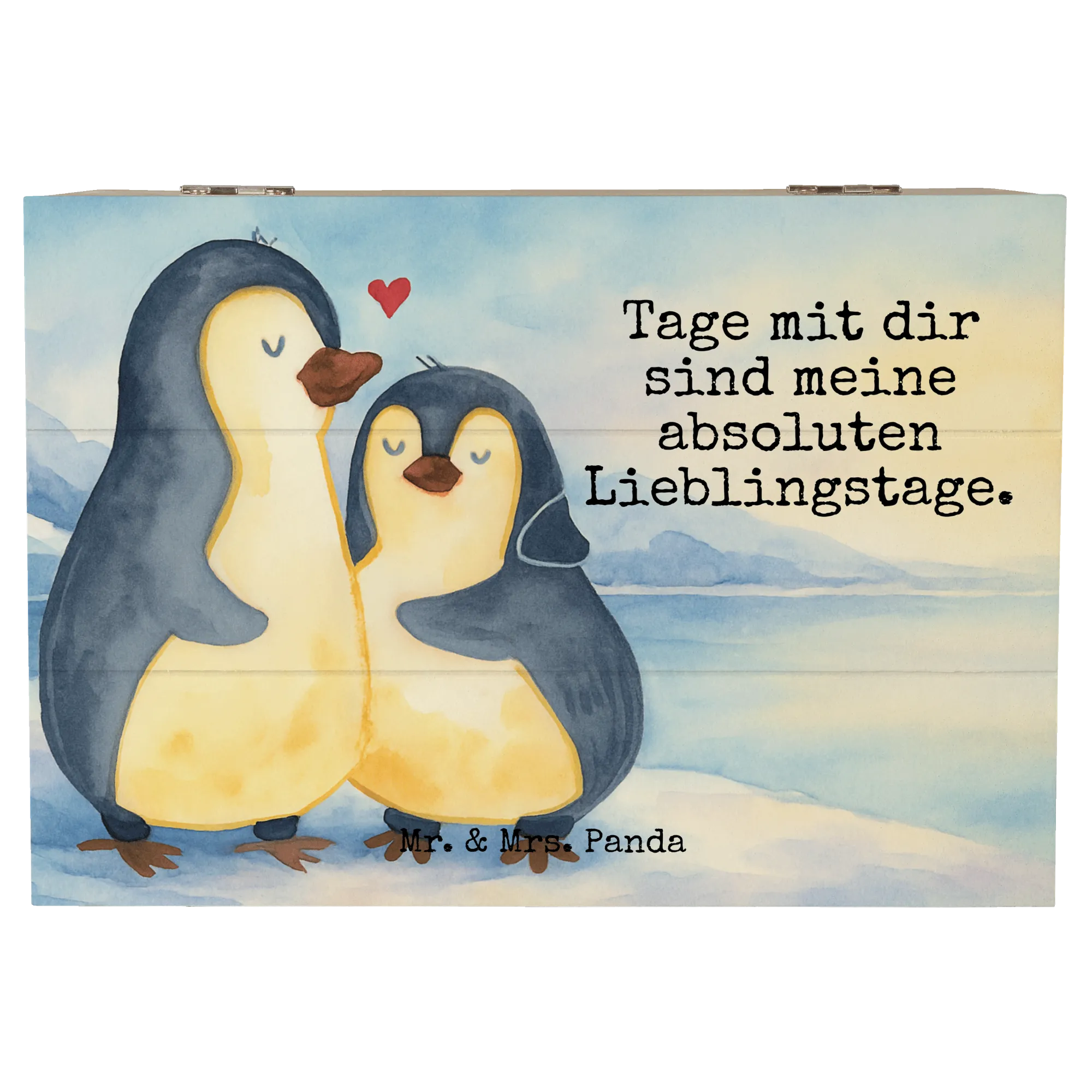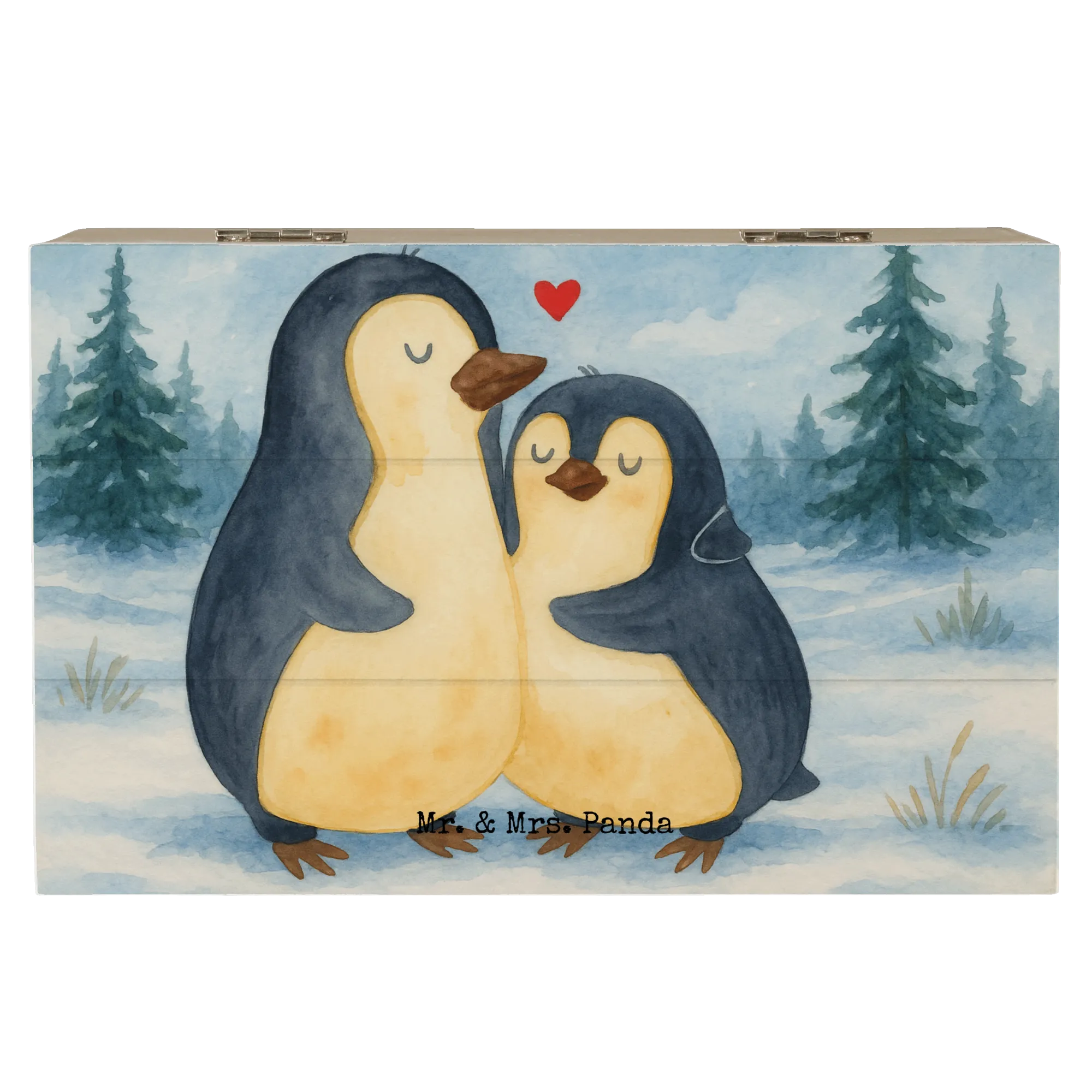 Holzkiste Pinguin umarmen Design - 22 x 15 cm - mit Spruch