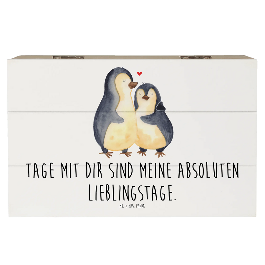 Die wunderschöne Holzkiste von Mr. & Mrs. Panda mit dem bezaubernden Motiv des umarmenden Pinguins ist das perfekte Geschenk für jeden Anlass!