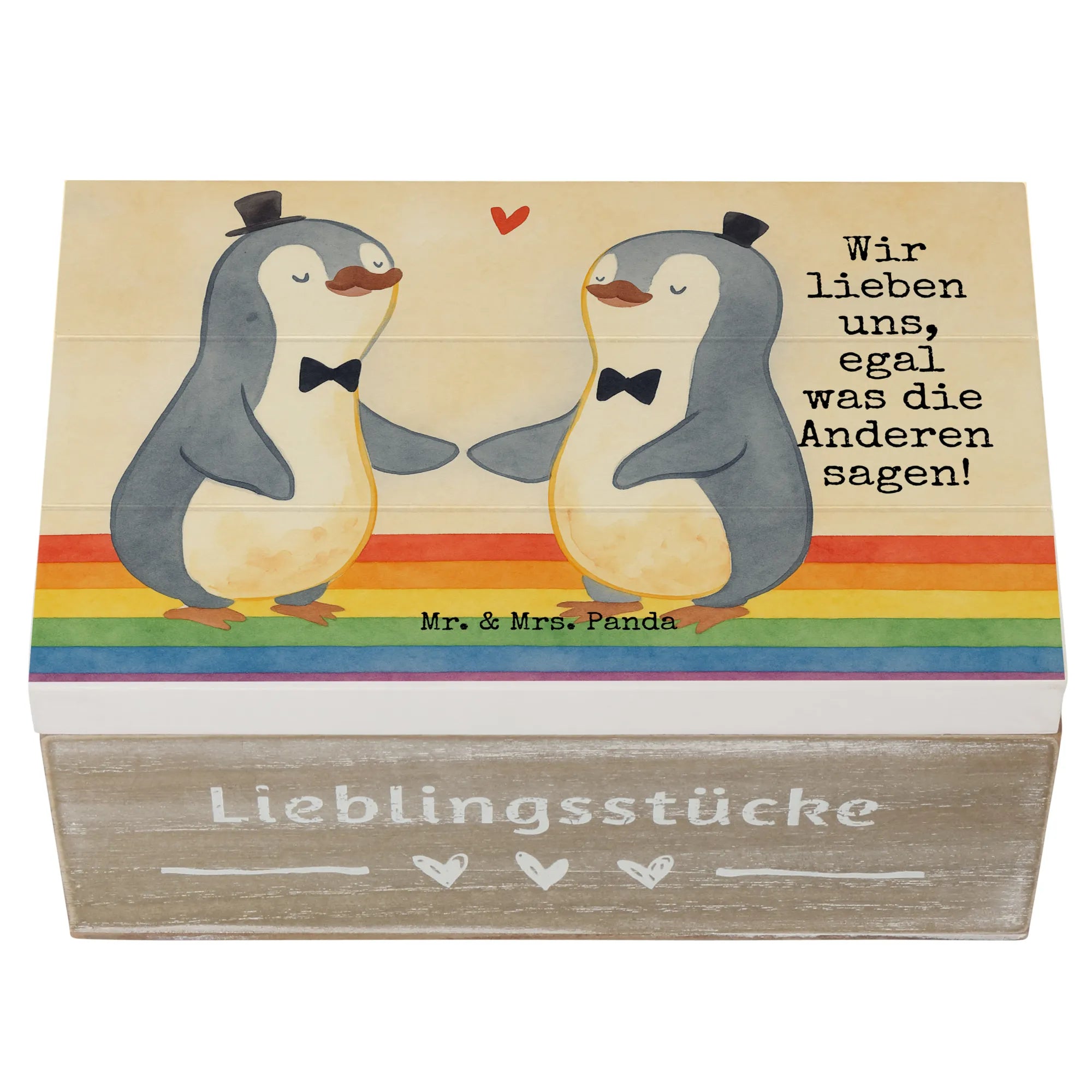 Holzkiste Pinguine Gay Pride Design - 22 x 15 cm - mit Spruch