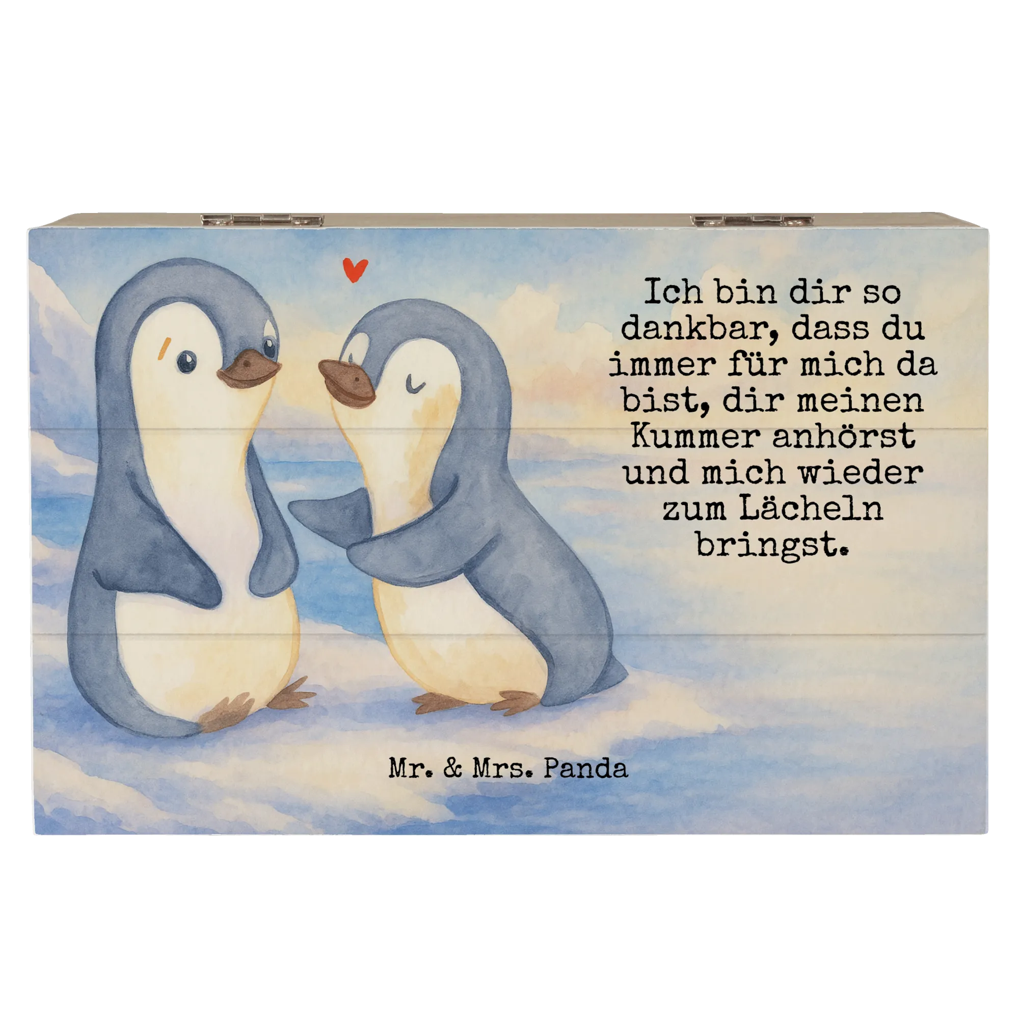 Holzkiste Pinguine trösten Design - 22 x 15 cm - mit Spruch