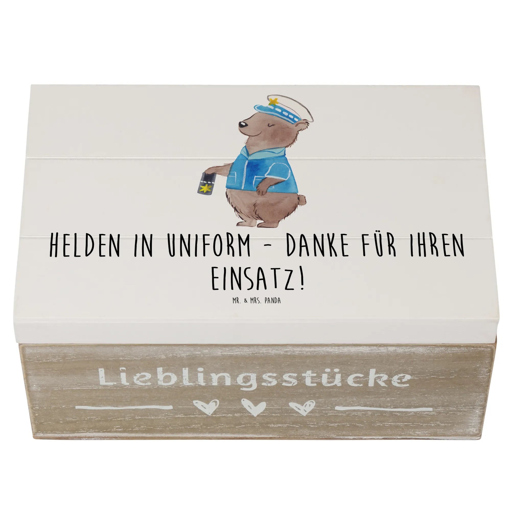 Die wunderschöne Holzkiste "Helden in Uniform - Danke für Ihren Einsatz!" von Mr. & Mrs. Panda ist das perfekte Geschenk für jeden, der seine Dankbarkeit auf besonders liebevolle Weise zeigen möchte. Ideal für die, die ihre Wertschätzung gegenüber Polizisten oder anderen Uniformierten ausdrücken wollen, bringt diese Kiste nicht nur funktionalen Nutzen, sondern auch einen emotionalen Wert mit.