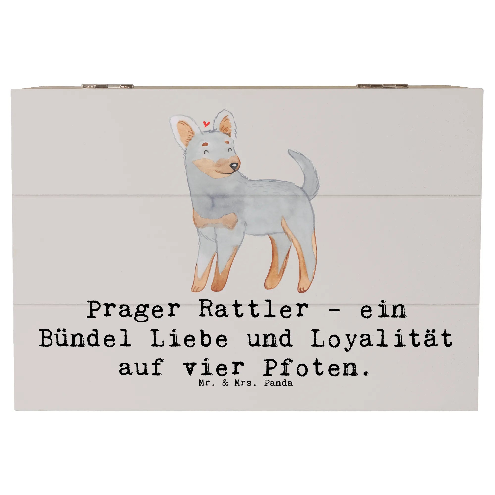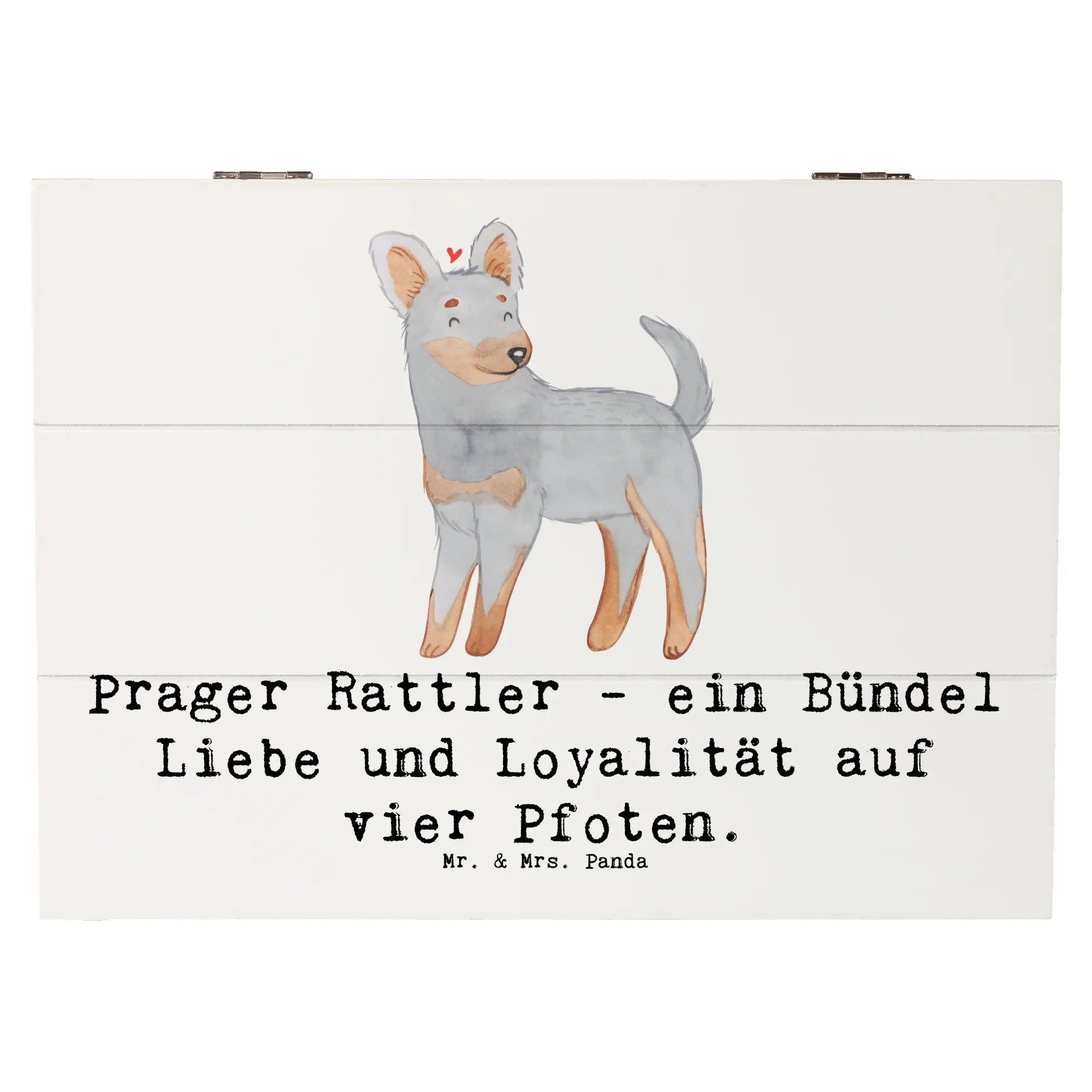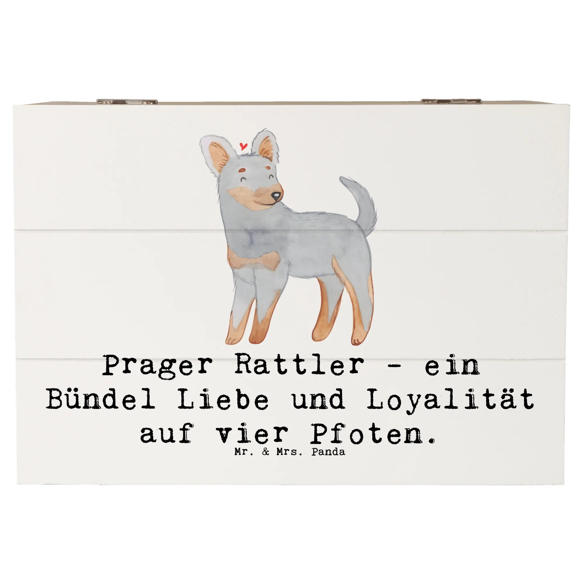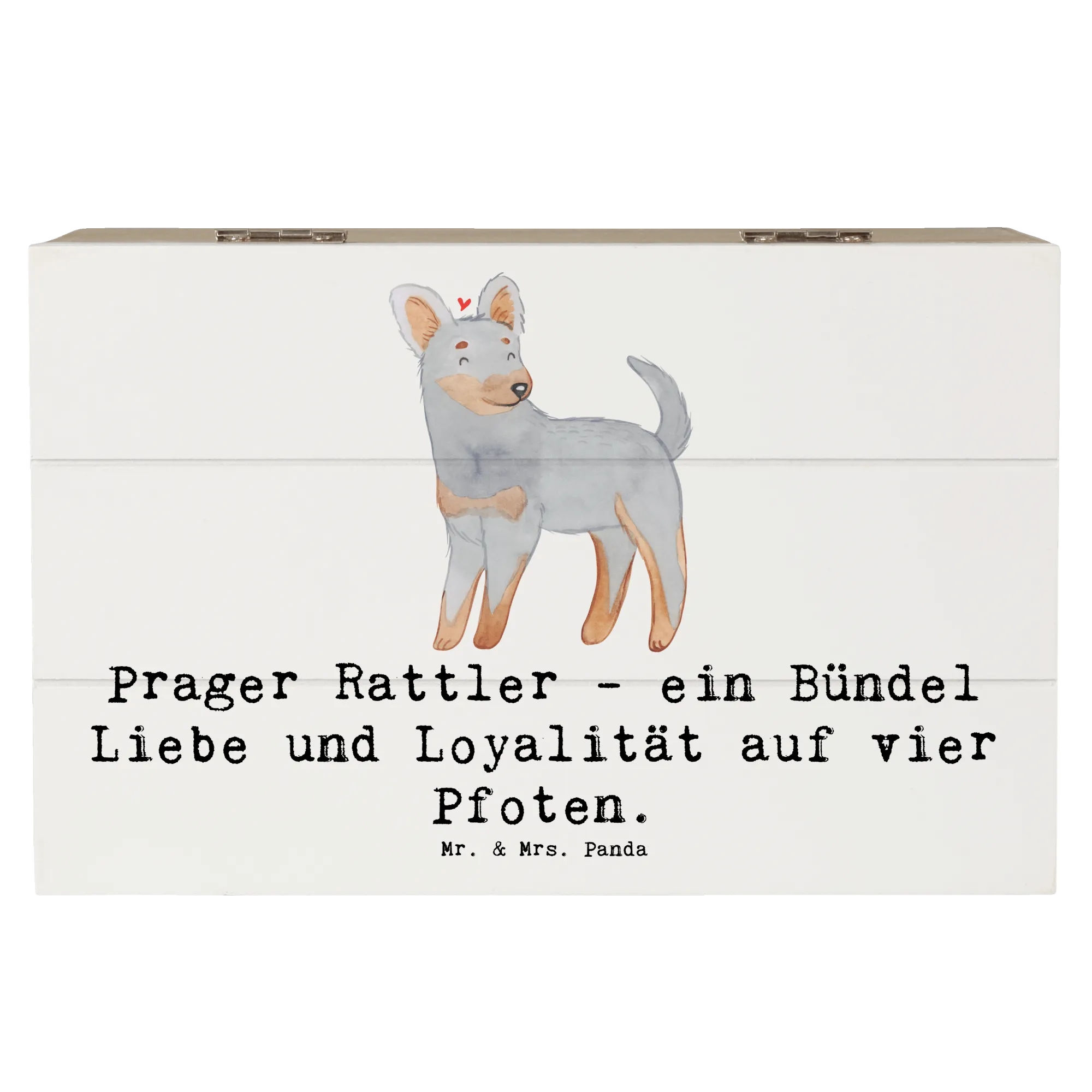 Die Kiste ist in edlem, weißem Design gehalten und begeistert durch das raffinierte Motiv des Prager Rattlers, das mit dem liebevollen Spruch "Prager Rattler - Liebenswerte Persönlichkeiten auf vier Pfoten" verziert ist. Jedes Detail wurde von Mrs. Panda mit viel Liebe zum Handwerk entworfen, um einen Hauch von Persönlichkeit und Charme in Dein Zuhause zu bringen.