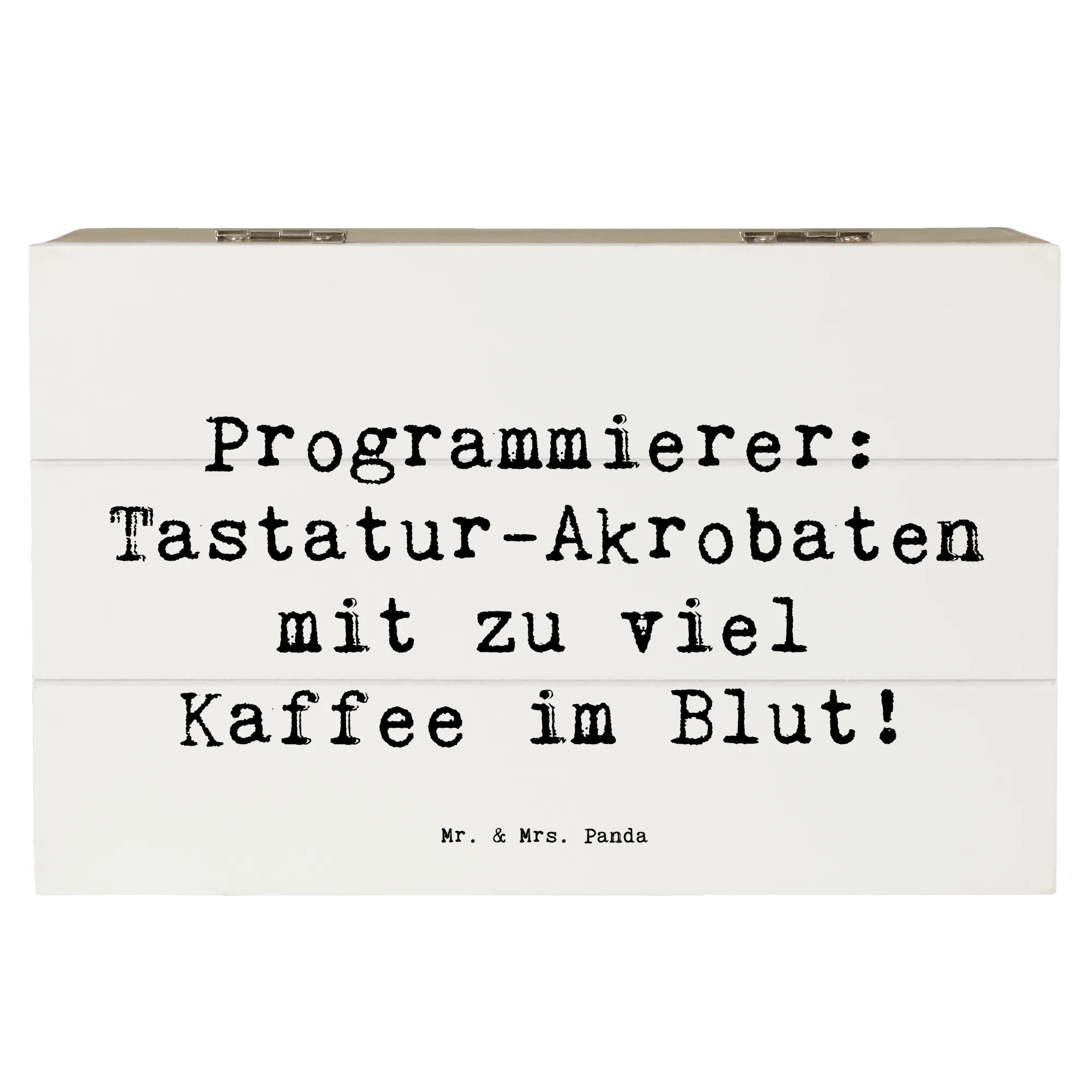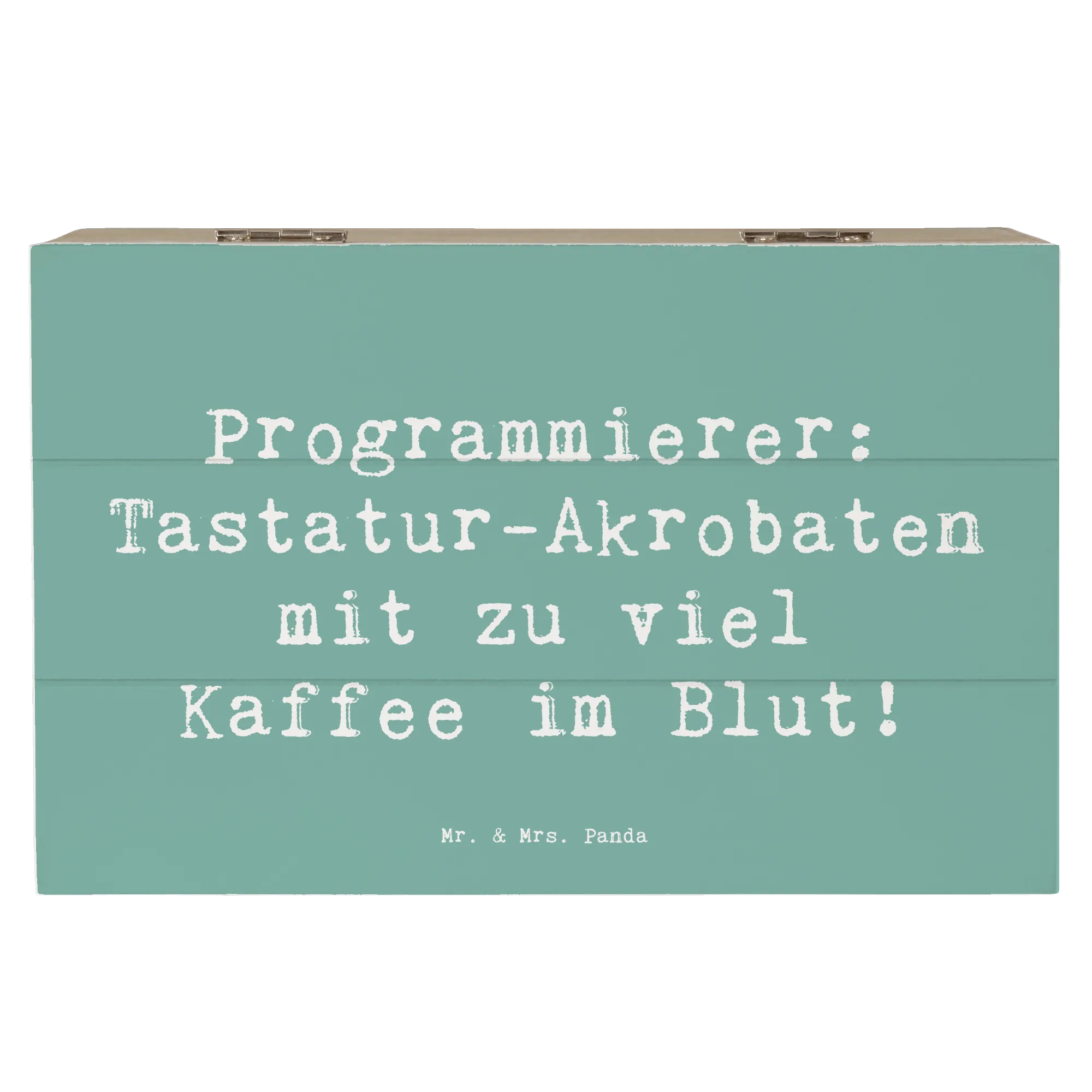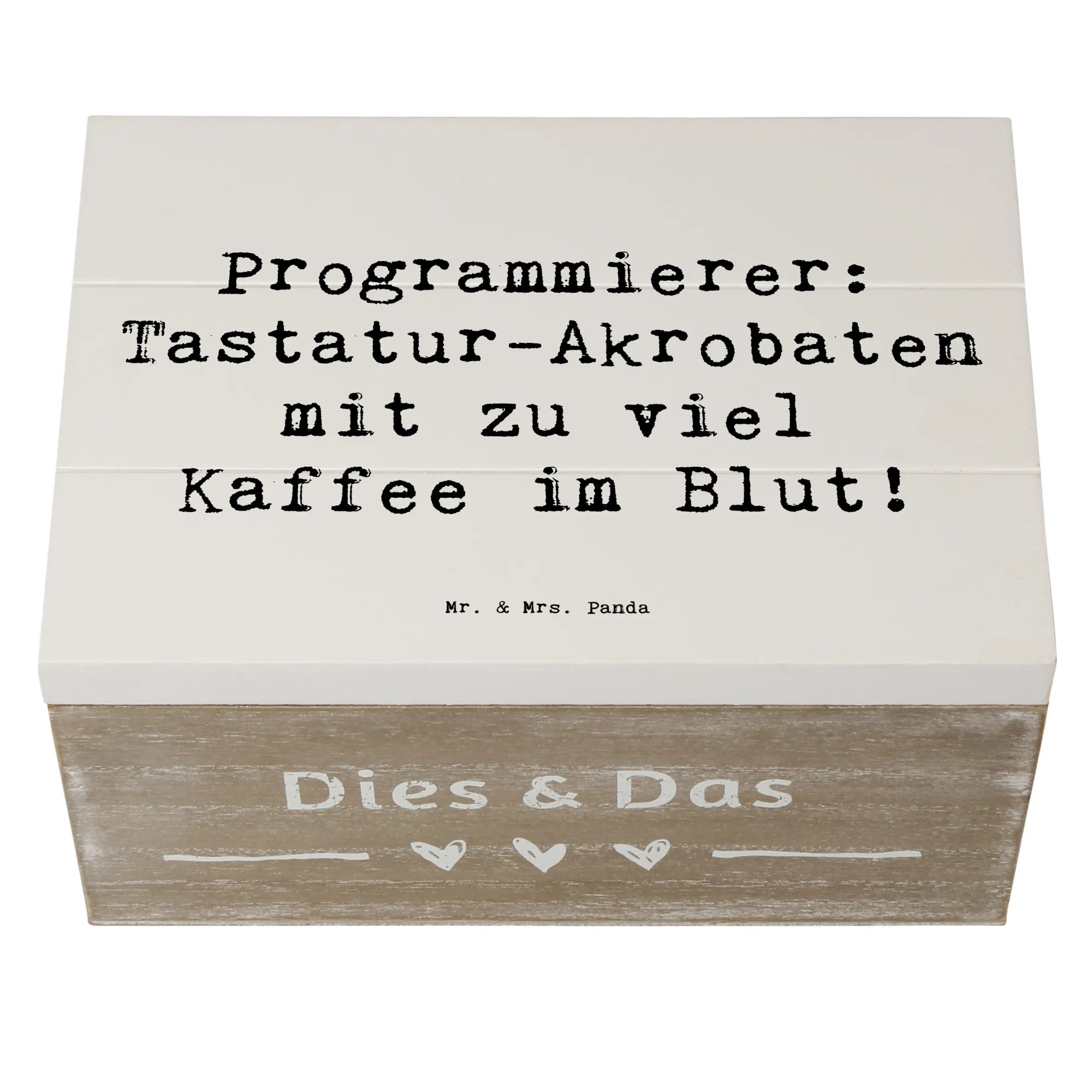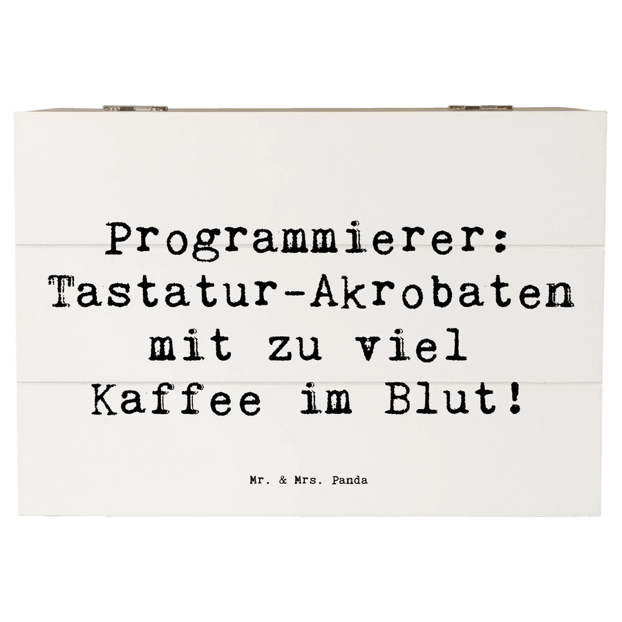 Entdecke die wundervolle Holzkiste mit dem Motto 'Programmierer: Tastatur-Akrobaten mit zu viel Kaffee im Blut!' von Mr. & Mrs. Panda. Diese Schatzkiste ist nicht nur ein Platz für Deine wertvollsten Erinnerungen, sondern auch eine liebevolle Hommage an alle Programmierer und ihre kreative Arbeit.