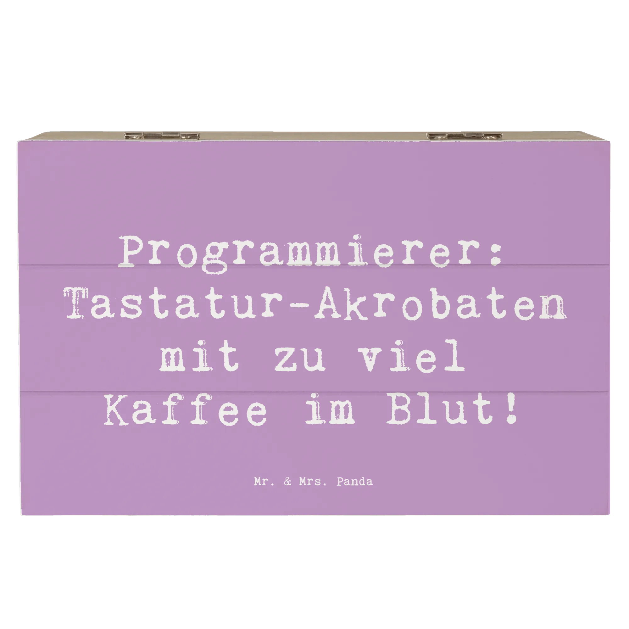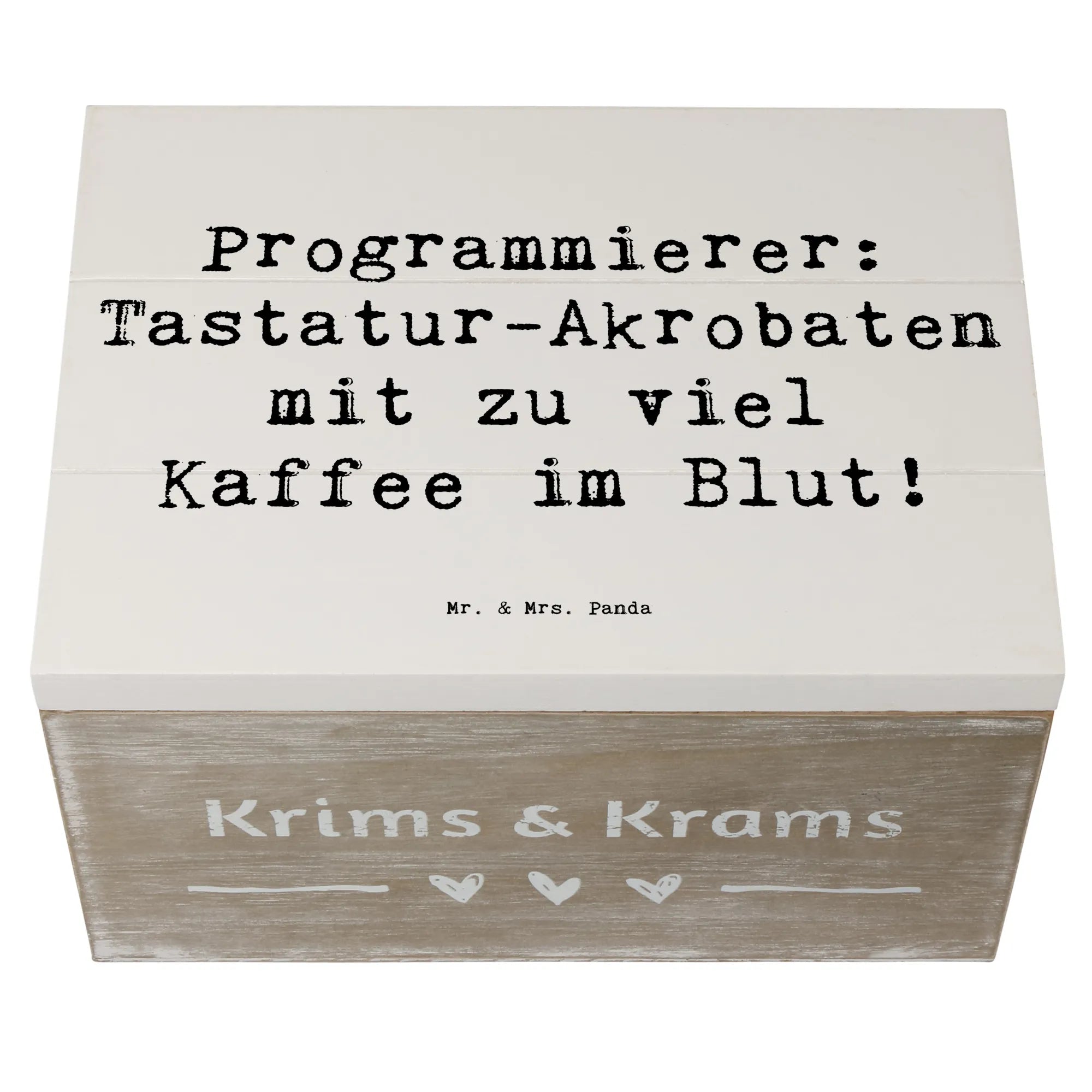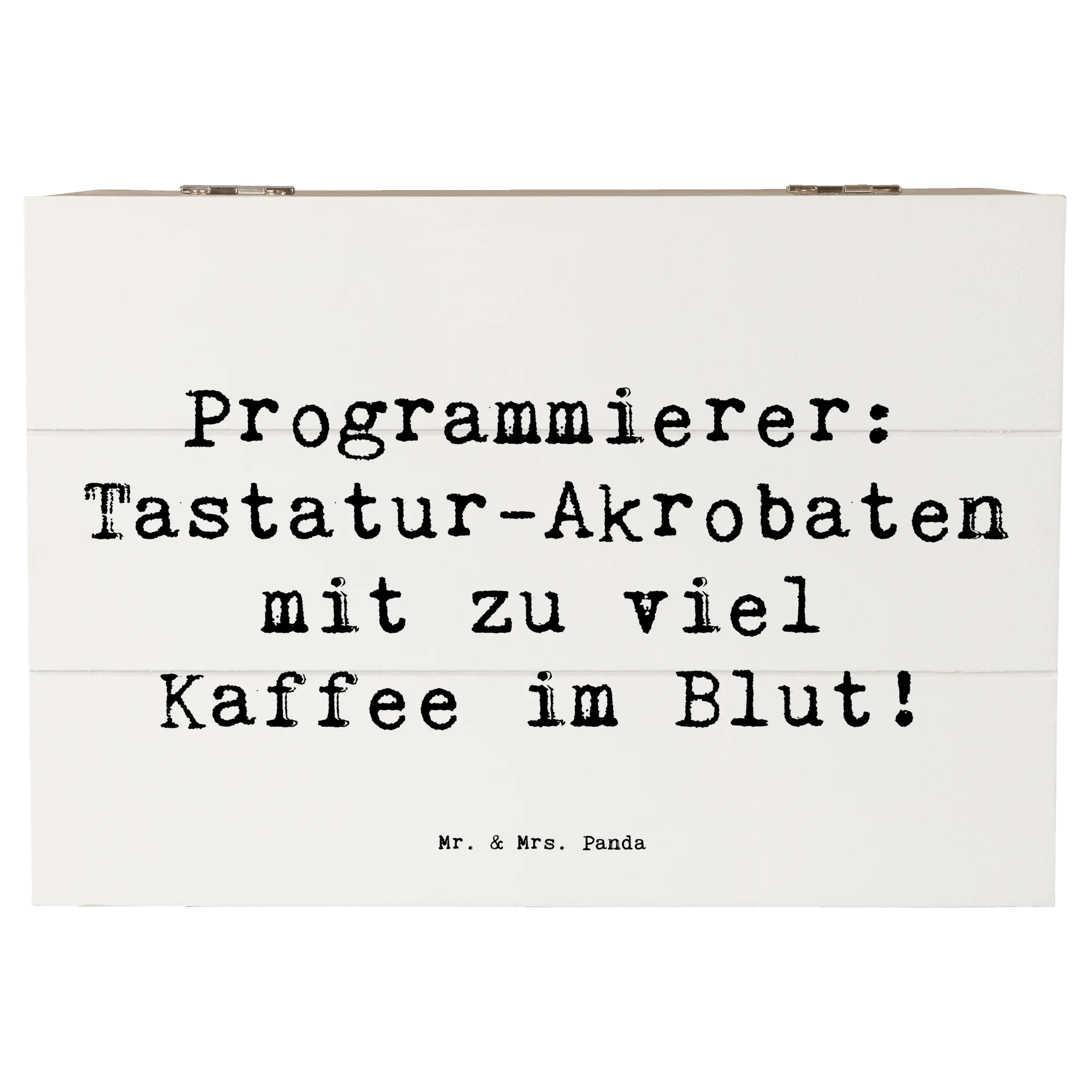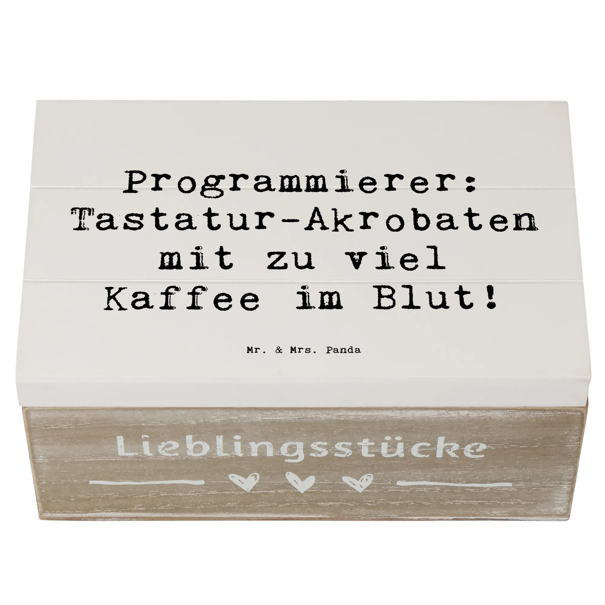 Entdecke die wundervolle Holzkiste mit dem Motto 'Programmierer: Tastatur-Akrobaten mit zu viel Kaffee im Blut!' von Mr. & Mrs. Panda. Diese Schatzkiste ist nicht nur ein Platz für Deine wertvollsten Erinnerungen, sondern auch eine liebevolle Hommage an alle Programmierer und ihre kreative Arbeit.