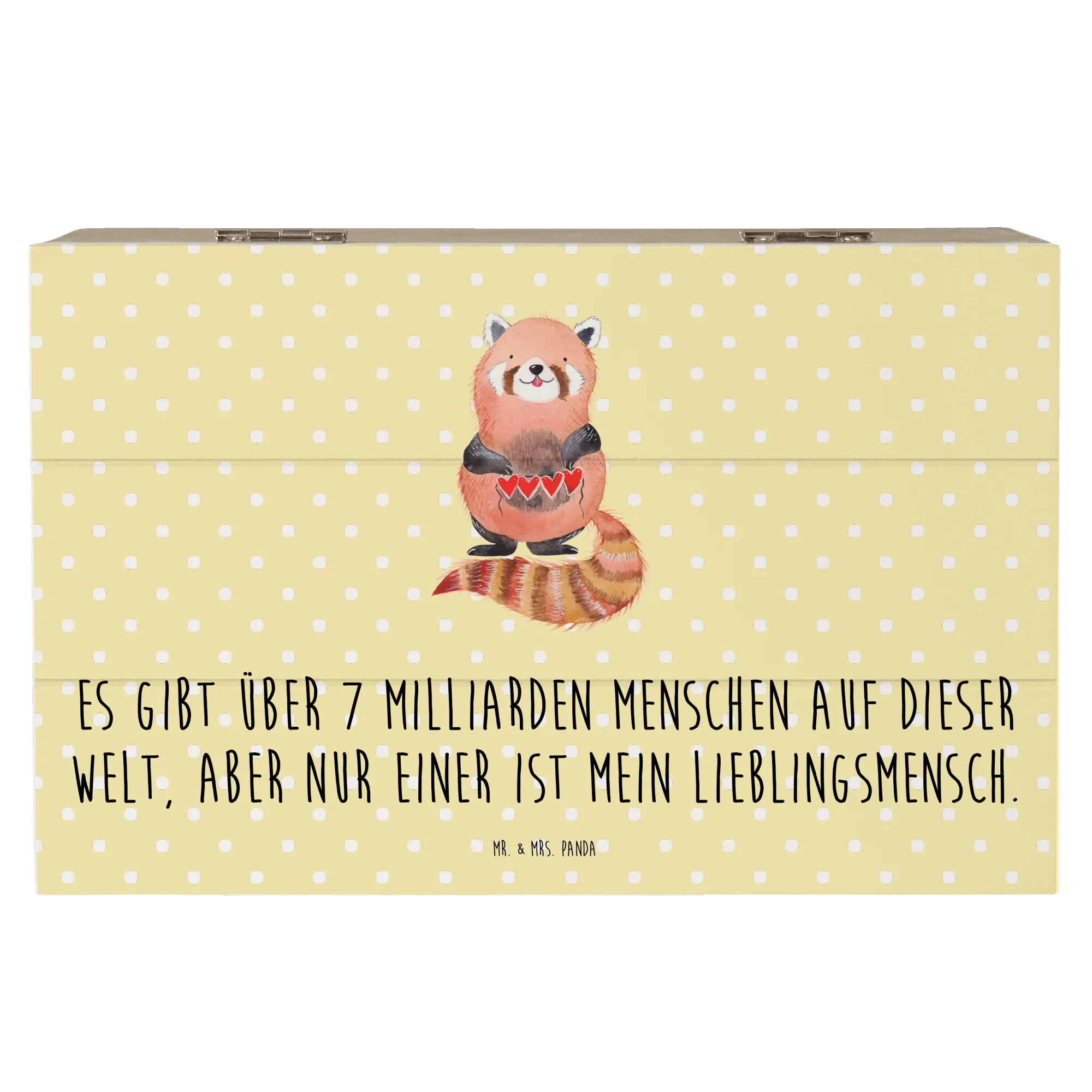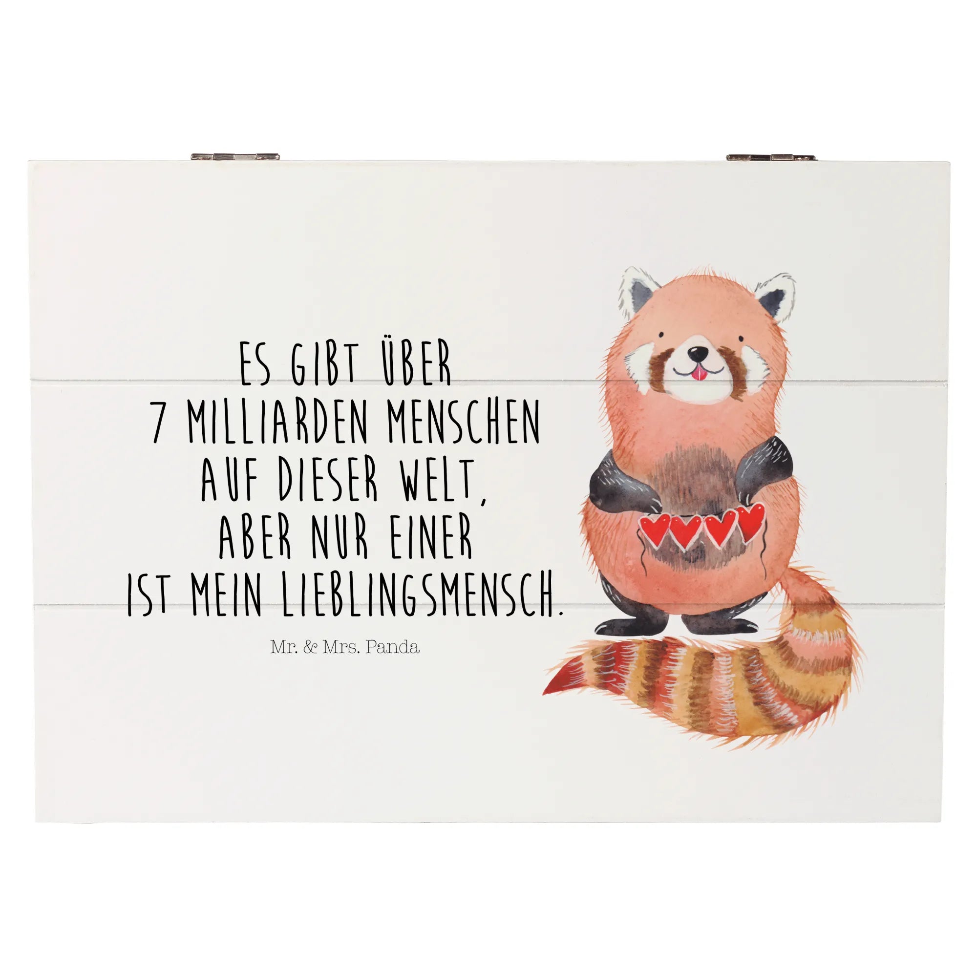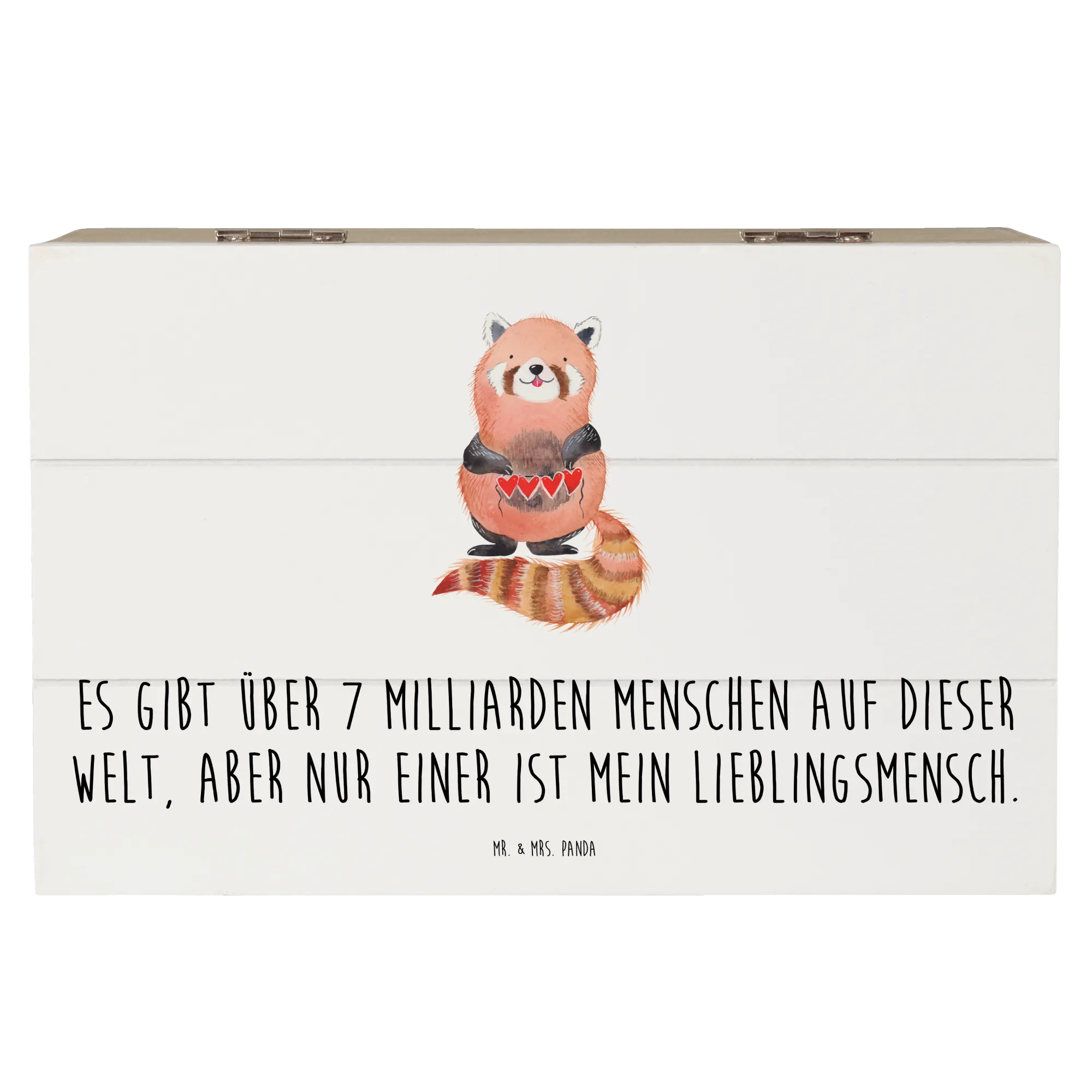 Die Mr. & Mrs. Panda Holzkiste „Roter Panda“ ist nicht nur eine Aufbewahrungsbox Holz, sondern ein kleines Statement voller Liebe und Freude. Auf dem hellen Deckel hält ein niedlicher roter Panda eine Herz-Girlande, begleitet von dem herzerwärmenden Spruch: „Es gibt über 7 Milliarden Menschen auf dieser Welt, aber nur einer ist mein Lieblingsmensch.“ Dieses Motiv macht die Box zur perfekten Geschenkbox für deinen Lieblingsmenschen.