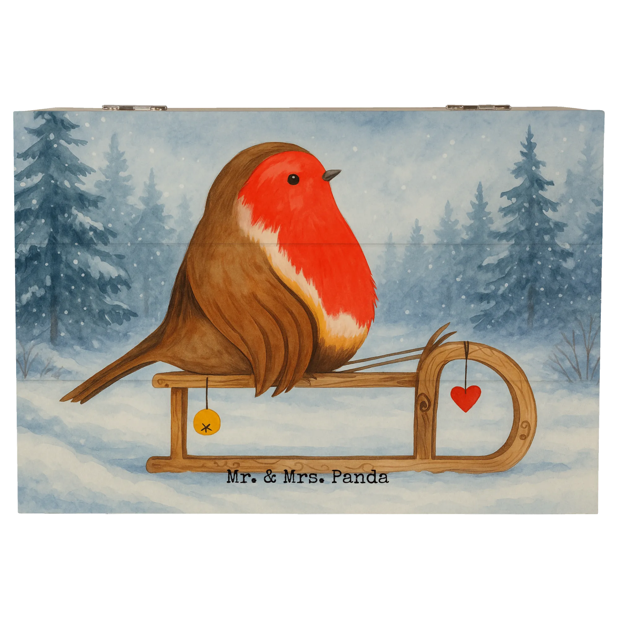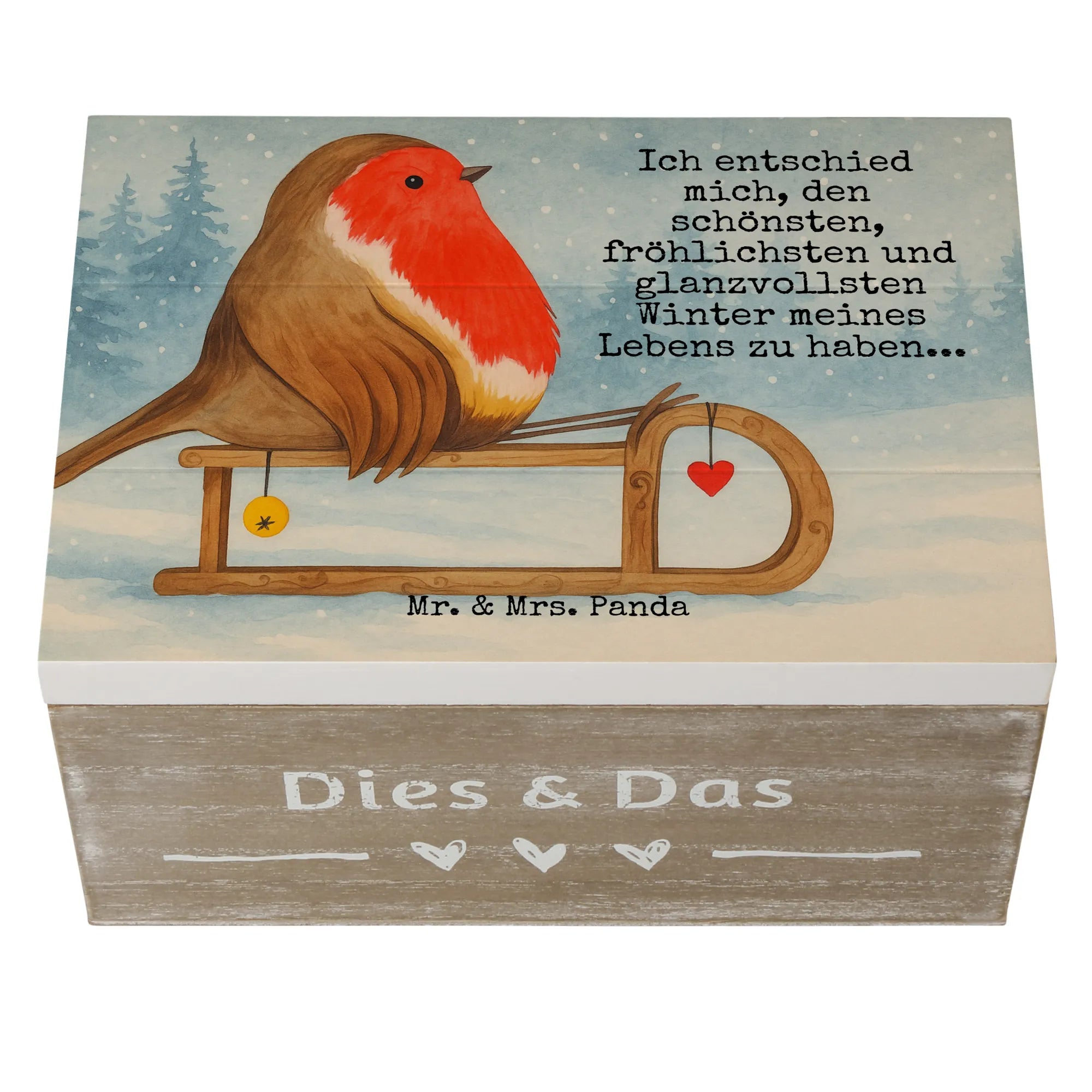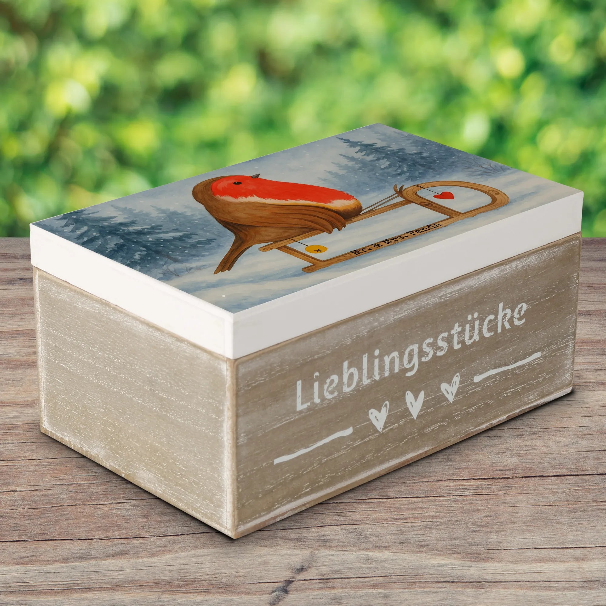Holzkiste Rotkehlchen Schlitten Design - 22 x 15 cm - mit Spruch