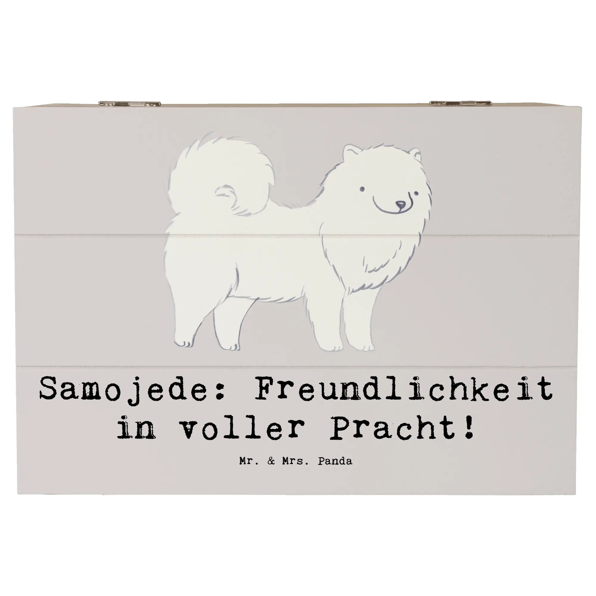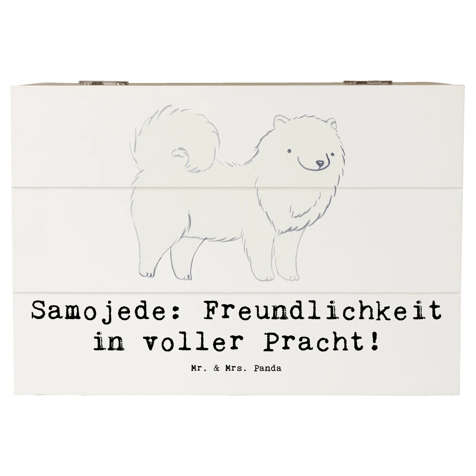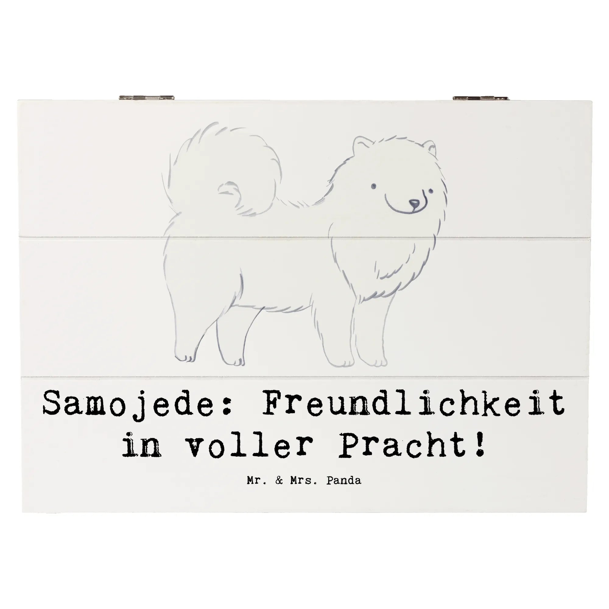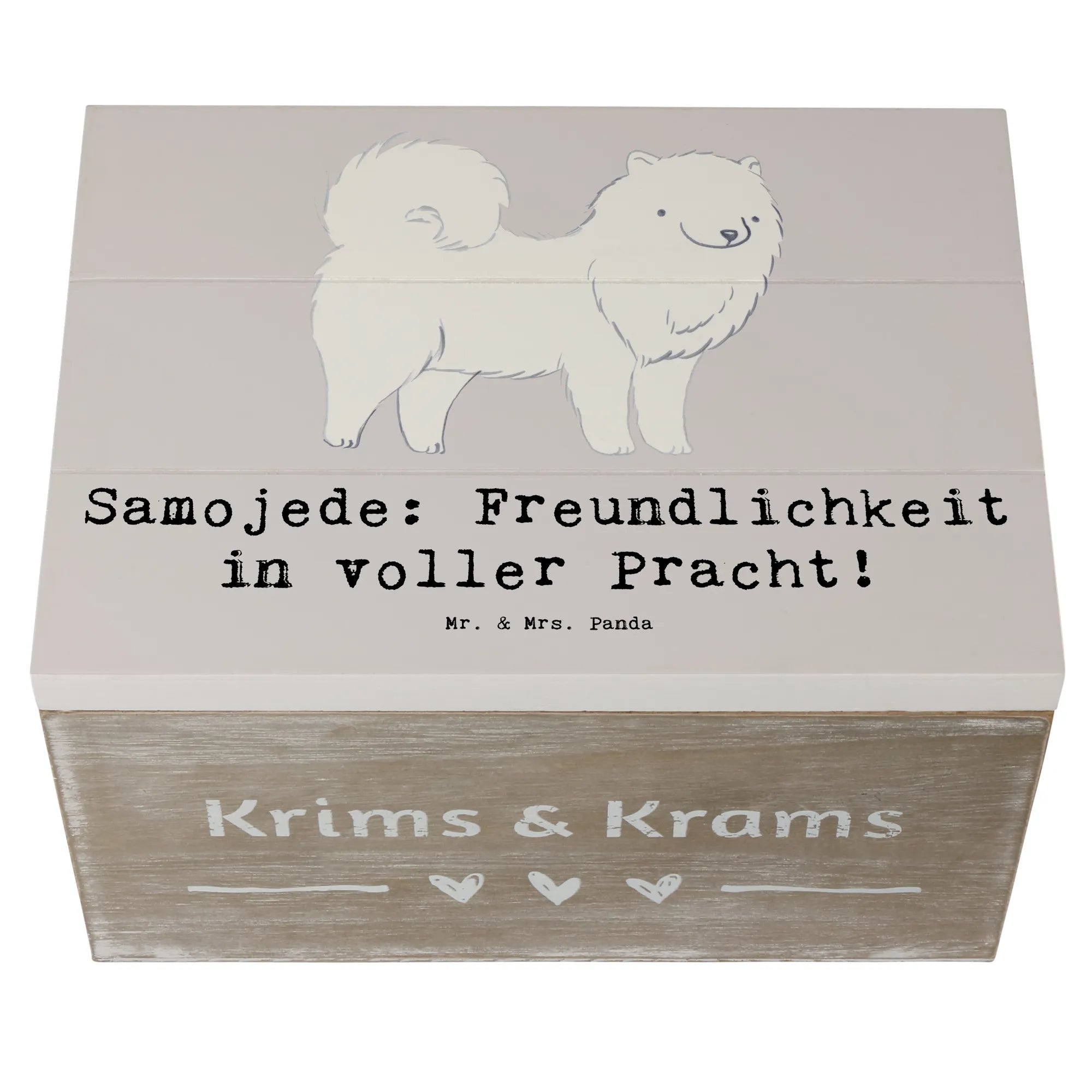 Die wunderschöne Holzkiste von Mr. & Mrs. Panda mit dem charmanten Samojede-Motiv ist das perfekte Geschenk für alle Hundeliebhaber und Hundefans. Mit dem Slogan "Samojede: Freundlichkeit in voller Pracht!" strahlt diese Kiste pure Lebensfreude aus und bietet gleichzeitig Platz für deine wertvollsten Erinnerungen.