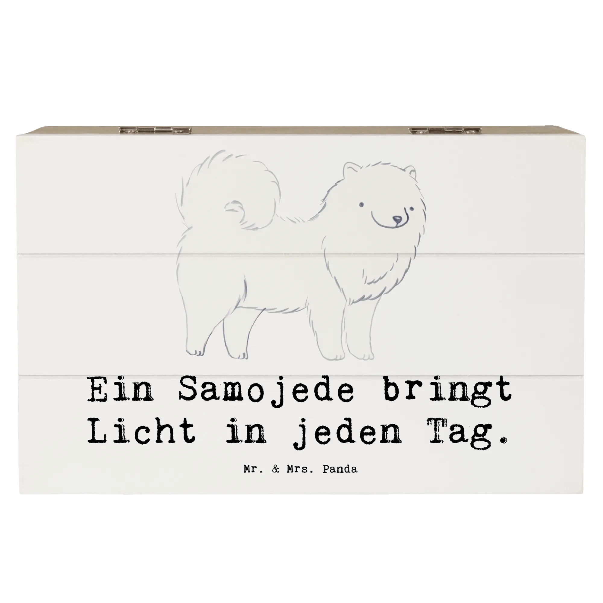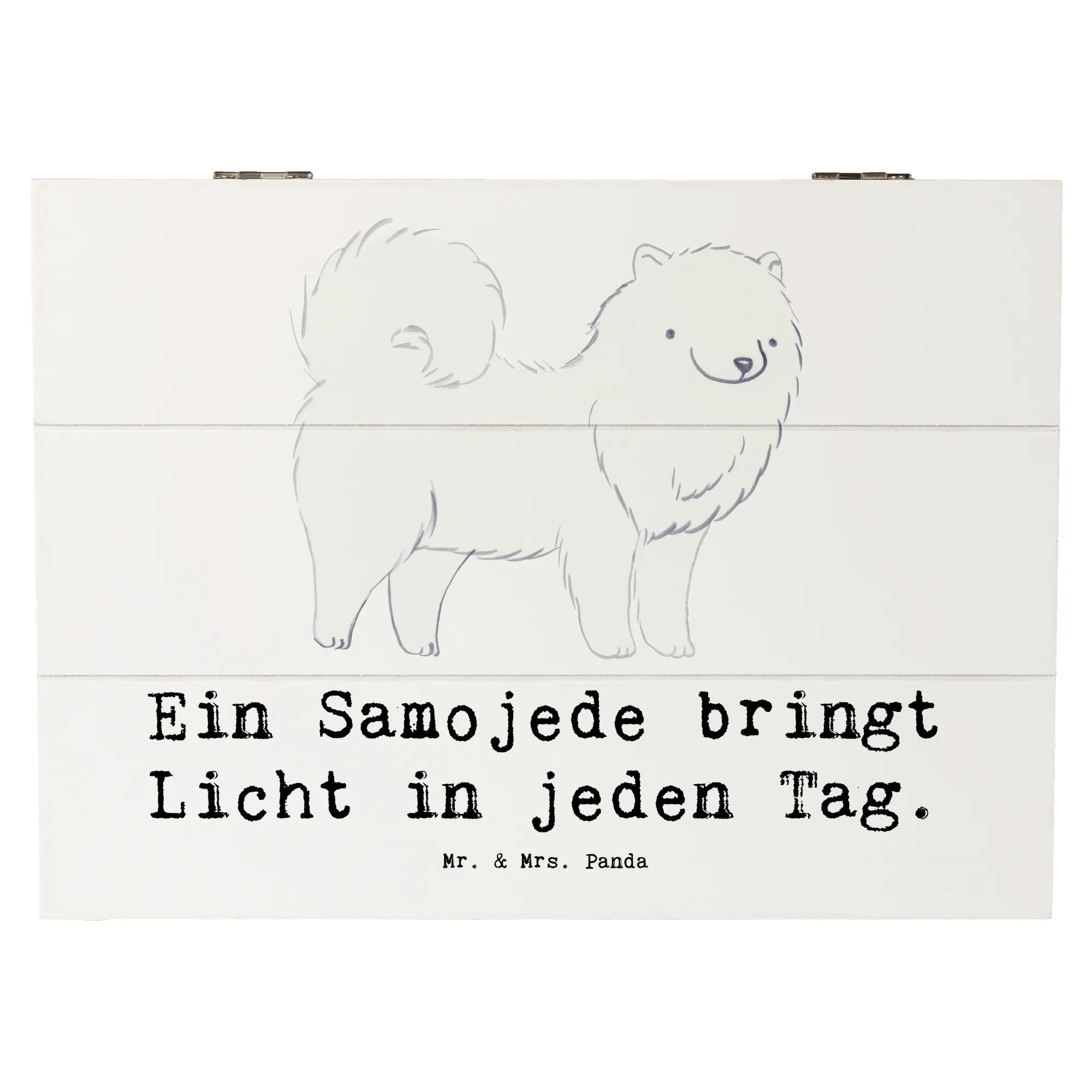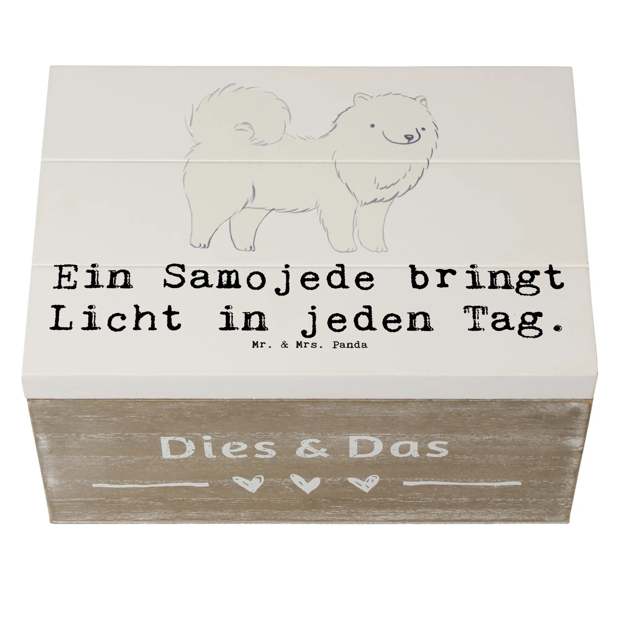 Die wunderschöne Holzkiste von Mr. & Mrs. Panda ist der perfekte Aufbewahrungsort für all Deine kostbaren Erinnerungen! Mit einem zauberhaften Samojede-Motiv und dem herzerwärmenden Slogan "Ein Samojede bringt Licht in jeden Tag." wird diese Kiste schnell zu einem Lieblingsstück in Deinem Zuhause.