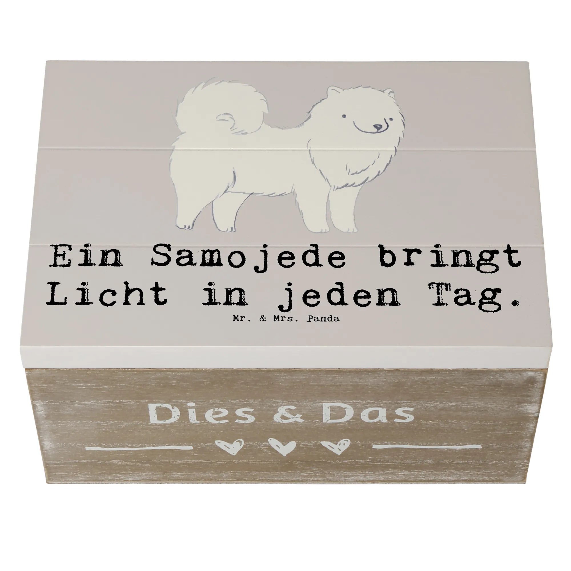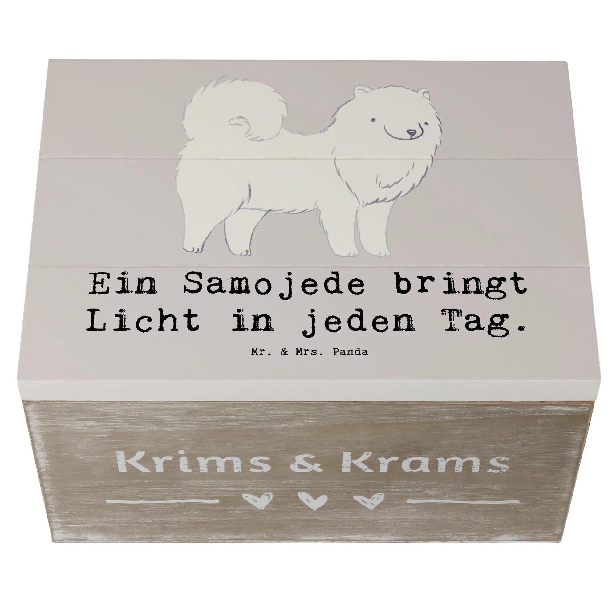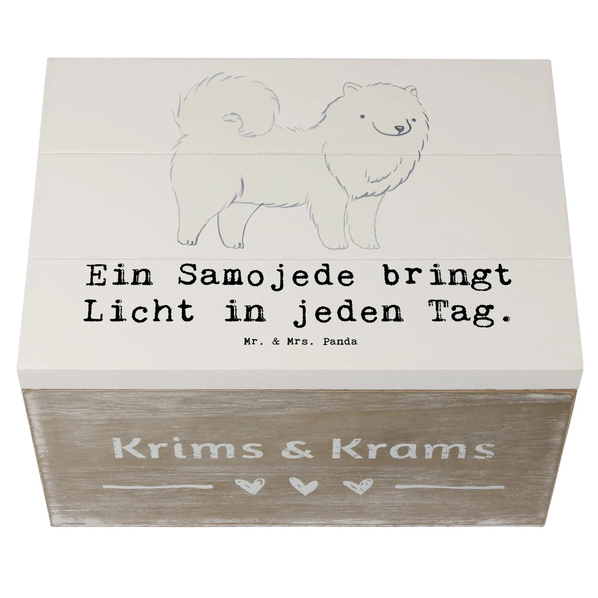 Die wunderschöne Holzkiste von Mr. & Mrs. Panda ist der perfekte Aufbewahrungsort für all Deine kostbaren Erinnerungen! Mit einem zauberhaften Samojede-Motiv und dem herzerwärmenden Slogan "Ein Samojede bringt Licht in jeden Tag." wird diese Kiste schnell zu einem Lieblingsstück in Deinem Zuhause.