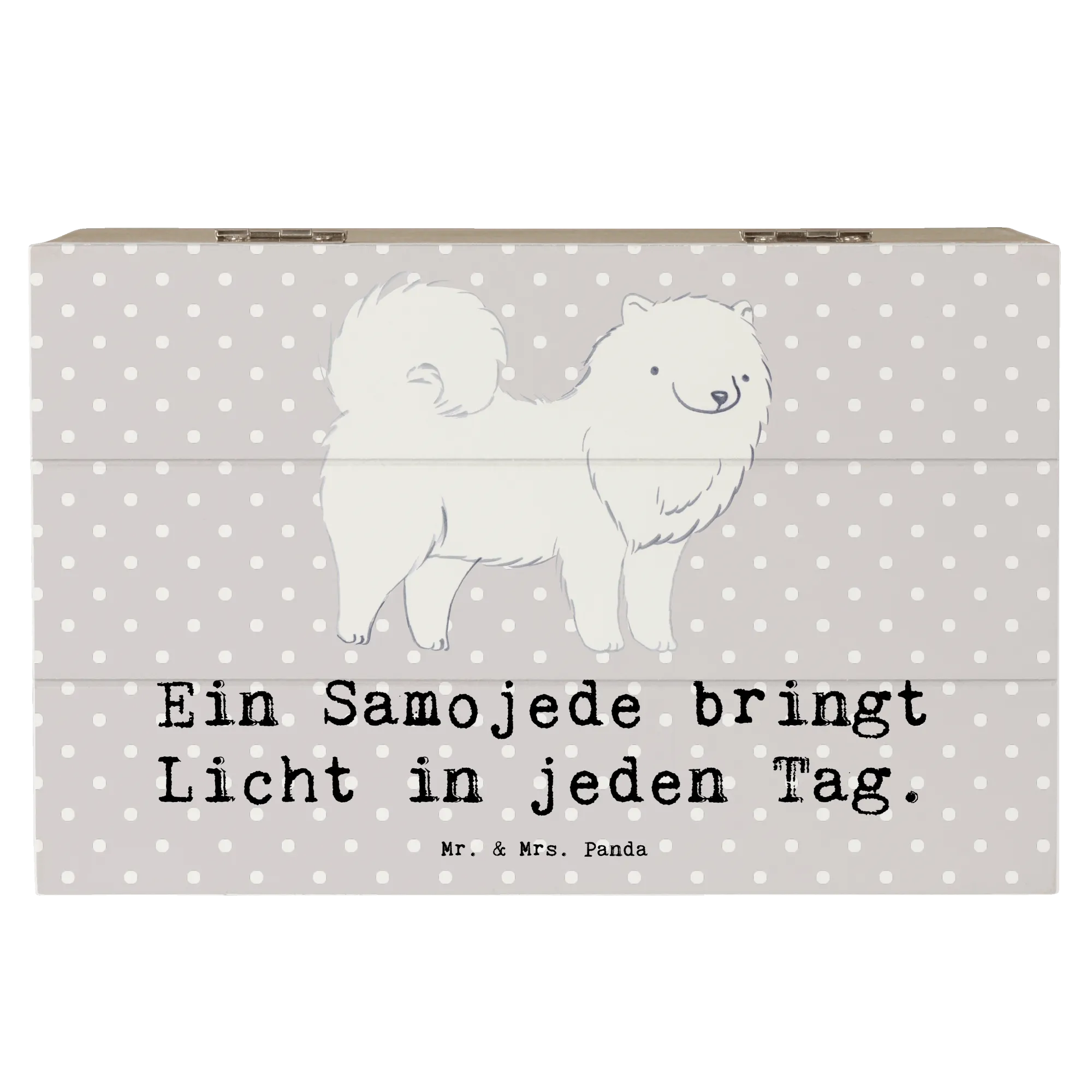 Die wunderschöne Holzkiste von Mr. & Mrs. Panda ist das perfekte Geschenk für jeden Hundefan! Mit einem liebevollen Motiv eines Samojeden und dem Spruch "Ein Samojede bringt Licht in jeden Tag" zaubert diese Kiste ein Lächeln in jedes Gesicht.