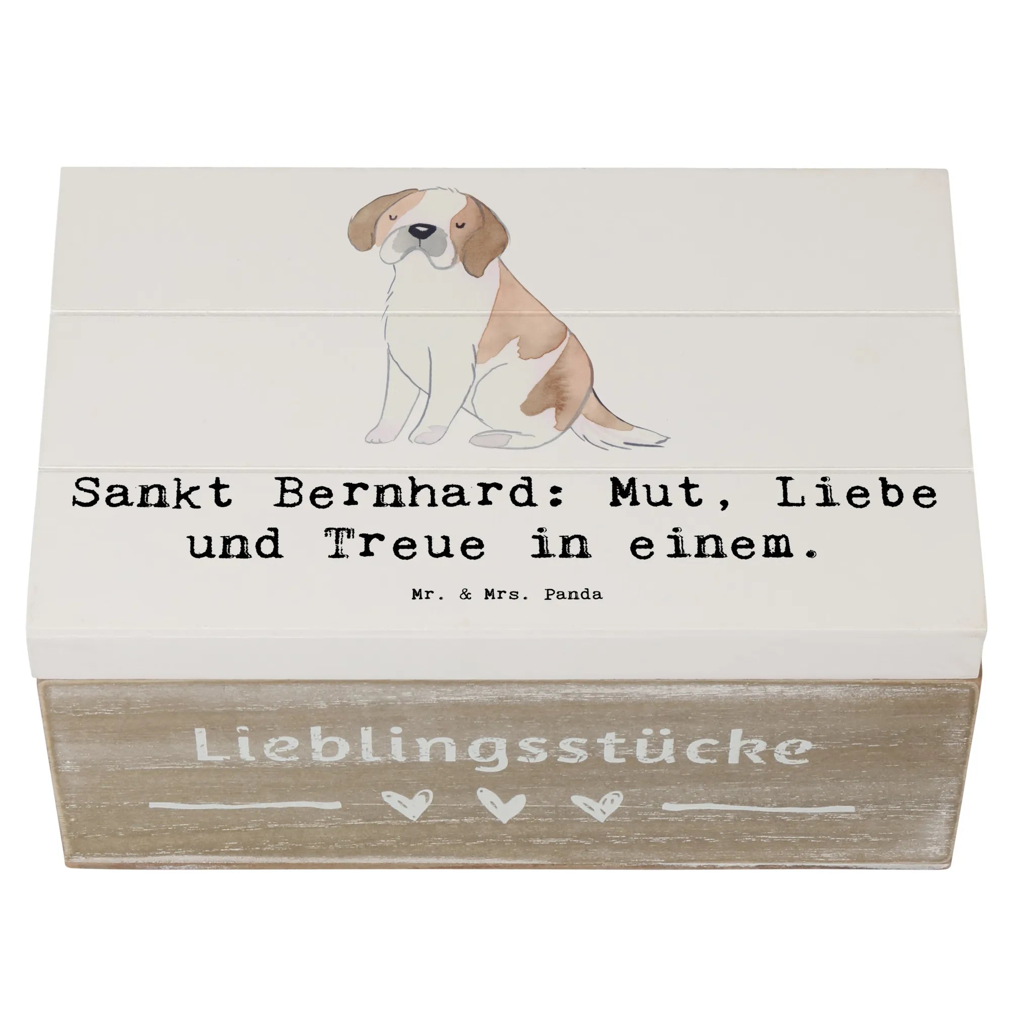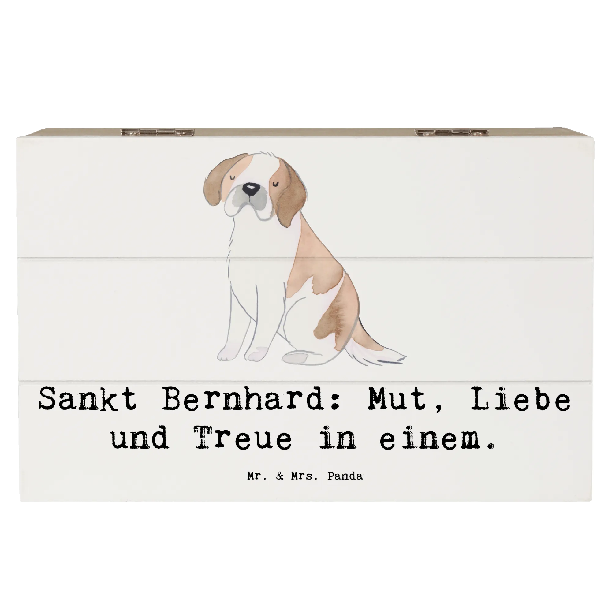 Entdecke die zauberhafte Holzkiste von Mr. & Mrs. Panda mit dem wunderschönen Motiv "Sankt Bernhard - Mut, Liebe und Treue in einem". Diese besondere Kiste eignet sich perfekt als Erinnerungsbox für all deine wertvollen Schätze.