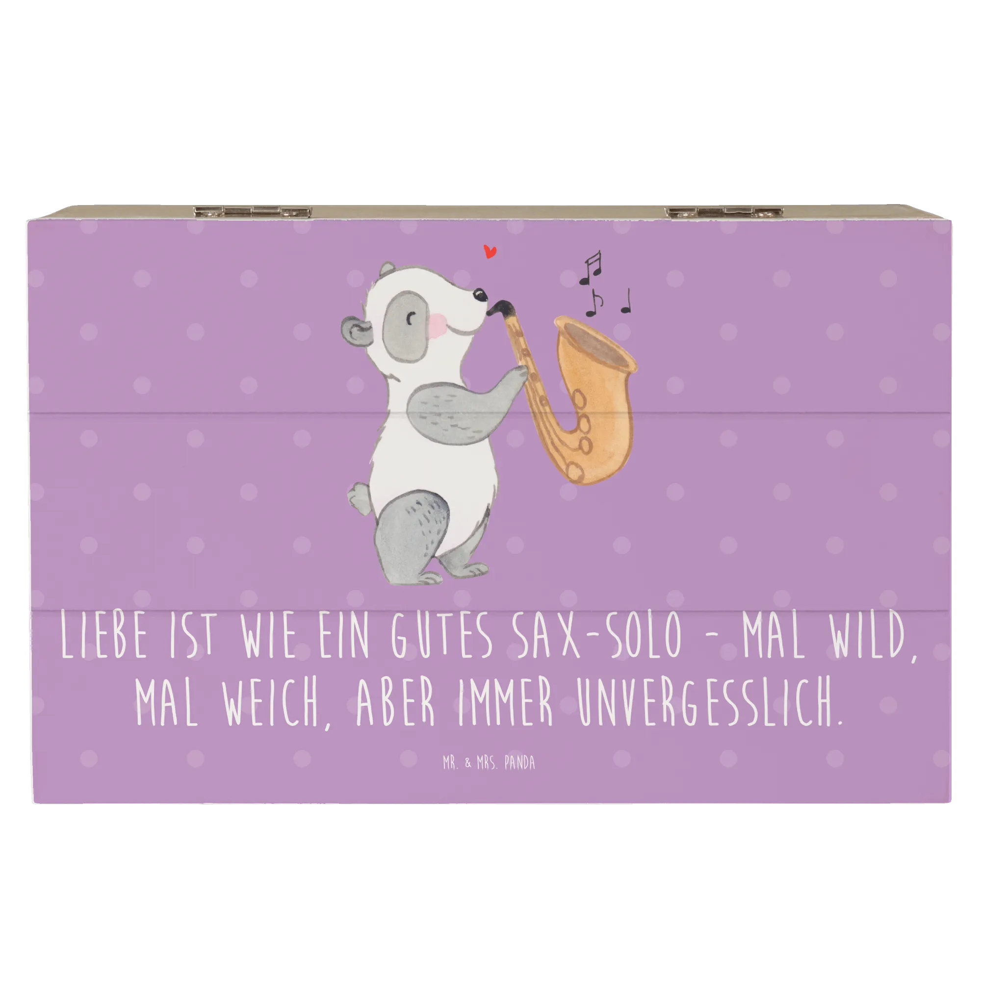 Entdecke die wunderschöne Holzkiste mit dem einzigartigen Saxophon-Motiv von Mr. & Mrs. Panda! Diese Erinnerungskiste ist nicht nur ein stilvoller Aufbewahrungsort für Deine wertvollen Schätze, sondern auch ein ganz besonderes Geschenk für Musikliebhaber und Hobby-Musiker. Sie eignet sich perfekt als Erinnerungsbox für unvergessliche Momente, festliche Anlässe wie Kommunion oder Konfirmation oder sogar als Dekokiste für Deine Lieblingsfotos und -gegenstände.