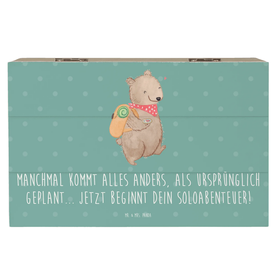Die Kiste hat die perfekten Maße von 220 mm x 150 mm x 120 mm und bietet ausreichend Platz für all die kleinen und großen Erinnerungsstücke. Der eingestellte Spruch "Manchmal kommt alles anders, als ursprünglich geplant... Jetzt beginnt dein Soloabenteuer!" spricht für sich und gibt dir einen positiven Ausblick auf alles, was noch kommen mag.