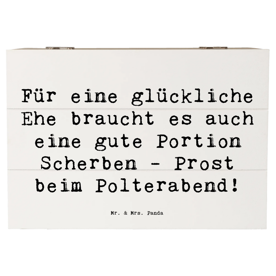 Diese wunderschöne Holzkiste von Mr. & Mrs. Panda ist das perfekte Geschenk zur Hochzeit, speziell für den Polterabend! Sie ist nicht nur ein dekoratives Highlight, sondern auch eine praktische Aufbewahrung für all die Erinnerungen und Schätze, die diesem besonderen Tag angemessen sind.