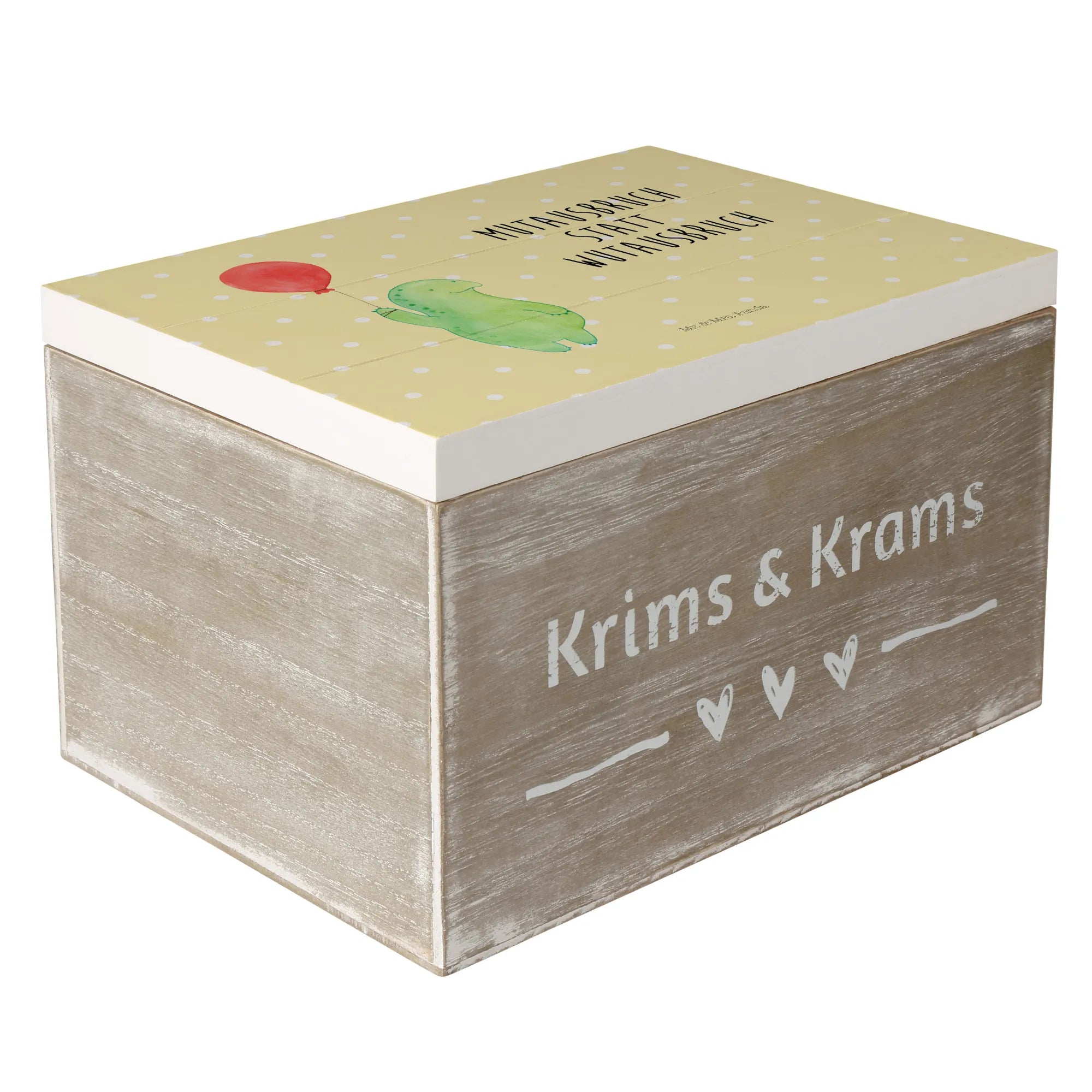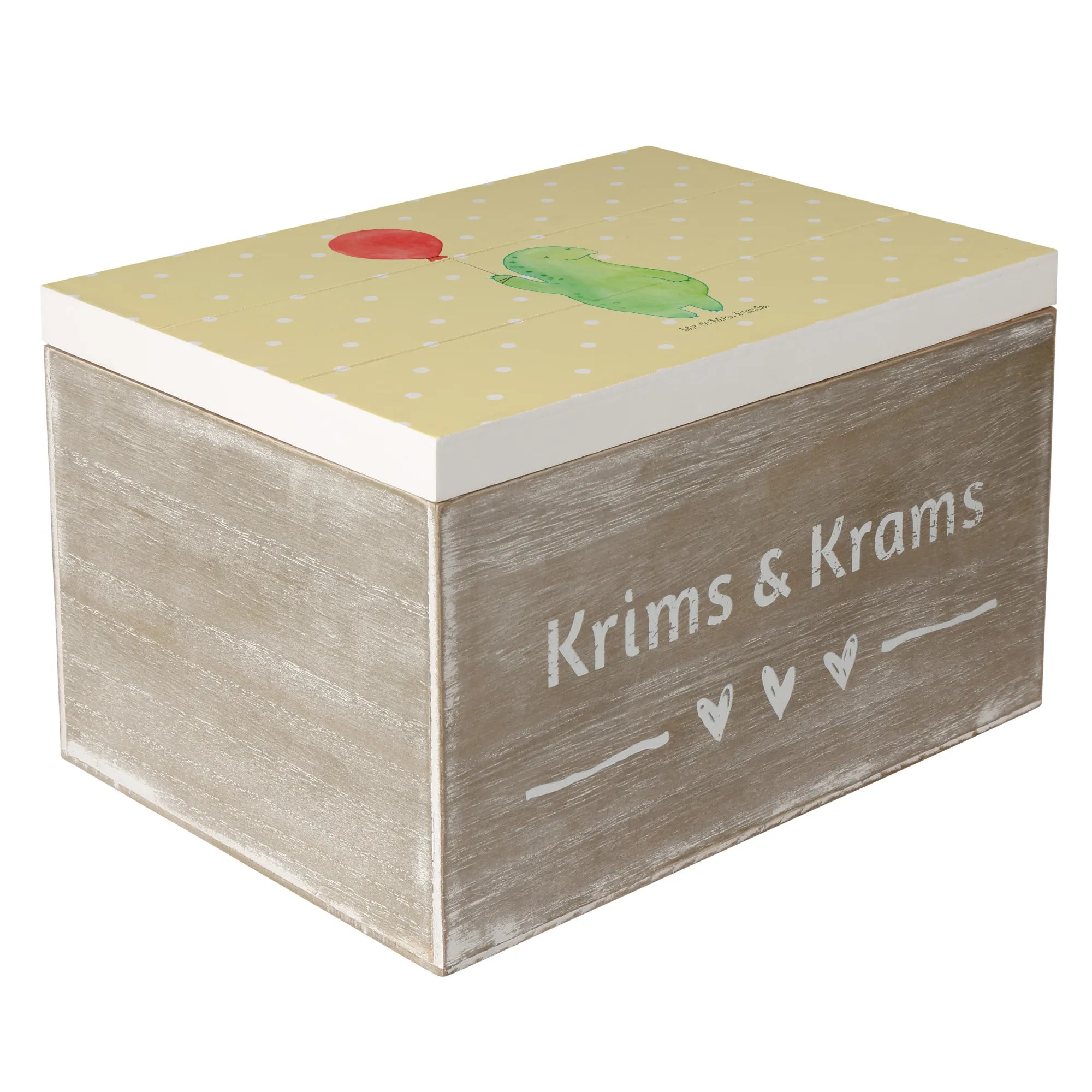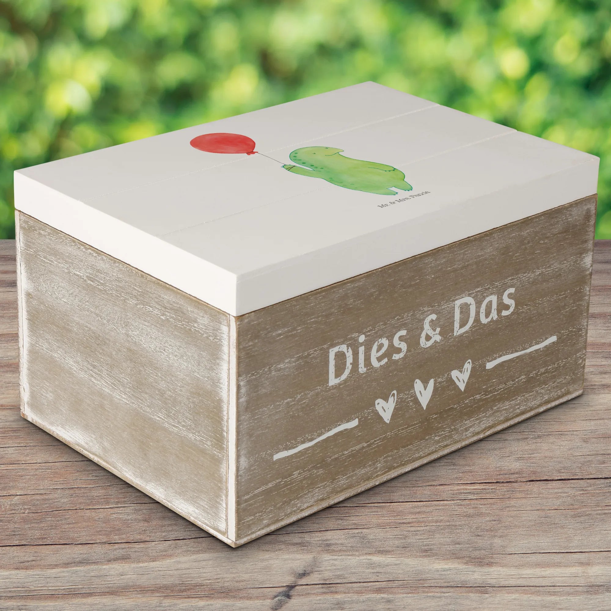 Entdecke die zauberhafte Holzkiste Schildkröte Luftballon von Mr. & Mrs. Panda! Diese wunderschöne Holzkiste ist nicht nur ein praktischer Aufbewahrungsort, sondern auch ein liebevolles Geschenk für jeden Anlass. Freundschaften, Geburtstage oder einfach nur, um jemandem eine Freude zu machen – diese Kiste passt perfekt zu all Deinen besonderen Momenten.