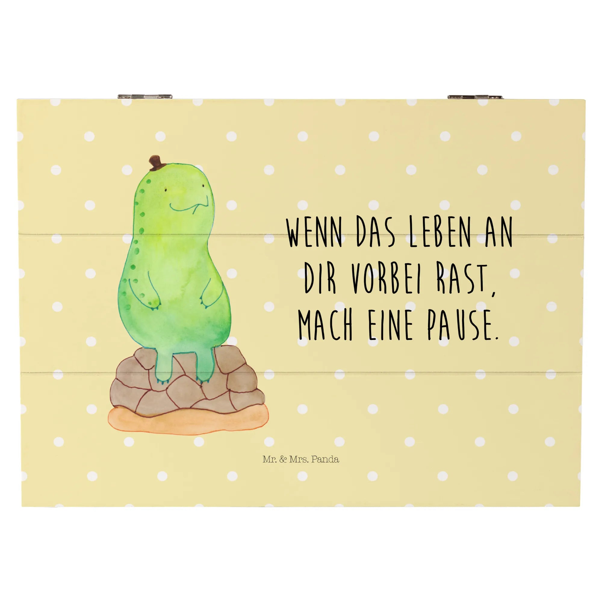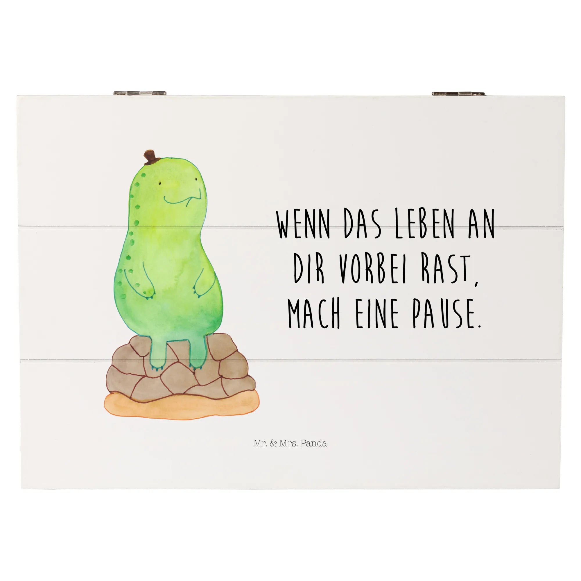 Die wundervolle Holzkiste 'Schildkröte pausiert' von Mr. & Mrs. Panda ist nicht nur ein nachhaltiges Geschenk, sondern auch ein wundervoller Ort, um die wertvollsten Erinnerungen zu bewahren.