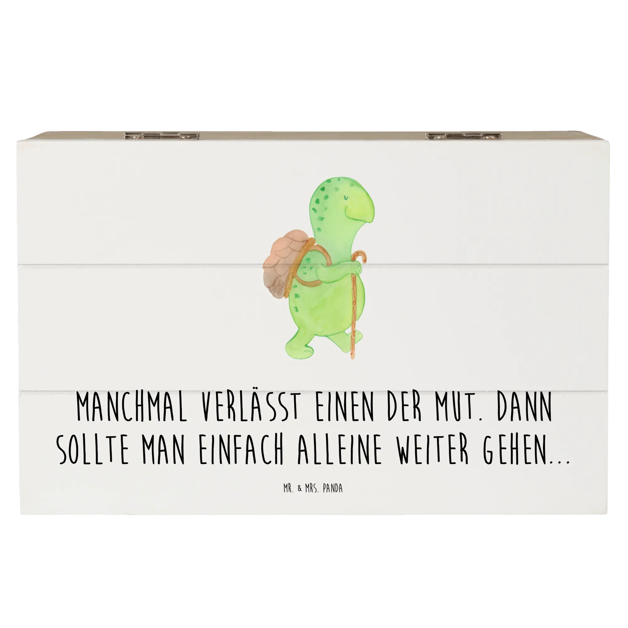 Holzkiste Schildkröte Wanderer - 22 x 15 cm - mit Spruch - Weiß