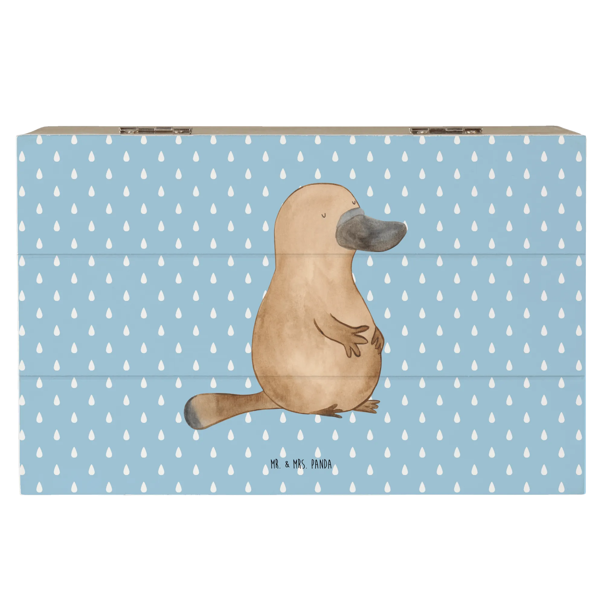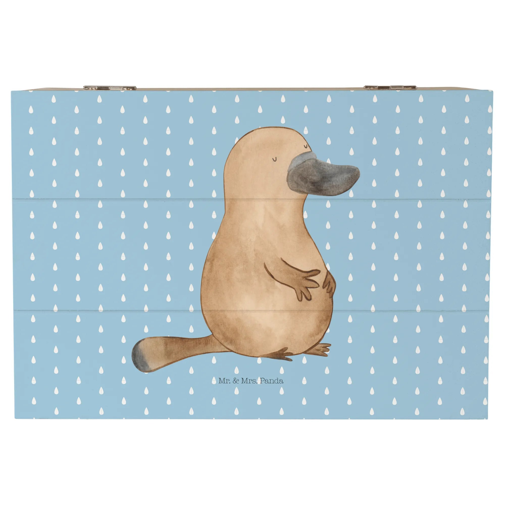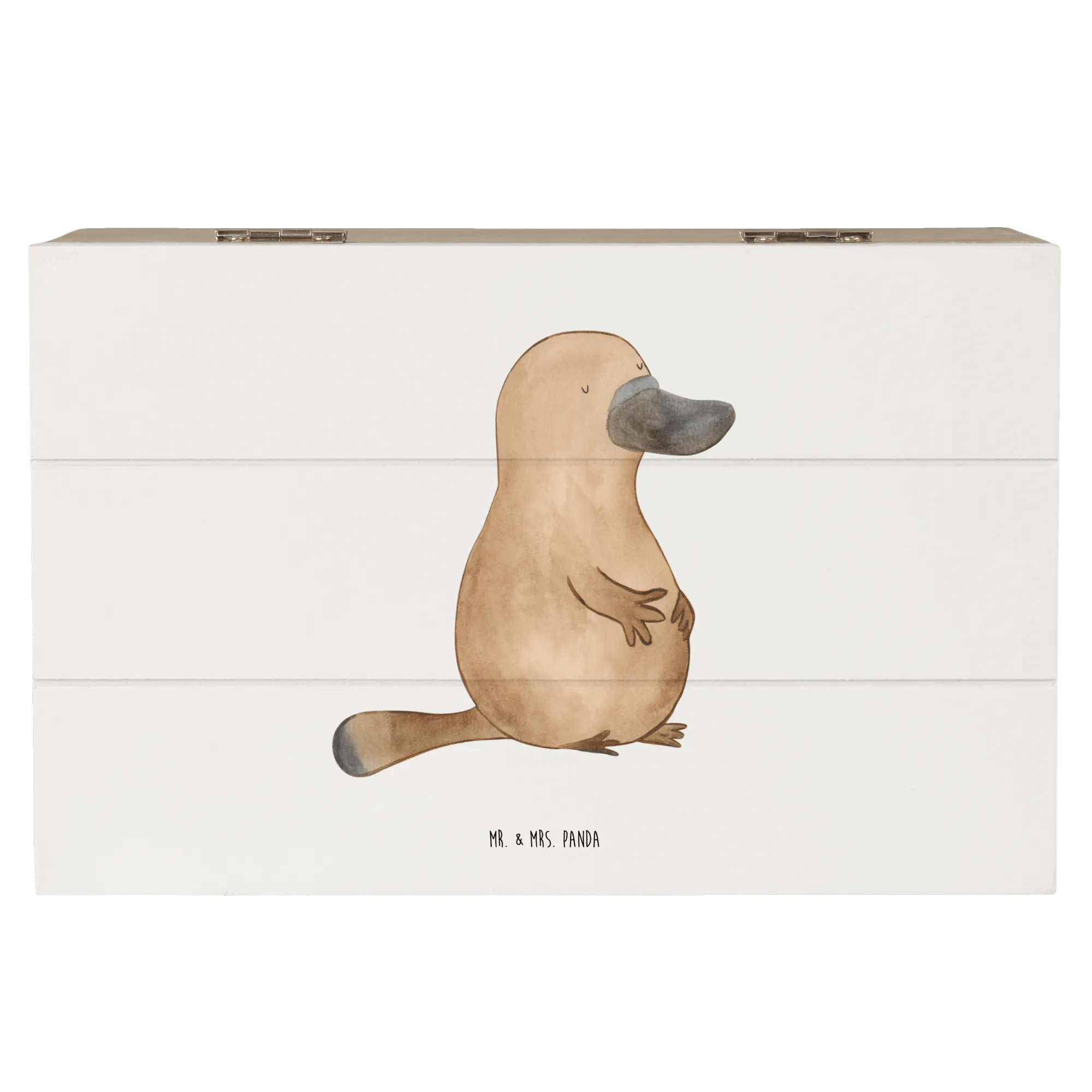 Entdecke die wunderschöne Holzkiste mit dem Motiv des mutigen Schnabeltiers aus der zauberhaften Meerestiere-Kollektion von Mr. & Mrs. Panda! Diese Aufbewahrungsbox ist nicht nur eine praktische Lösung, um all deine Schätze stilvoll zu verstauen, sondern auch ein echter Hingucker in jedem Raum.