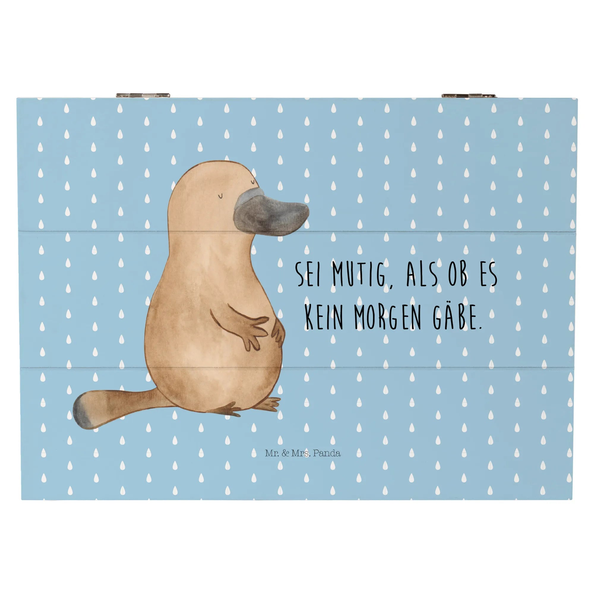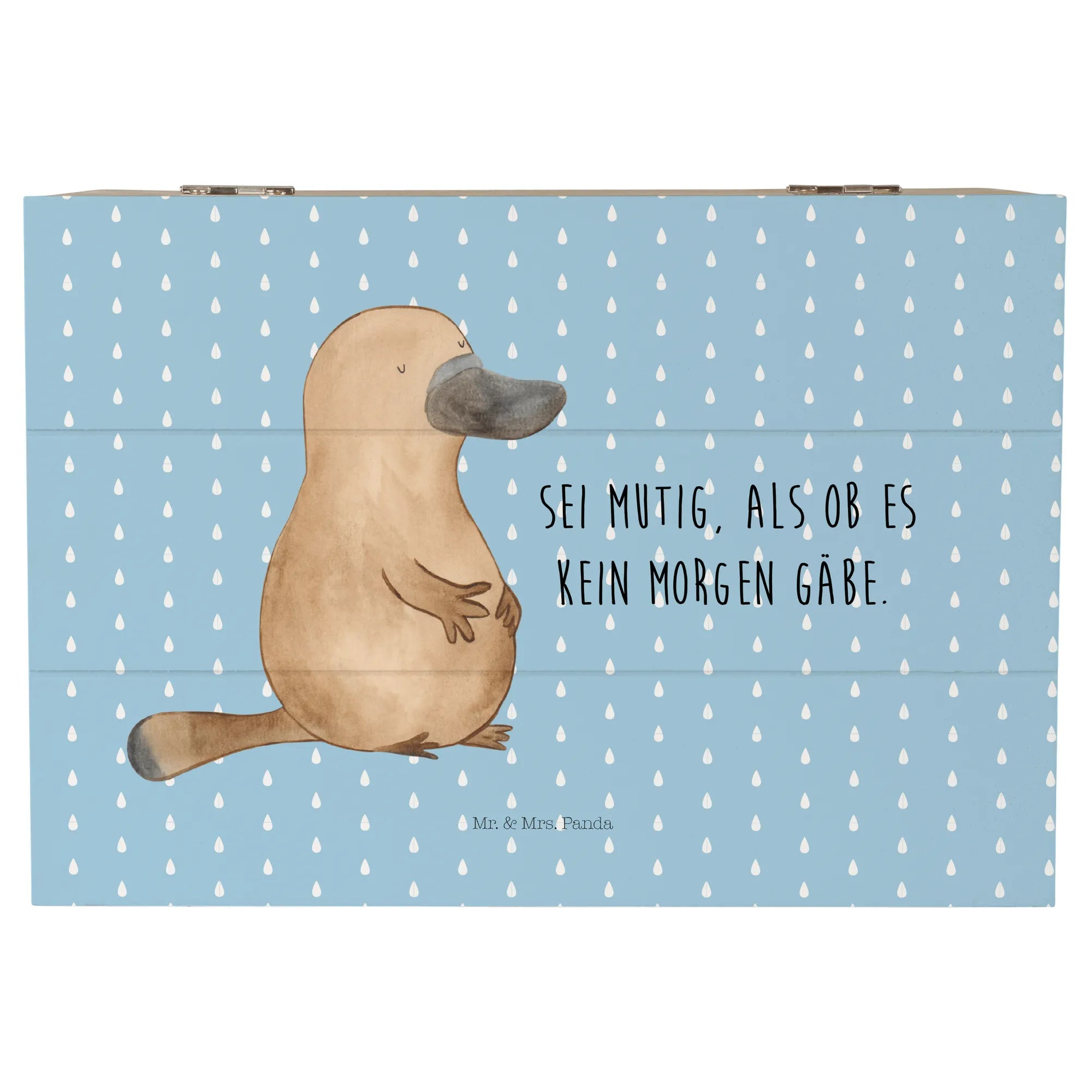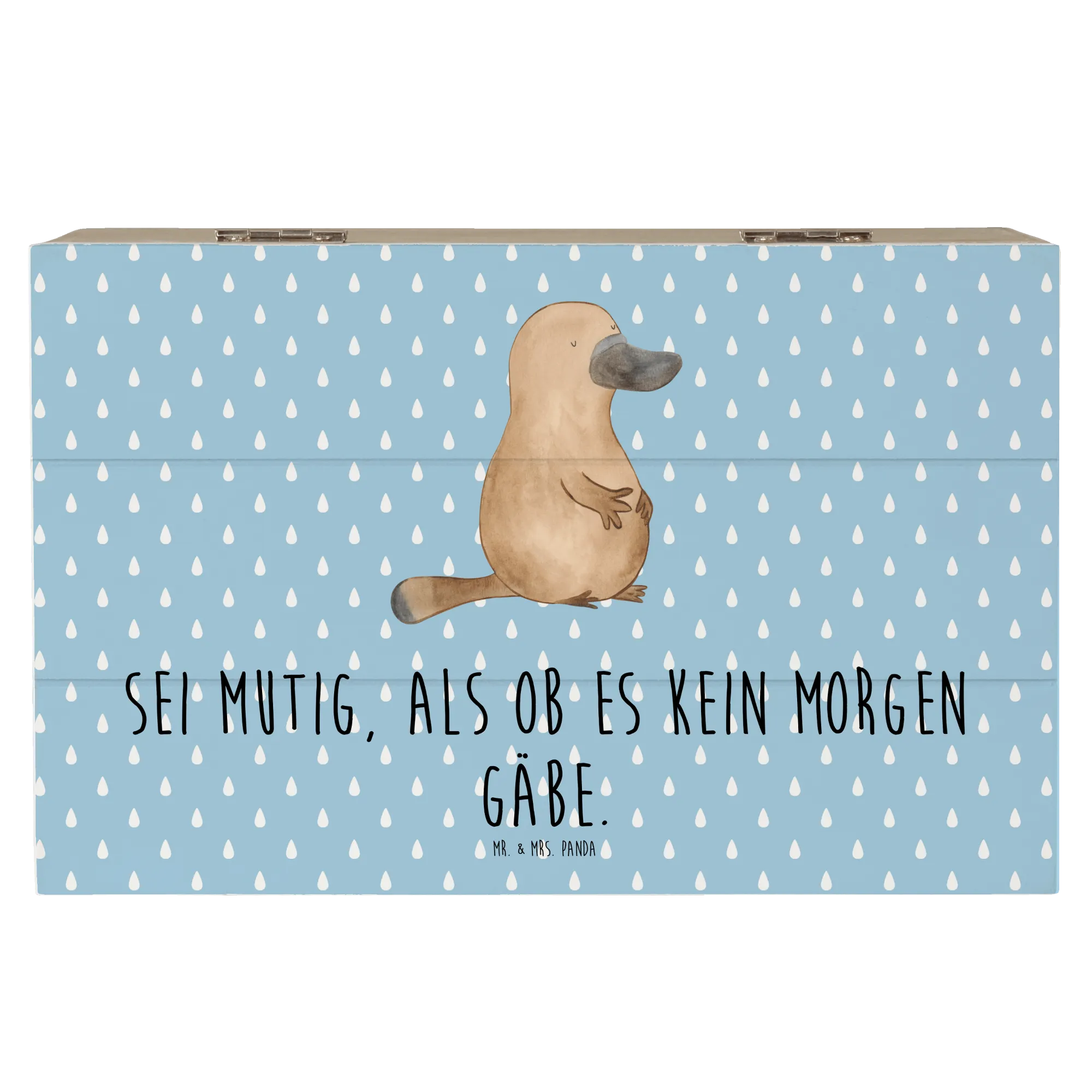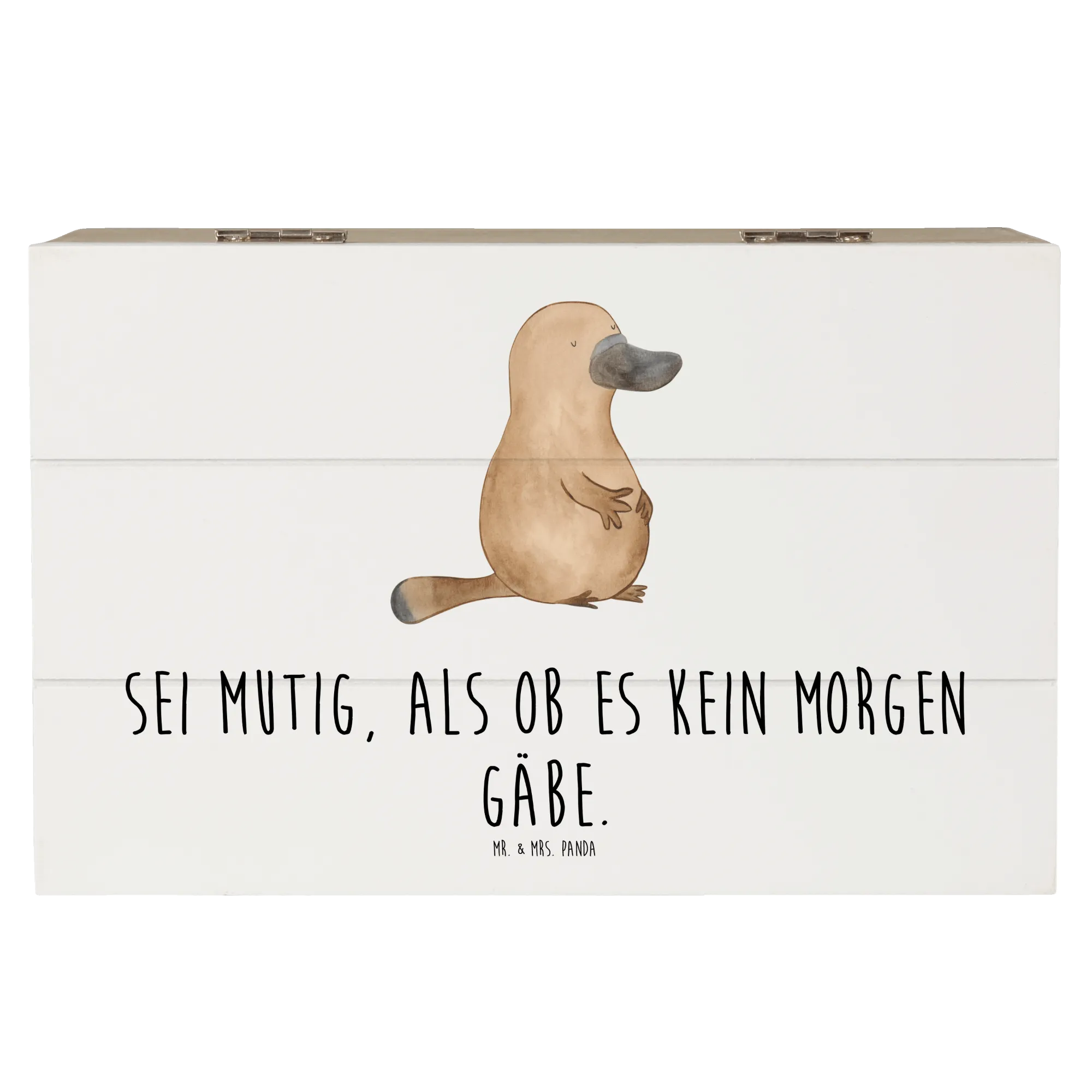 Mr. & Mrs. Panda Holzkiste „Schnabeltier mutig“ – eine liebevoll gestaltete Aufbewahrungsbox aus der Kollektion Meerestiere. Das freundliche Schnabeltier Konrad und der inspirierende Spruch „Sei mutig, als ob es kein Morgen gäbe.“ verleihen jedem Raum Wärme und Motivation.