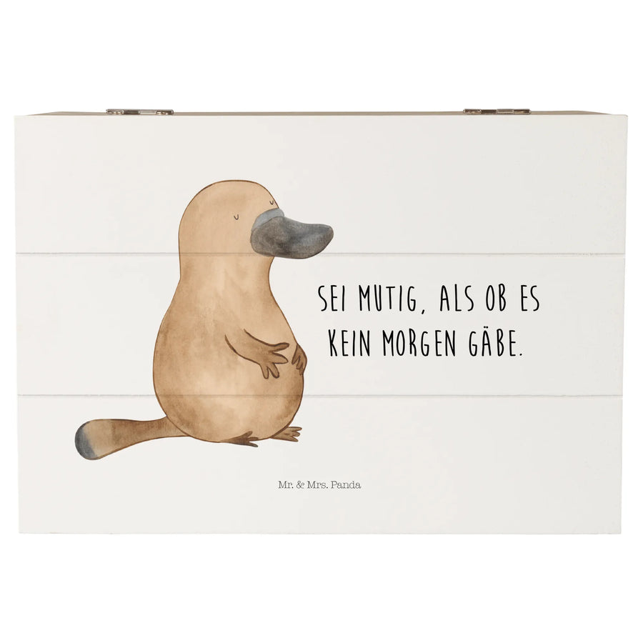 Holzkiste Schnabeltier Mut - 22 x 15 cm - mit Spruch - Weiß