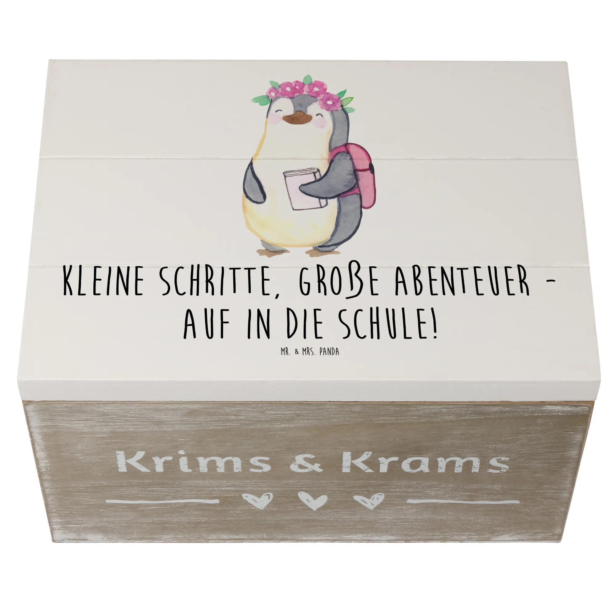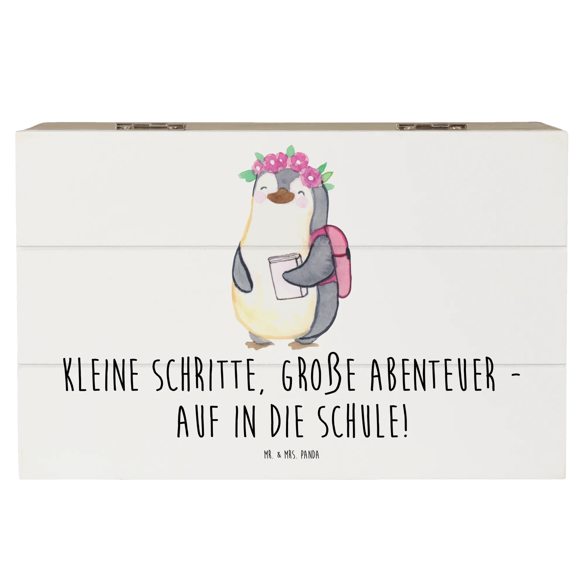 Entdecke die wundervolle Holzkiste von Mr. & Mrs. Panda, die perfekt für den Schulanfang geeignet ist! Mit dem inspirierenden Slogan "Kleine Schritte, große Abenteuer - auf in die Schule!" ist diese Erinnerungskiste aus stabiler Premium Hartfaser nicht nur wunderschön, sondern auch funktional.