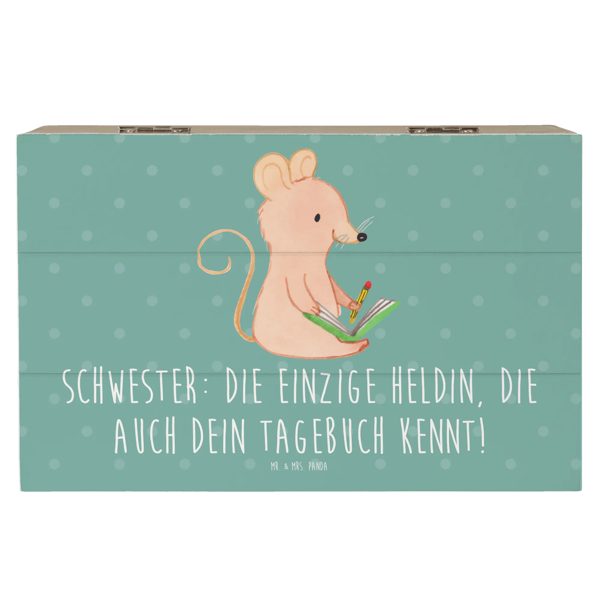 Die wunderschöne Holzkiste von Mr. & Mrs. Panda ist das perfekte Geschenk für eine Schwester, die dir am Herzen liegt! Diese zauberhafte Kiste ist mehr als nur ein Aufbewahrungsort - sie ist ein Ort voller Erinnerungen und Schätze. Mit dem liebevollen Motiv 'Schwester: Die einzige Heldin, die auch dein Tagebuch kennt!' wird diese Kiste zu einem romantischen Andenken, das die besondere Verbindung zwischen Geschwistern feiert.