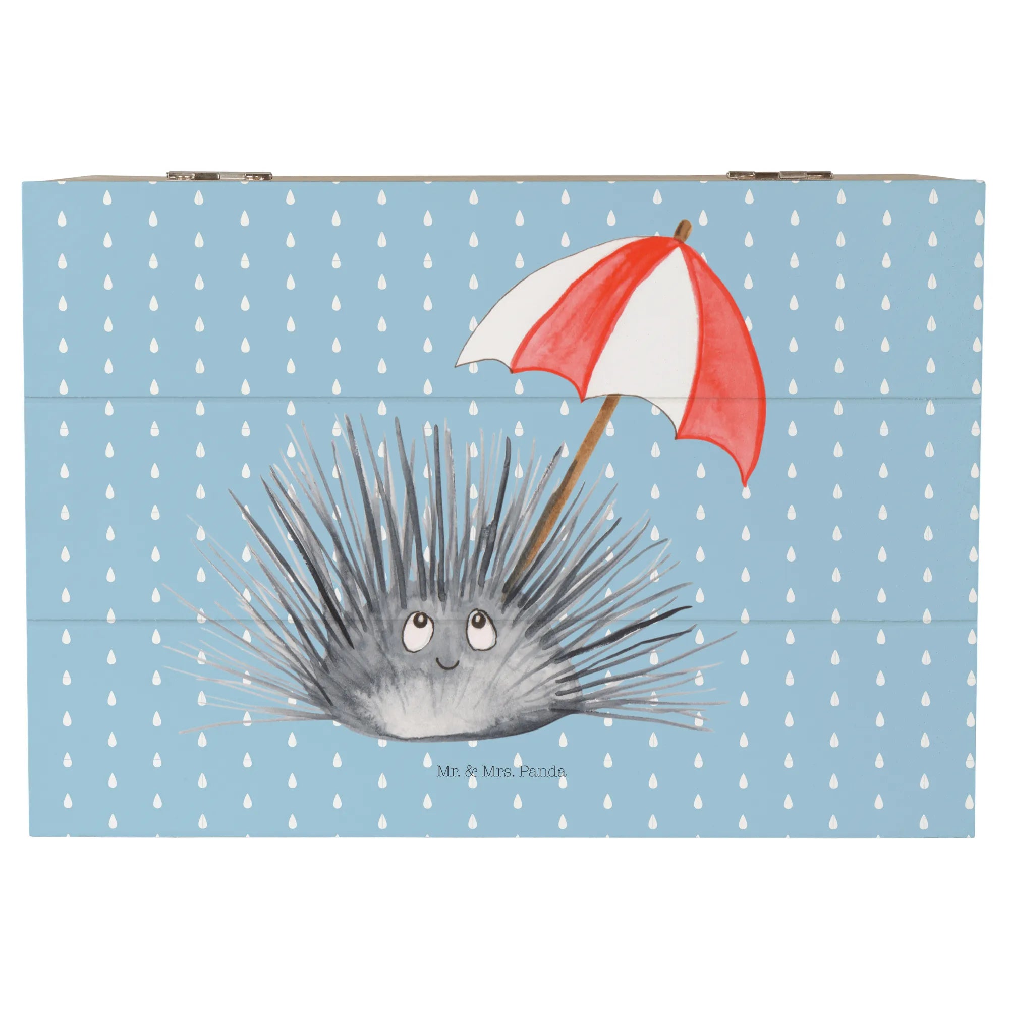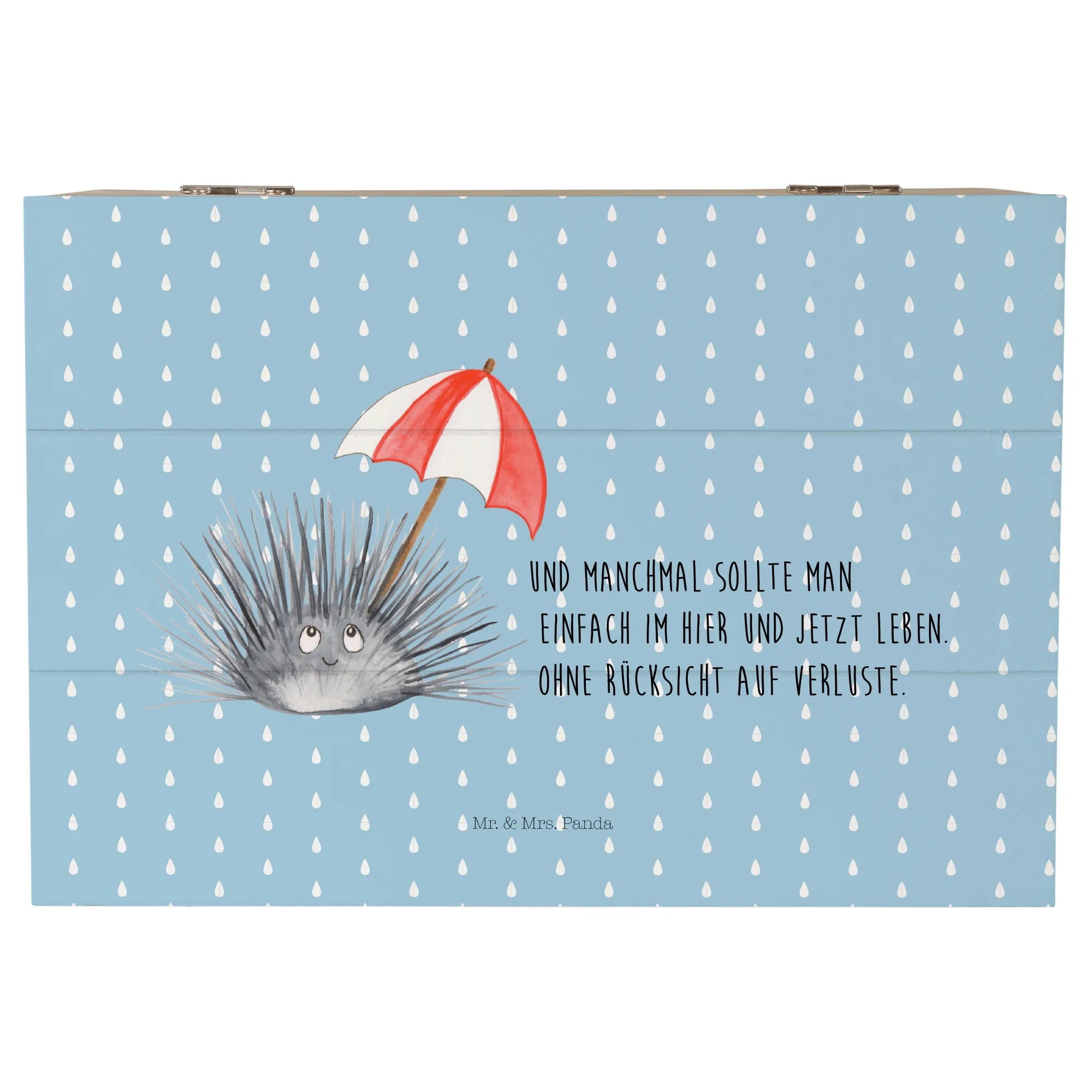 Die wunderschöne Holzkiste von Mr. & Mrs. Panda, bedruckt mit dem niedlichen Motiv eines Seeigels, ist das perfekte Geschenk für alle, die das Meer und seine Wunder lieben.