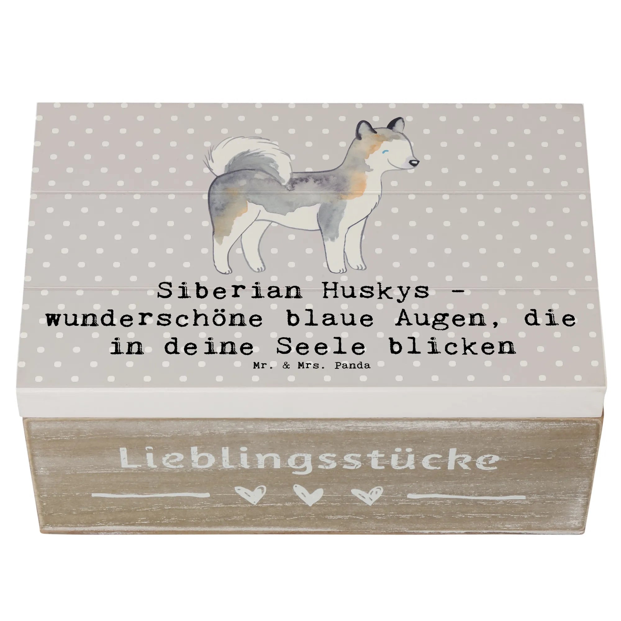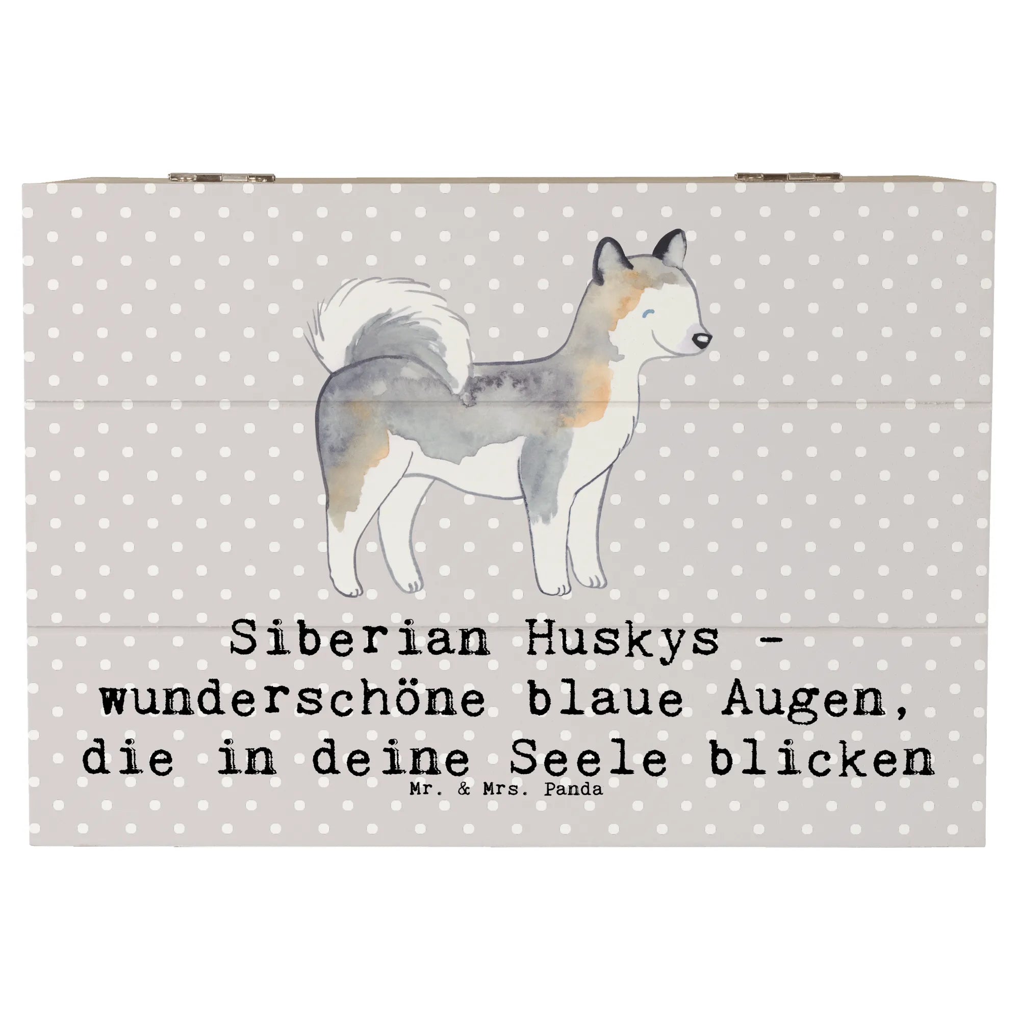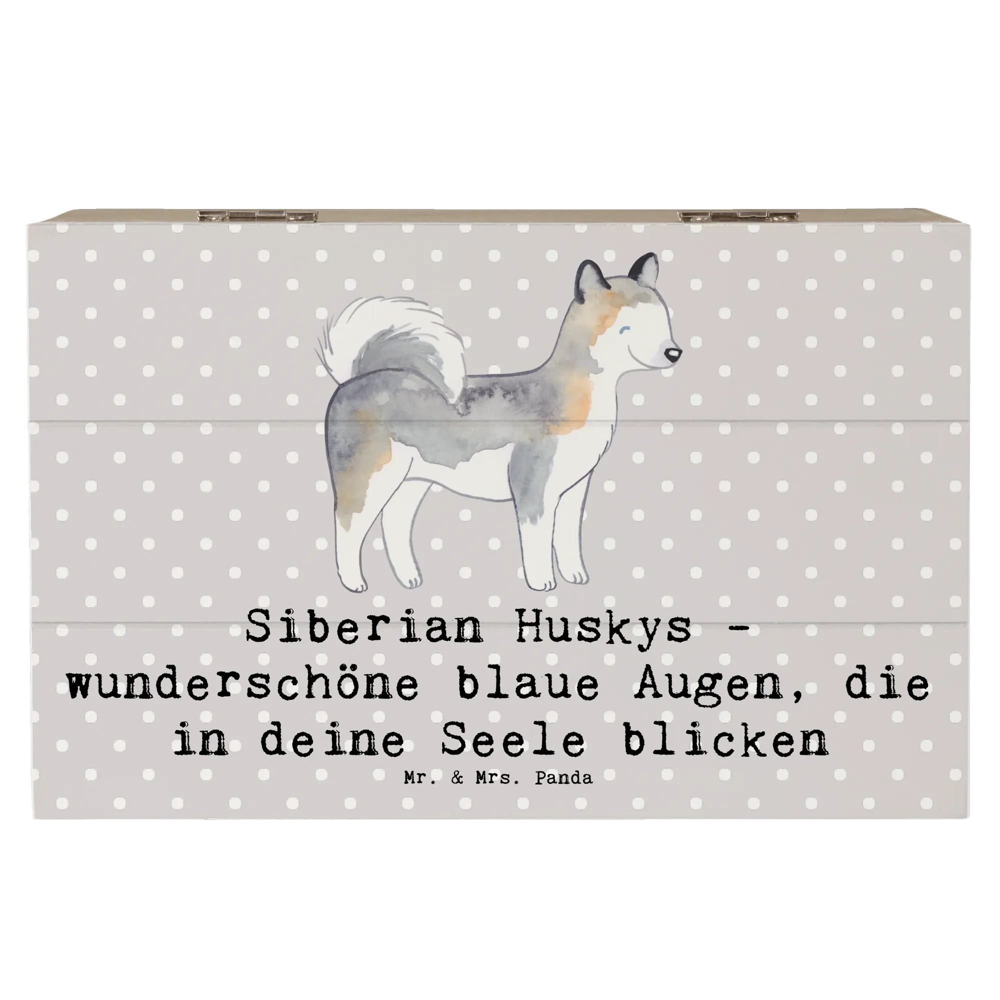 Holzkiste Siberian Husky Augenzauber - 22 x 15 cm - Grau Pastell