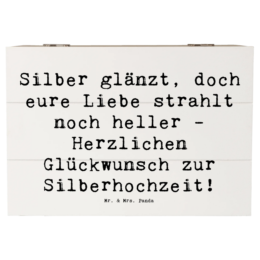 Entdecke die wunderschöne Holzkiste 25. Hochzeitstag Silberne Hochzeit von Mr. & Mrs. Panda! Diese zauberhafte Erinnerungskiste ist nicht nur ein stilvolles Accessoire, sondern auch ein besonderer Aufbewahrungsort für all deine wertvollen Schätze und Erinnerungen.