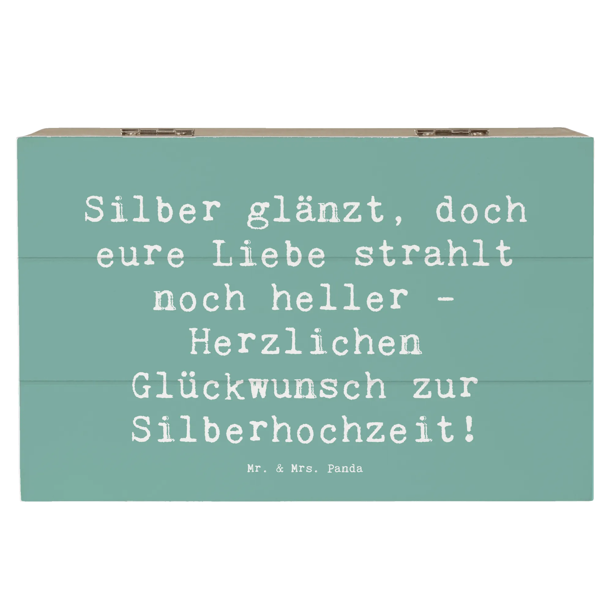 Die wunderschöne Holzkiste von Mr. & Mrs. Panda ist ein absolut perfektes Geschenk für den 25. Hochzeitstag, die Silberne Hochzeit! Mit dem liebevollen Spruch "Silber glänzt, doch eure Liebe strahlt noch heller - Herzlichen Glückwunsch zur Silberhochzeit!" bringt diese Erinnerungsbox eine ganz besondere Note zu diesem festlichen Anlass.
