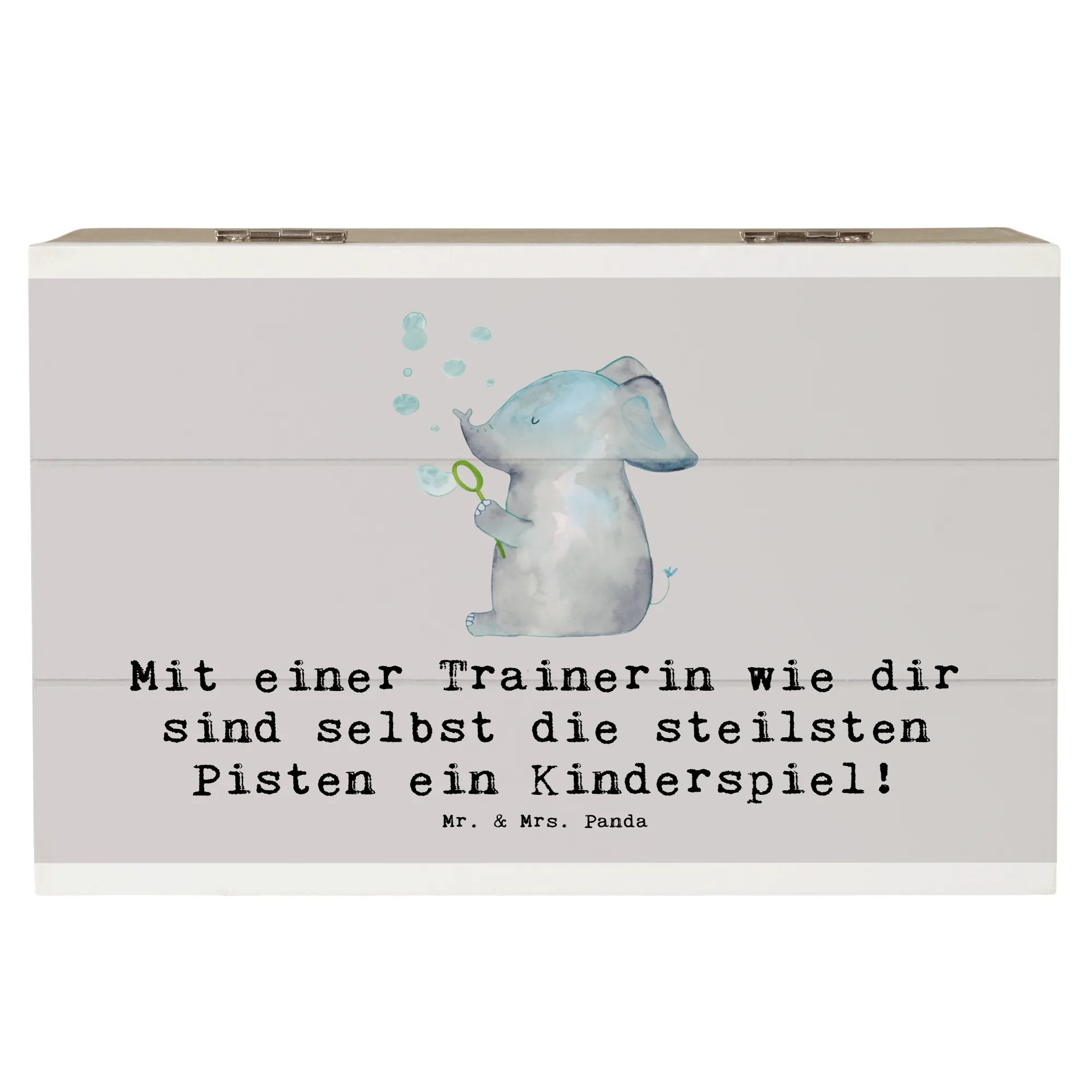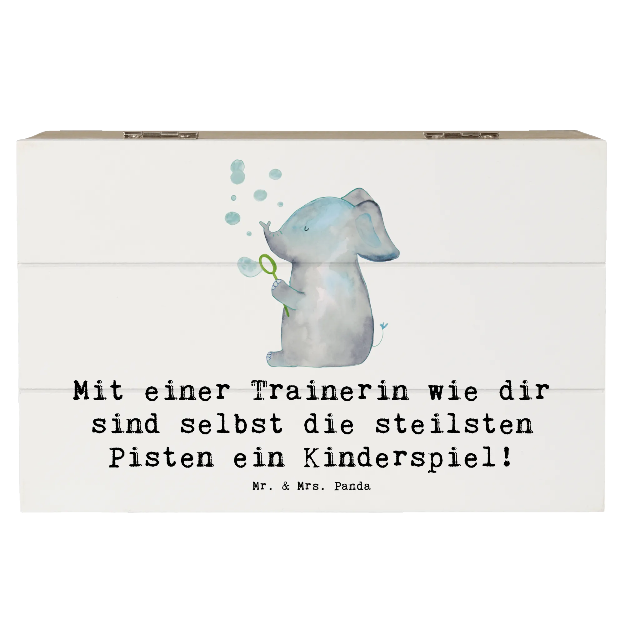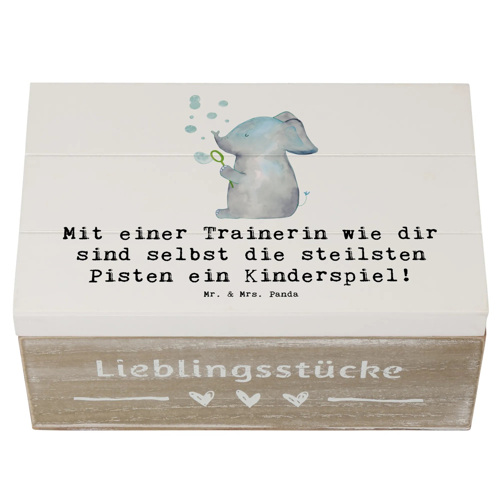 Die Holzkiste Skifahren Trainerin von Mr. & Mrs. Panda ist das perfekte Geschenk für deine Trainerin! Mit dem liebevollen Slogan "Mit einer Trainerin wie dir sind selbst die steilsten Pisten ein Kinderspiel!" zeigt diese Kiste nicht nur deine Anerkennung, sondern bietet gleichzeitig einen wunderbaren Platz für die Erinnerungen und Schätze deiner Trainerin.