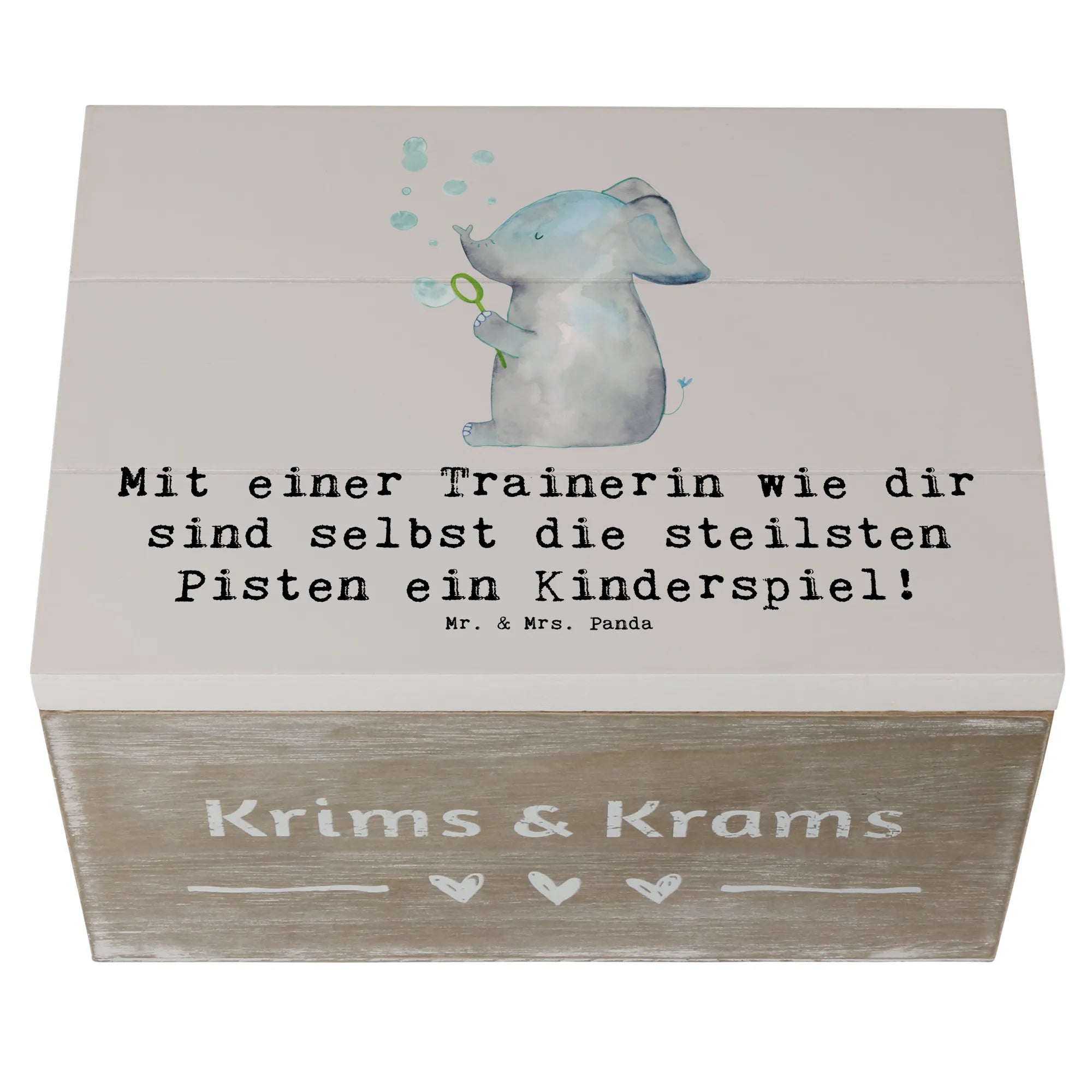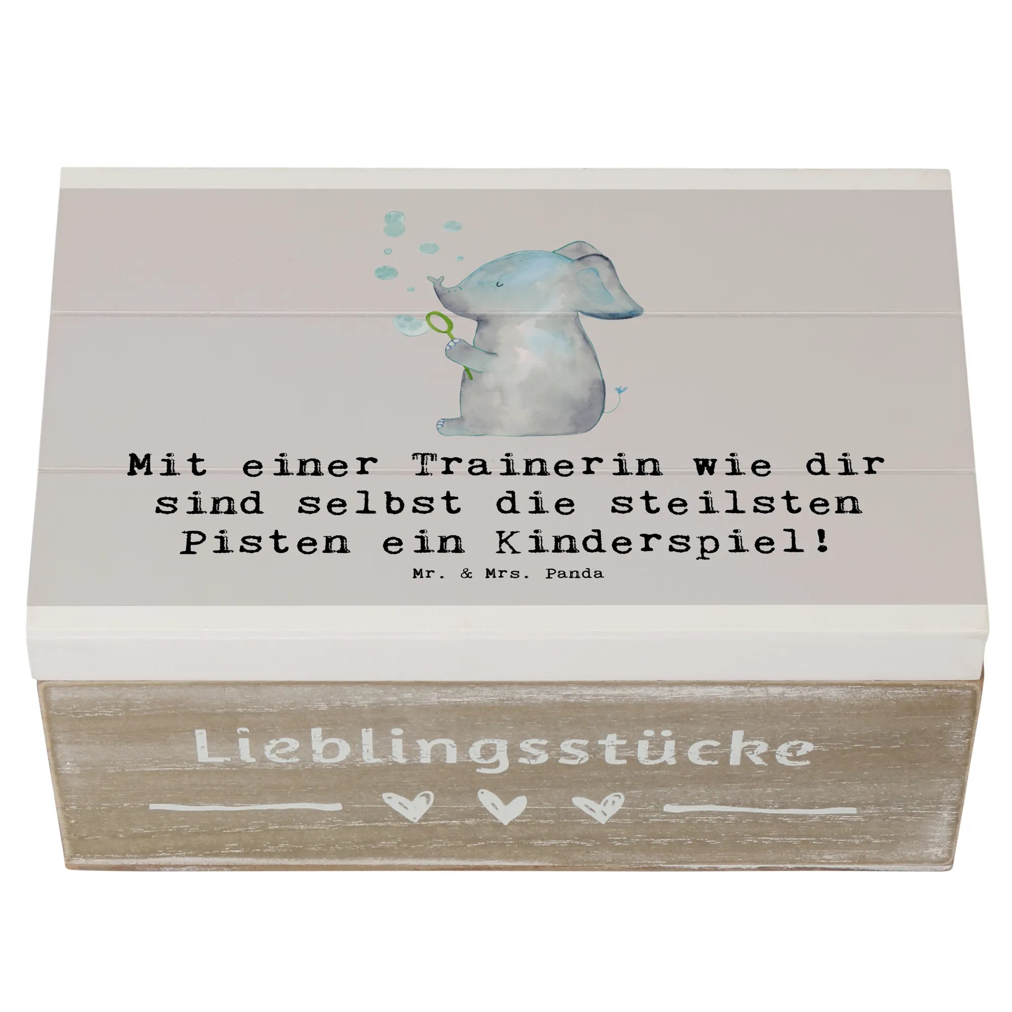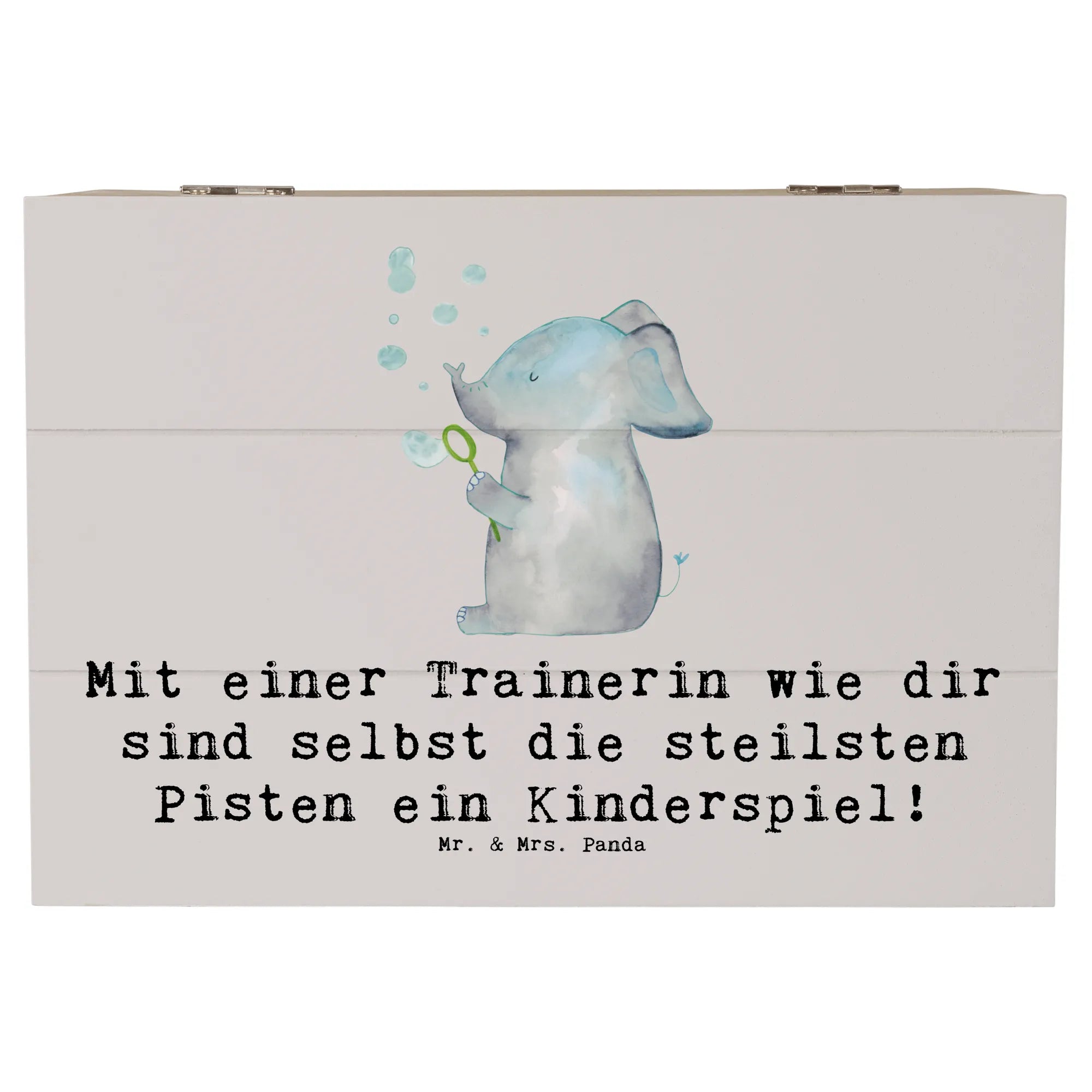 Die Holzkiste Skifahren Trainerin von Mr. & Mrs. Panda ist das perfekte Geschenk für deine Trainerin! Mit dem liebevollen Slogan "Mit einer Trainerin wie dir sind selbst die steilsten Pisten ein Kinderspiel!" zeigt diese Kiste nicht nur deine Anerkennung, sondern bietet gleichzeitig einen wunderbaren Platz für die Erinnerungen und Schätze deiner Trainerin.