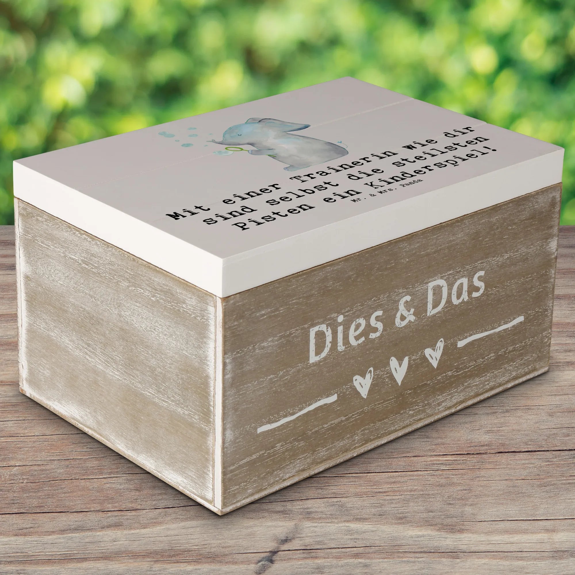 Suchst du eine liebevolle, praktische Idee, um deiner Trainerin Danke zu sagen? Unsere Holzkiste "Skifahren Trainerin" von Mr. & Mrs. Panda vereint zauberhaftes Design mit nützlicher Aufbewahrung. Bedruckt mit dem herzlichen Spruch "Mit einer Trainerin wie dir sind selbst die steilsten Pisten ein Kinderspiel!" ist diese Holzbox ein emotionales Erinnerungsgeschenk und eine stilvolle Aufbewahrungsbox Holz.