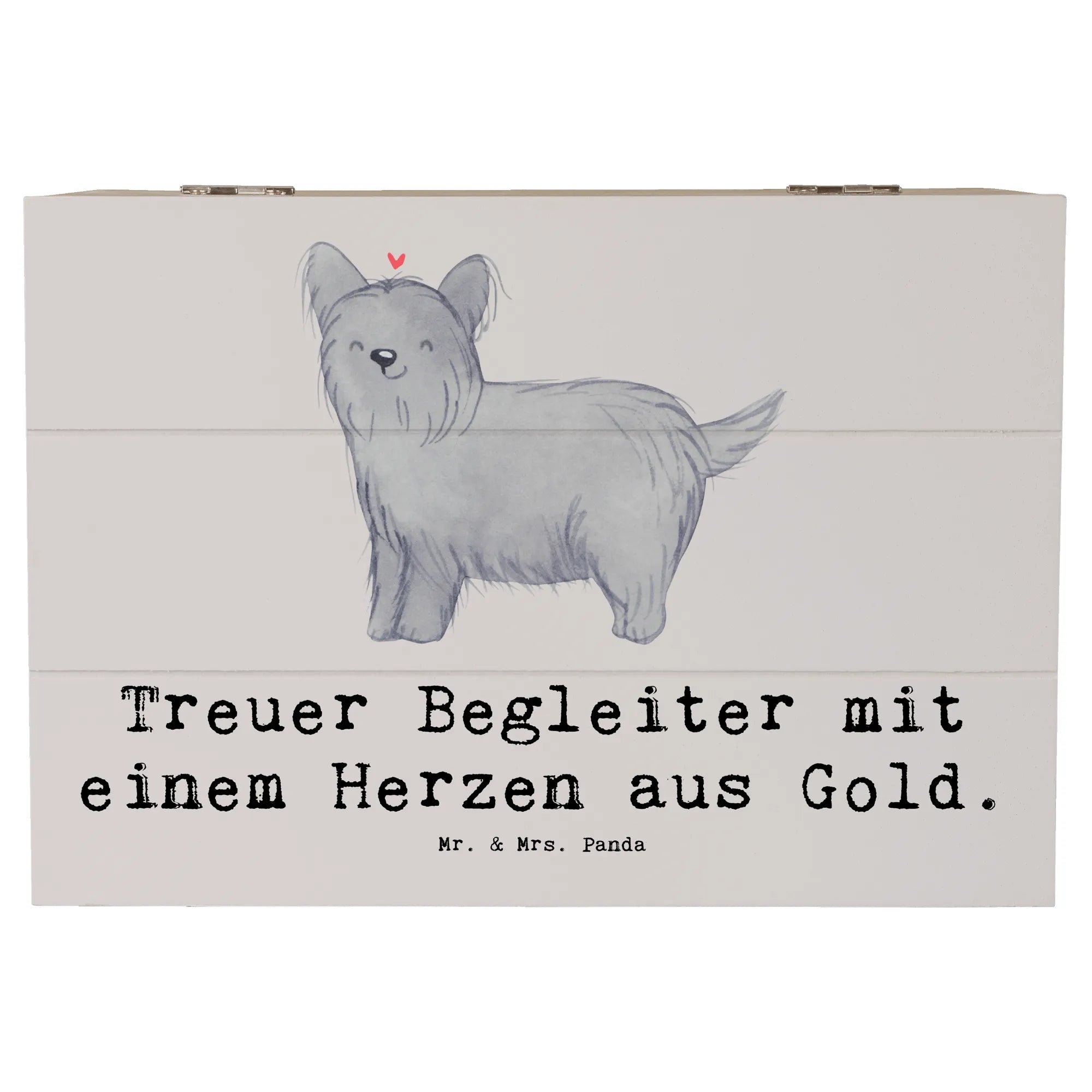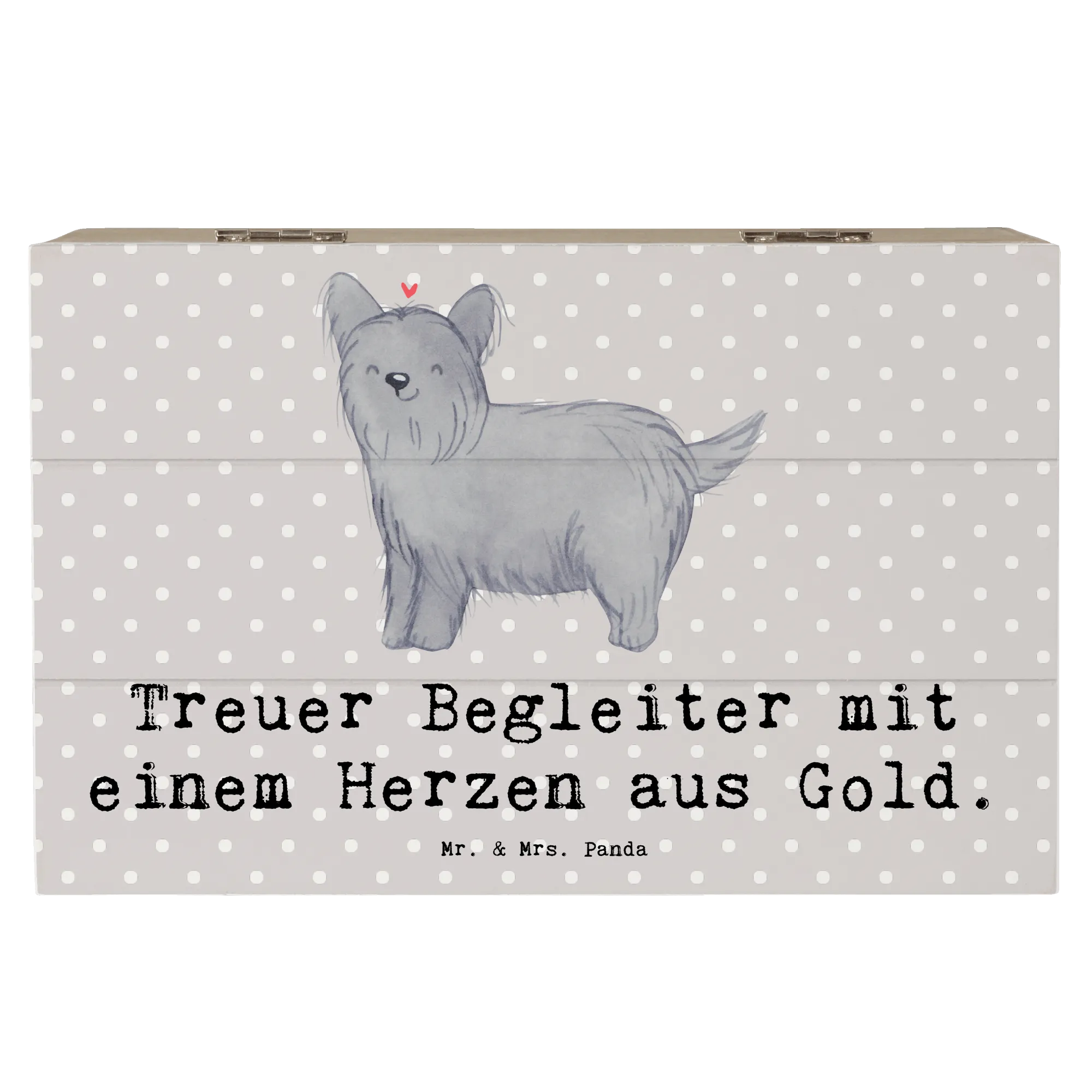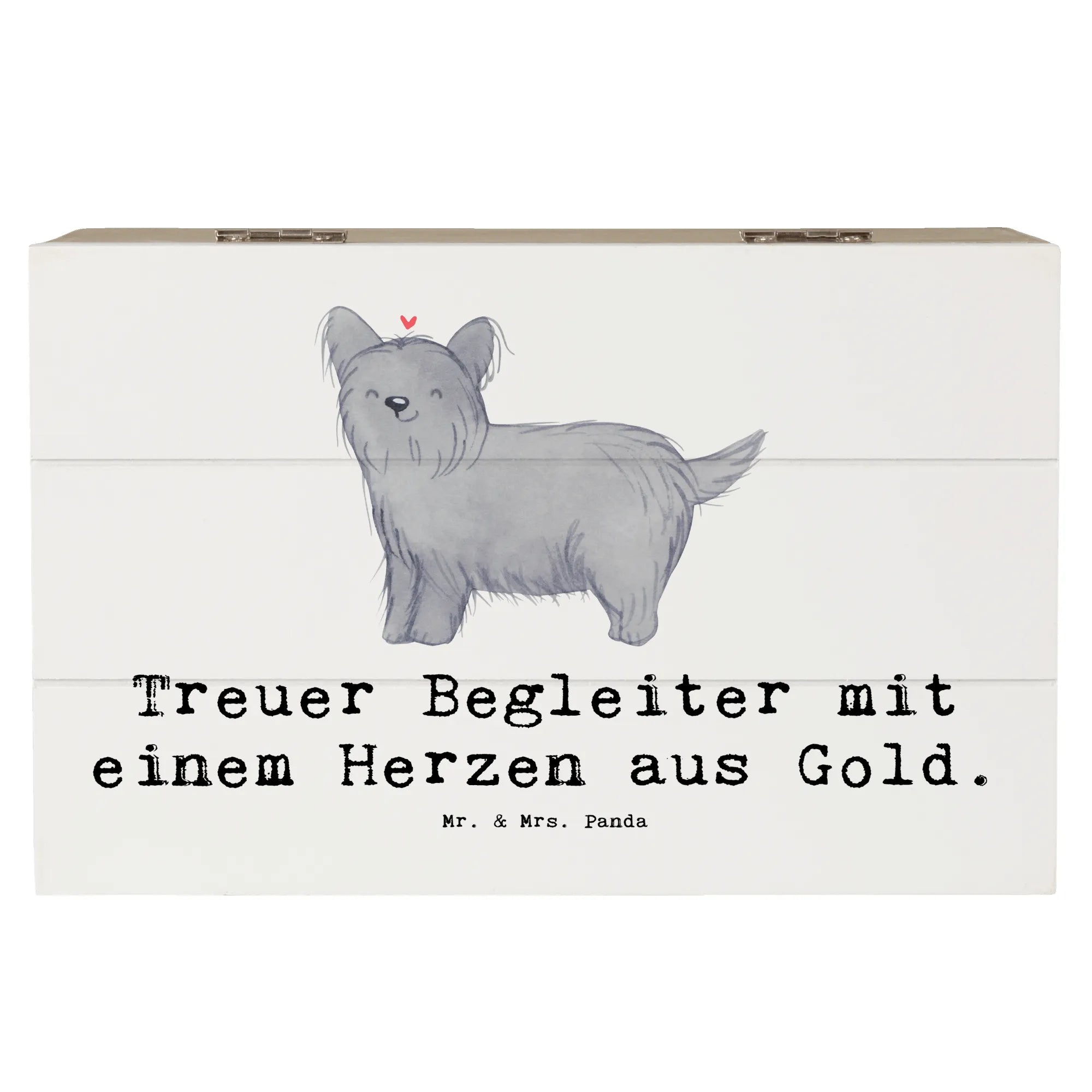 Die wunderschöne Holzkiste von Mr. & Mrs. Panda ist das perfekte Geschenk für jeden Hundefreund, der den Skye Terrier liebt! Mit ihrem einzigartigen Design und dem liebevollen Slogan 'Treuer Begleiter mit einem Herzen aus Gold' begeistert diese Kiste nicht nur durch ihre Optik, sondern ist auch unglaublich praktisch.