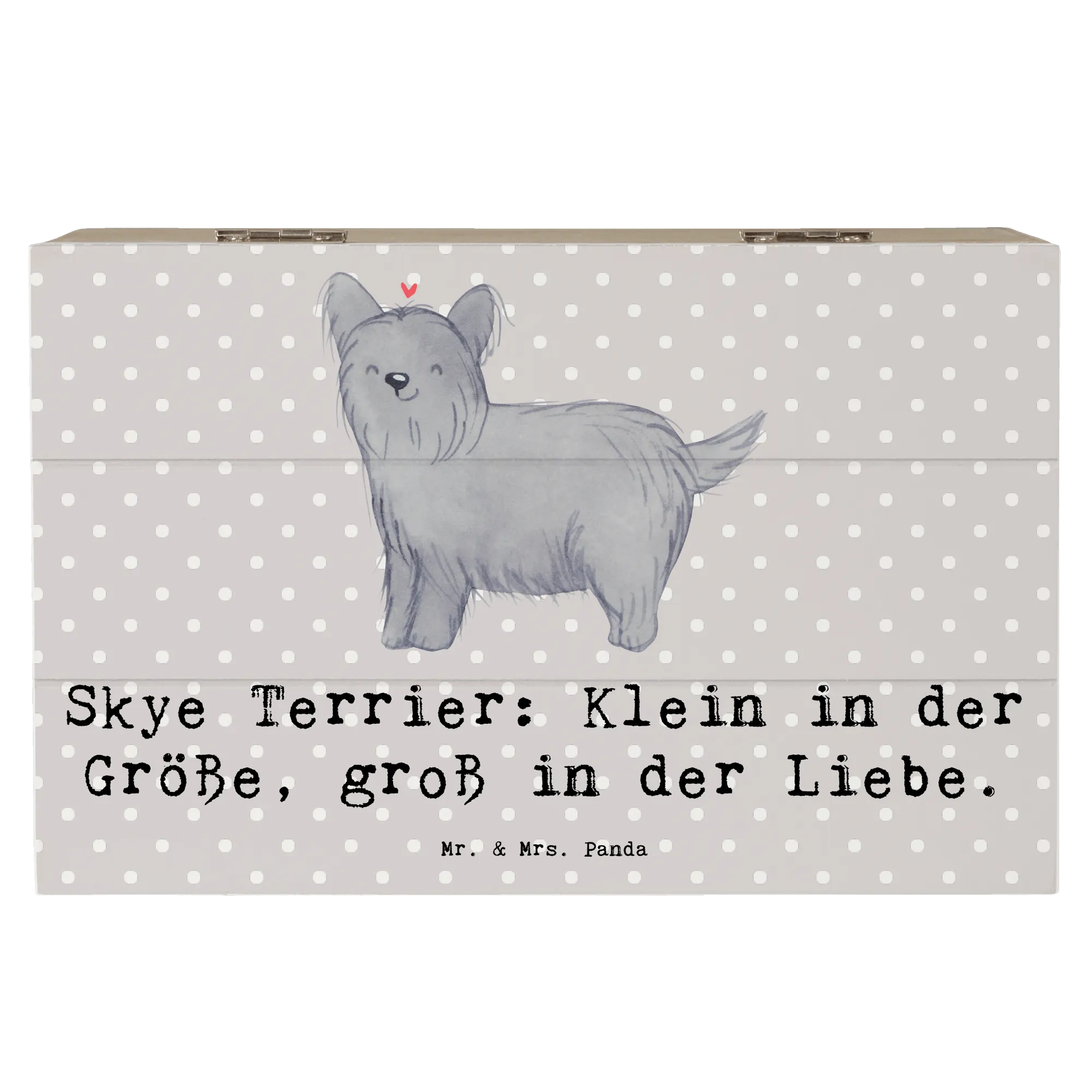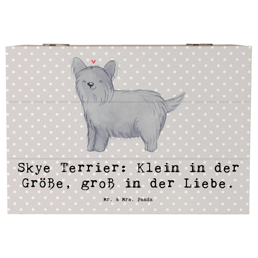 Die Hunderassen Kollektion von Mr. & Mrs. Panda bringt die unterschiedlichsten Hunderassen zum Leben und der Skye Terrier ist da keine Ausnahme. Der Spruch 'Skye Terrier: Klein in der Größe, groß in der Liebe.' zaubert Dir beim Anblick der Box garantiert ein Lächeln ins Gesicht.