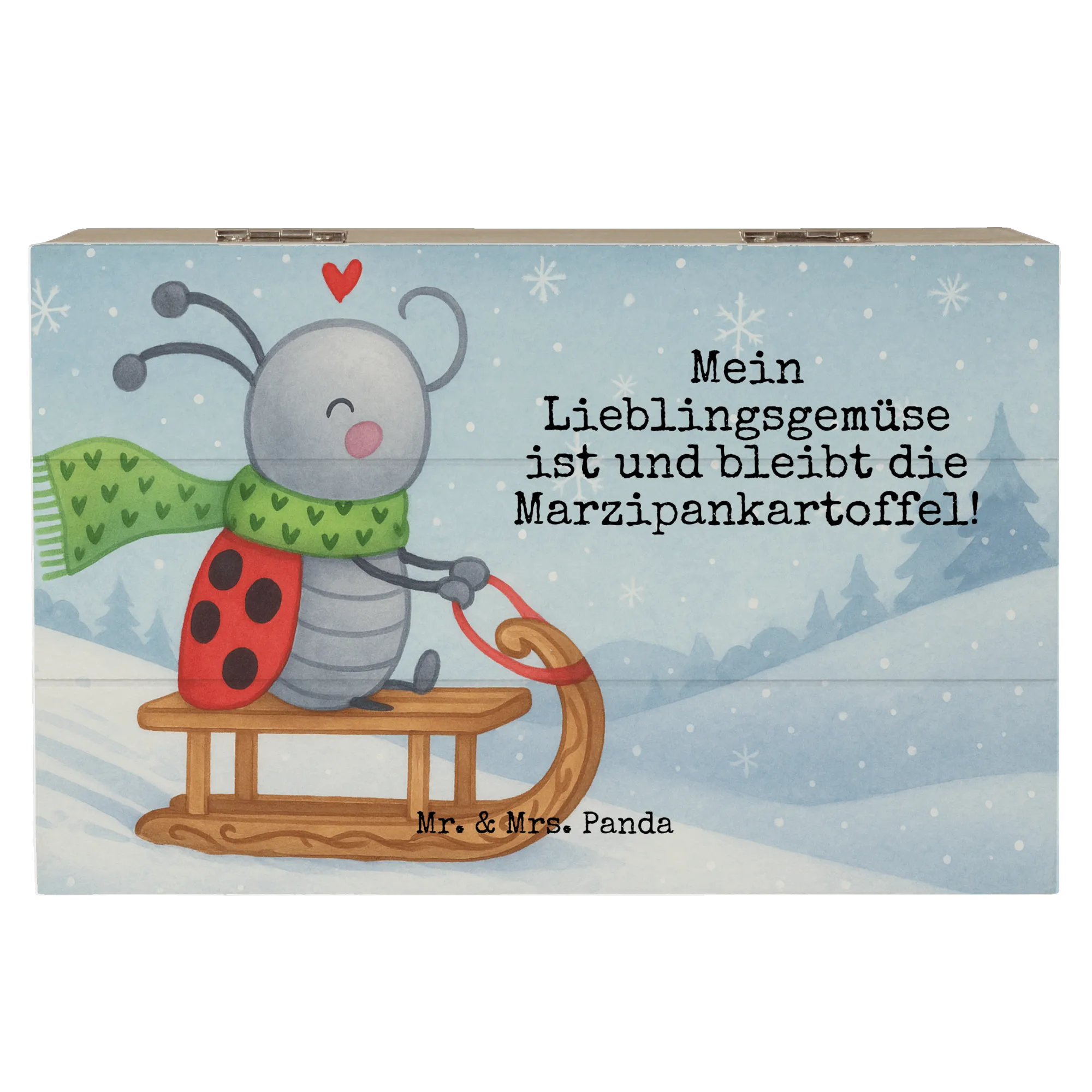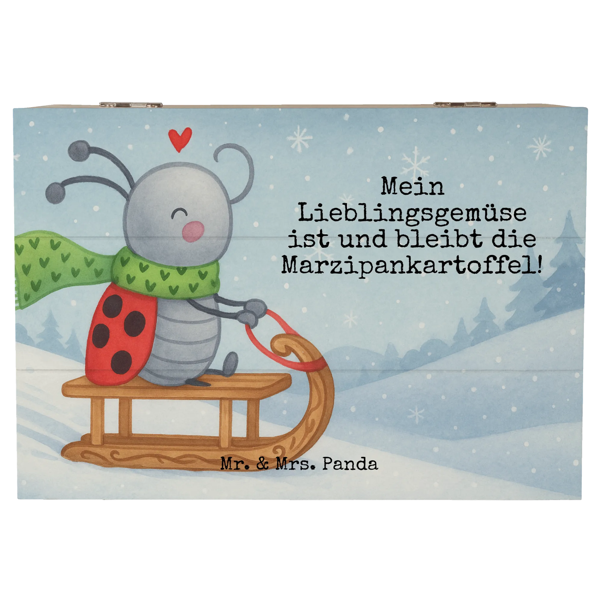 Im winterlichen Zauber von Smörle Rodeln freut sich unser süßer Marienkäfer auf aufregende Tage im Schnee. Auf seinem coolen Schlitten lässt es sich super rodeln und im frischen, weißen Glitzer vergnügen! Mit seinem grünen Schal und dem schwebenden Herz zeigt Smörle, wie viel Freude der Winter bereithält. Der Spruch "Mein Lieblingsgemüse ist und bleibt die Marzipankartoffel!" lässt uns schmunzeln und erinnert uns daran, dass wir auch in der kalten Jahreszeit eine liebevolle Haltung beibehalten sollten.