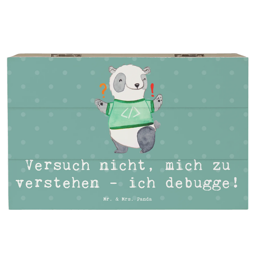 Die Holzkiste für Softwareentwickler von Mr. & Mrs. Panda ist das ideale Geschenk für alle, die die digitale Welt gestalten. Mit einem liebevoll handgezeichneten Design und dem witzigen Spruch "Versuch nicht, mich zu verstehen - ich debugge!" ist diese Kiste nicht nur praktisch, sondern auch ein echter Hingucker. Sie eignet sich perfekt als Aufbewahrungsort für wichtige Erinnerungen, sei es für persönliche Schätze, Fotos oder Andenken an vergangene Zeiten.